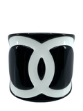 We the ity of this highly sought-after Chanel Resin CC Logo Cuff Bracelet. Featuring gorgeous black resin with an oversized signature white 'CC' logo.