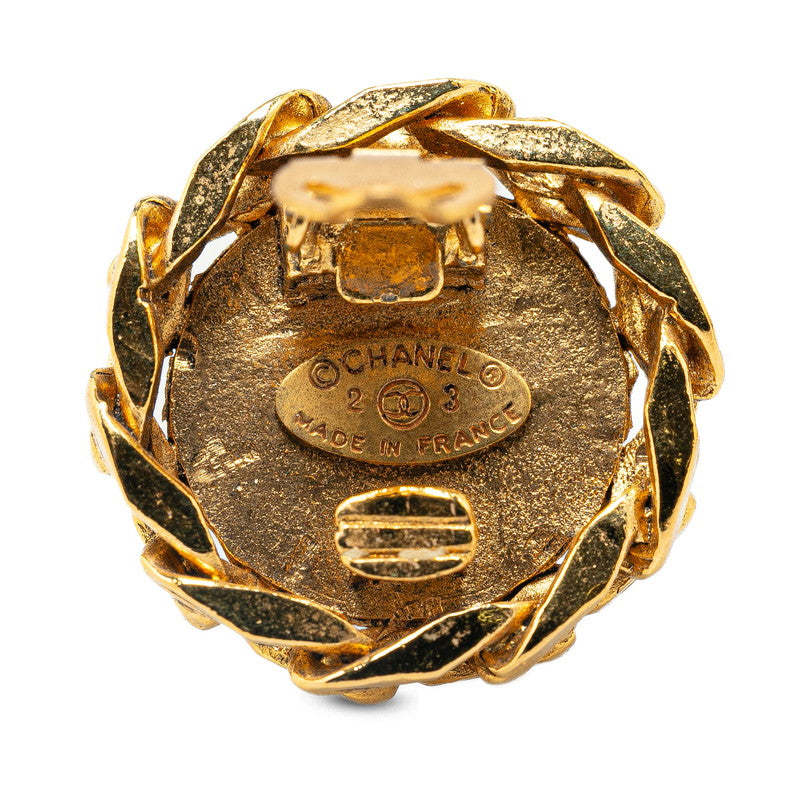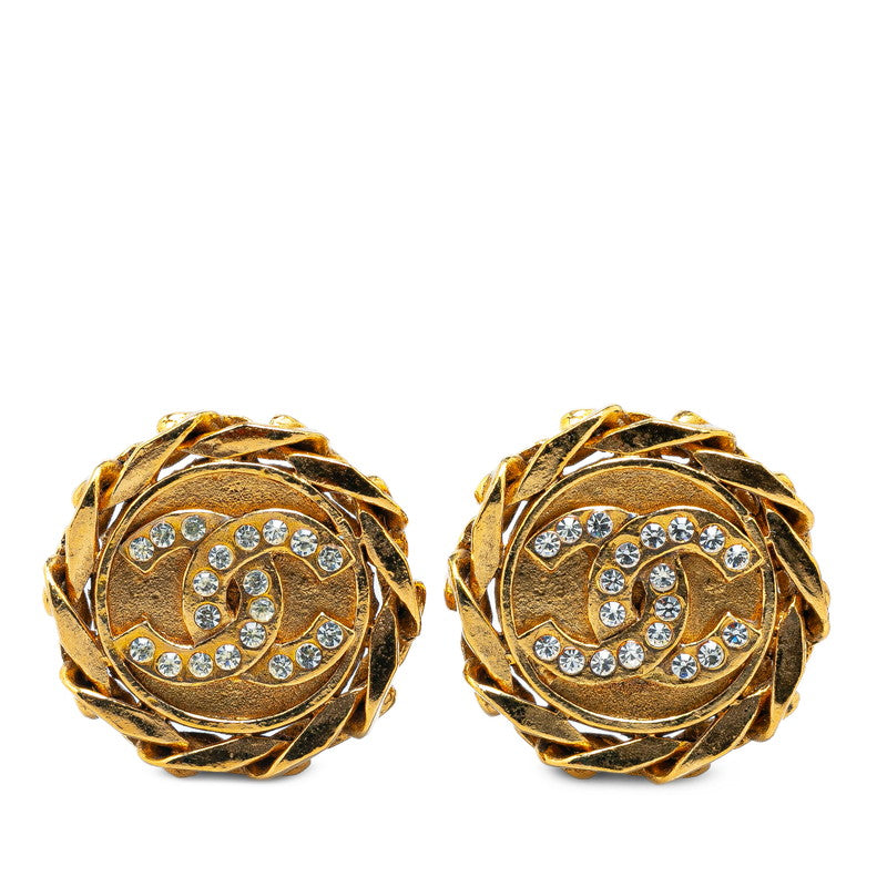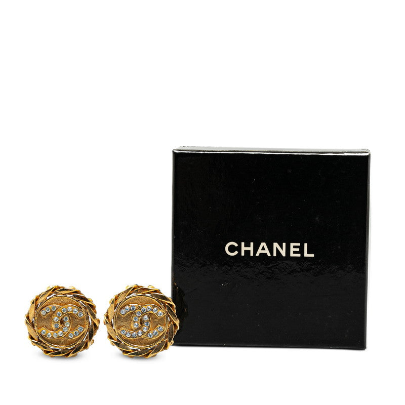 Chanel Rhinestone CC Clip On Earrings Metal Earrings in Good condition