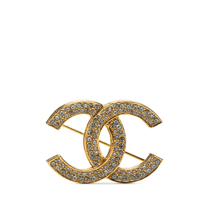 Chanel Rhinestone CC Logo Brooch Metal Brooch in Good condition