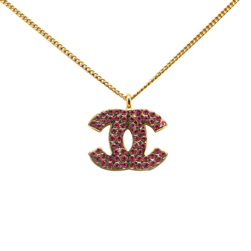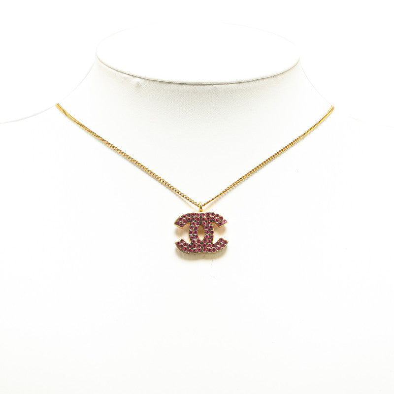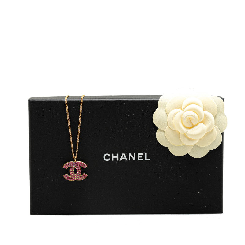 Chanel Rhinestone CC Logo Pendant Necklace Metal Necklace in Good condition