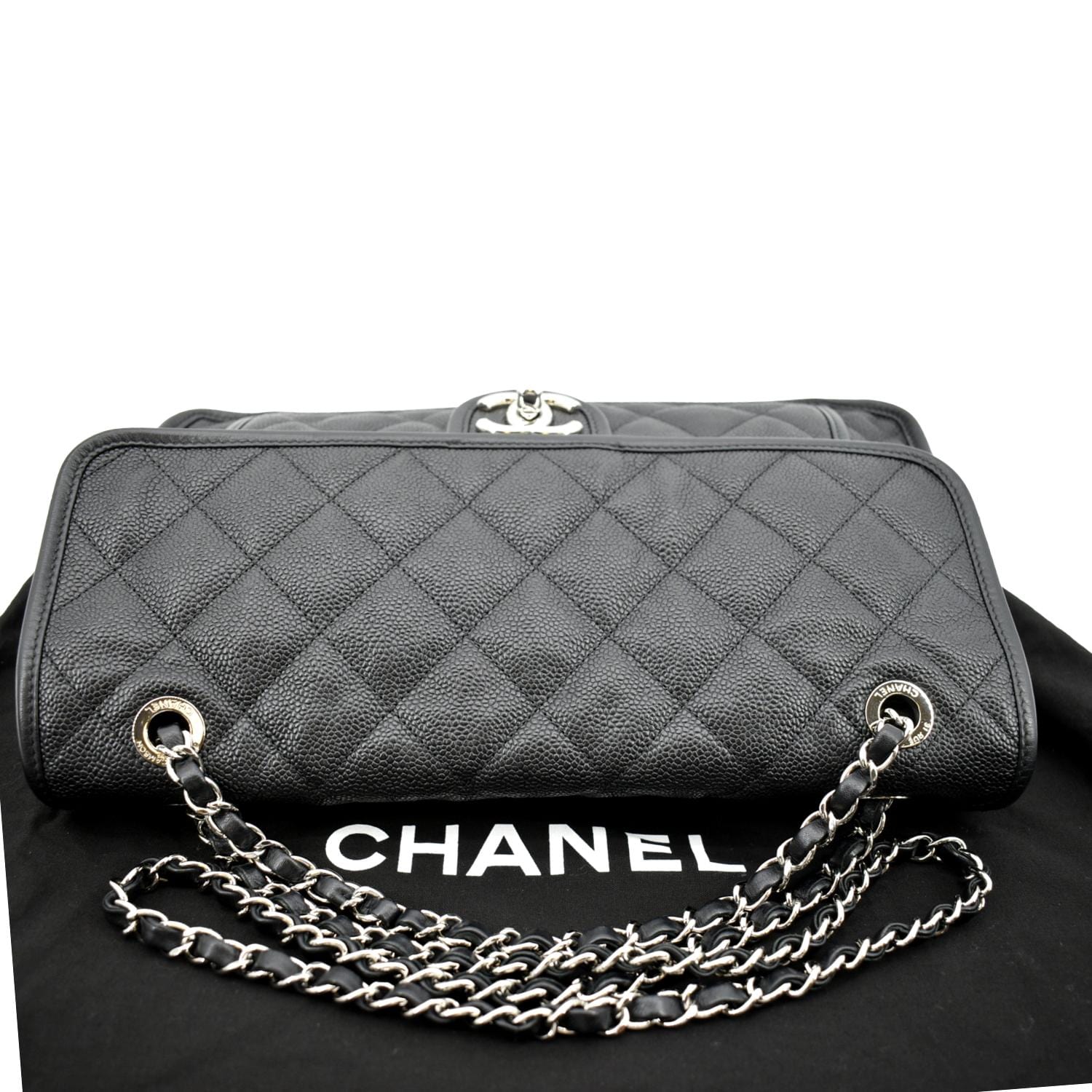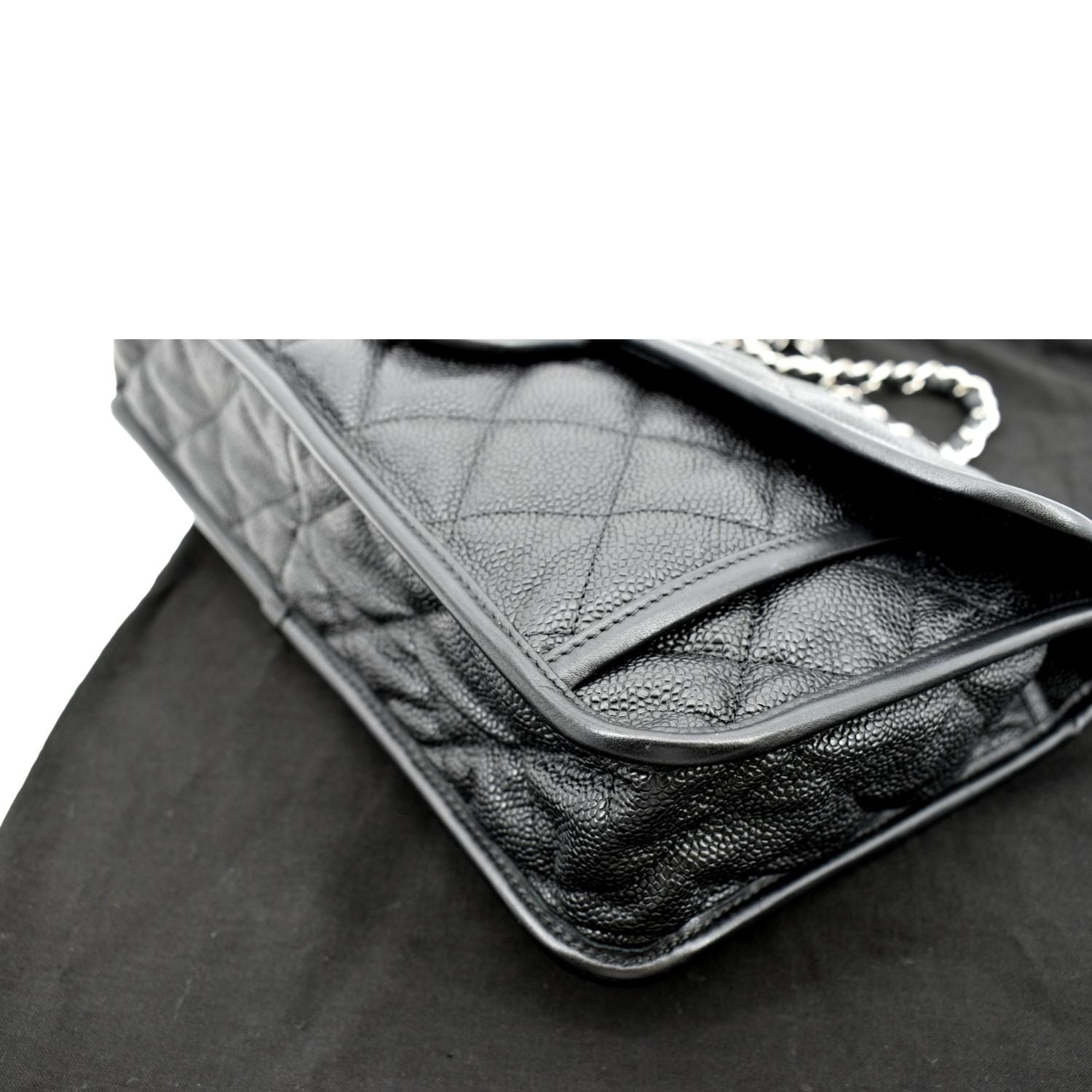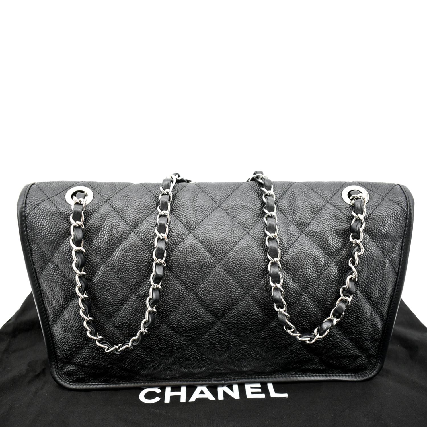 CHANEL Riviera Flap Large Quilted Caviar Leather Shoulder Bag Black