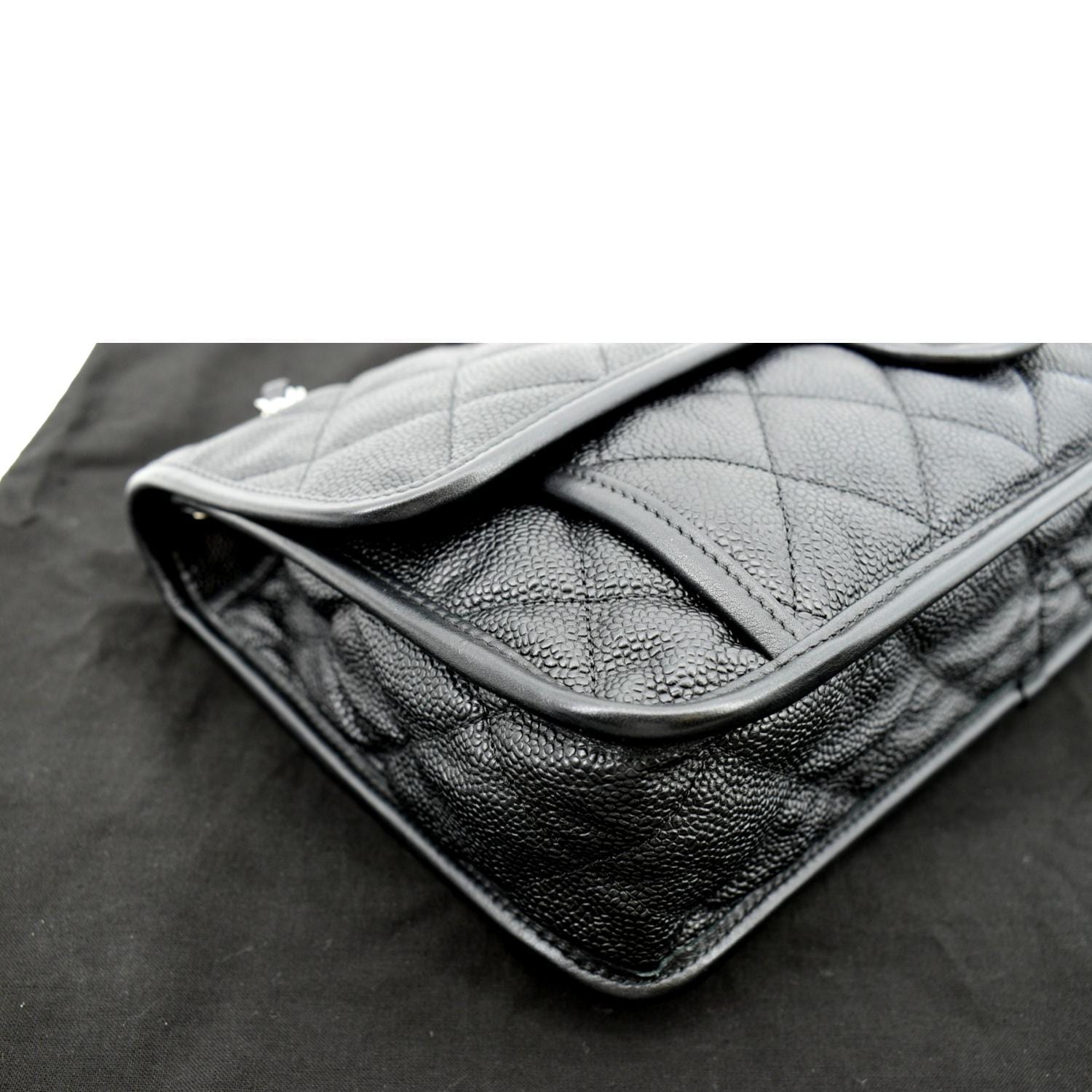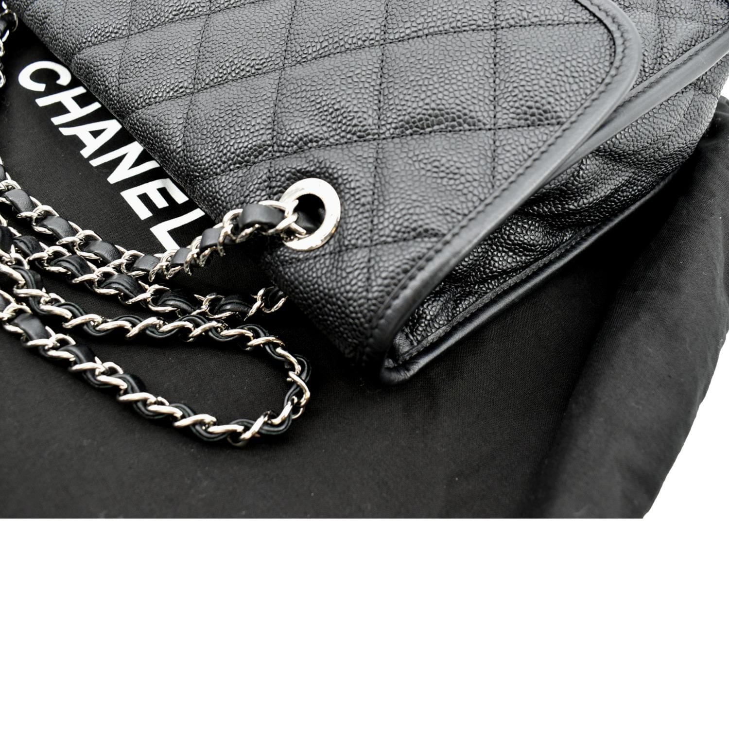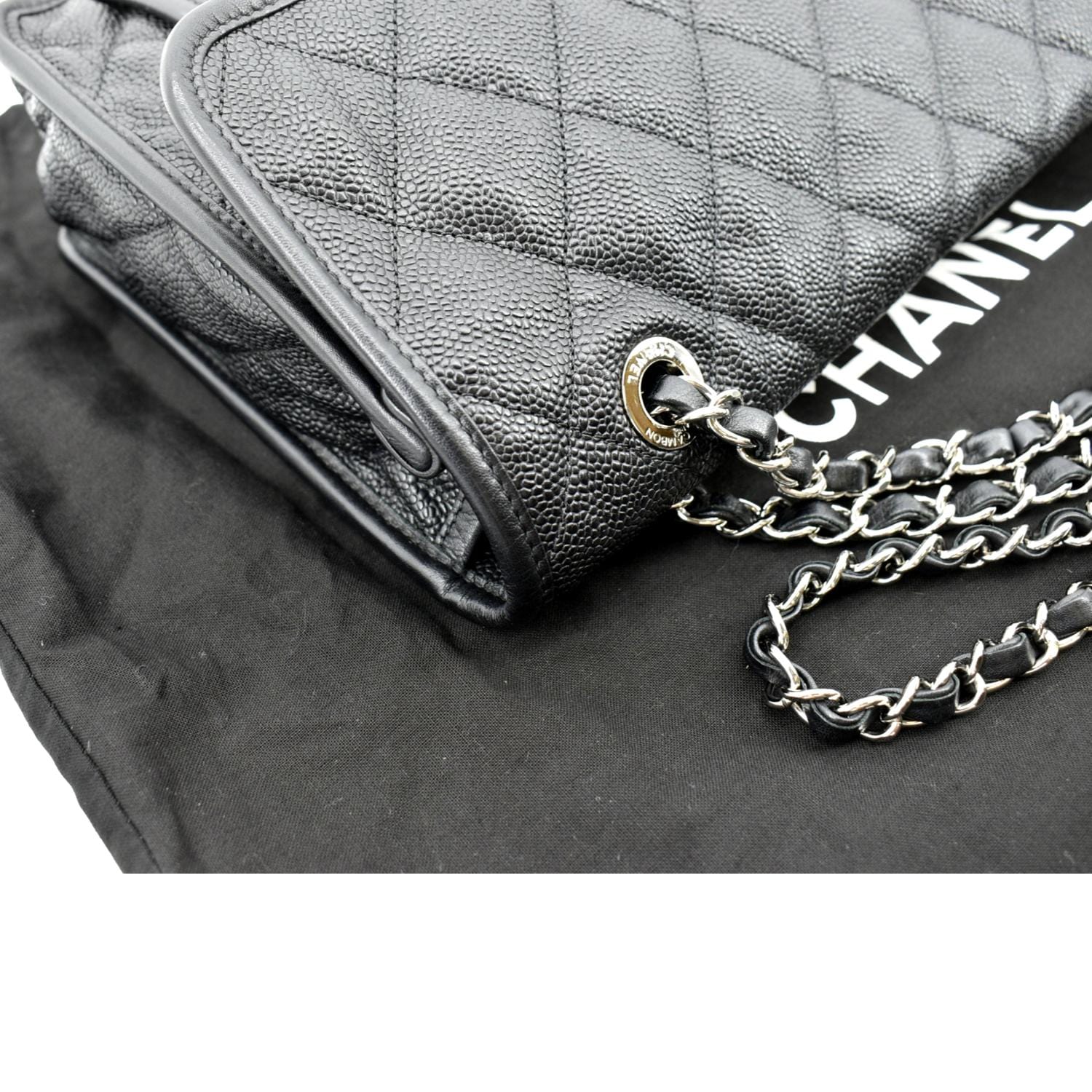 CHANEL Riviera Flap Large Quilted Caviar Leather Shoulder Bag Black