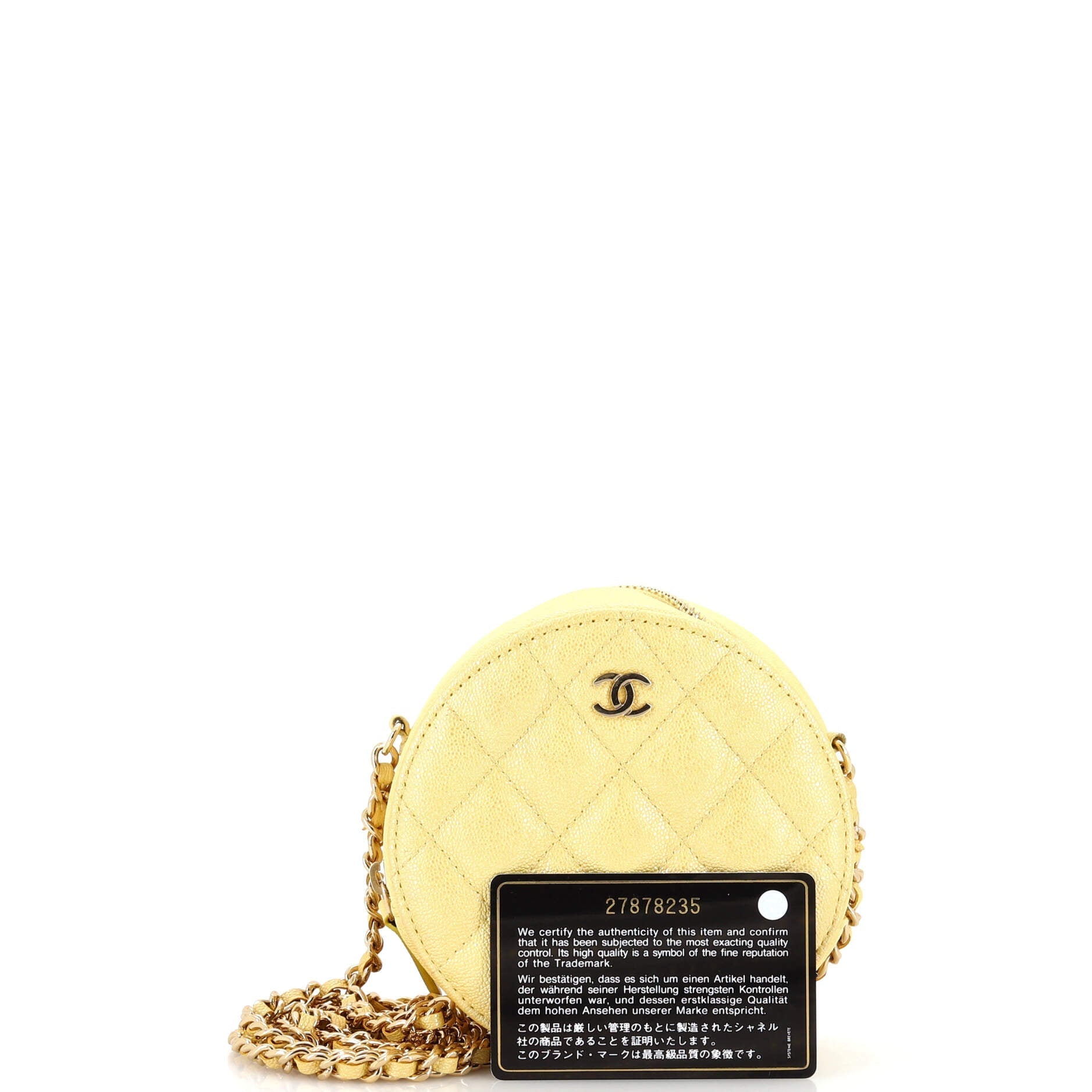 Whether you're attending a special event or simply running errands, the Chanel Round Clutch With Chain is the perfect accessory to elevate your look. With its luxurious craftsmanship and iconic design, this mini bag is a statement piece that will never go out of style. Add a touch of Chanel sophistication to your ensemble with this stunning quilted clutch.