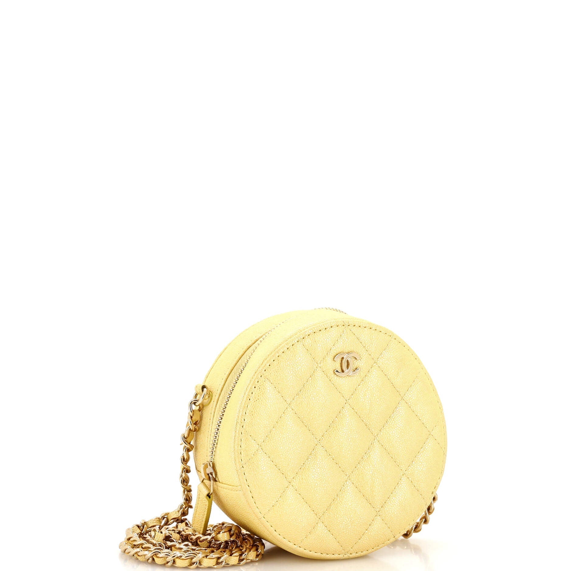 Introducing the Chanel Round Clutch With Chain Quilted Iridescent Caviar Mini - a chic and versatile accessory that exudes elegance. Crafted from high-quality iridescent caviar leather, this clutch features the iconic quilted design synonymous with Chanel. The compact size makes it perfect for carrying essentials while adding a touch of sophistication to any outfit.