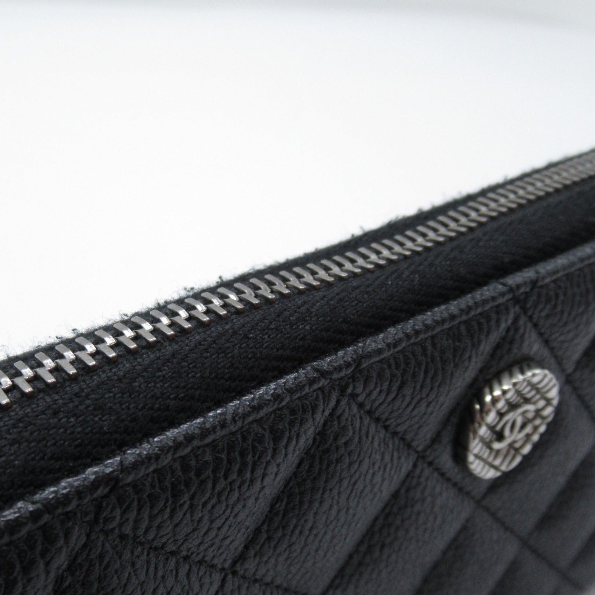 CHANEL Round long wallet Black Caviar Skin (Grained Calf)