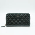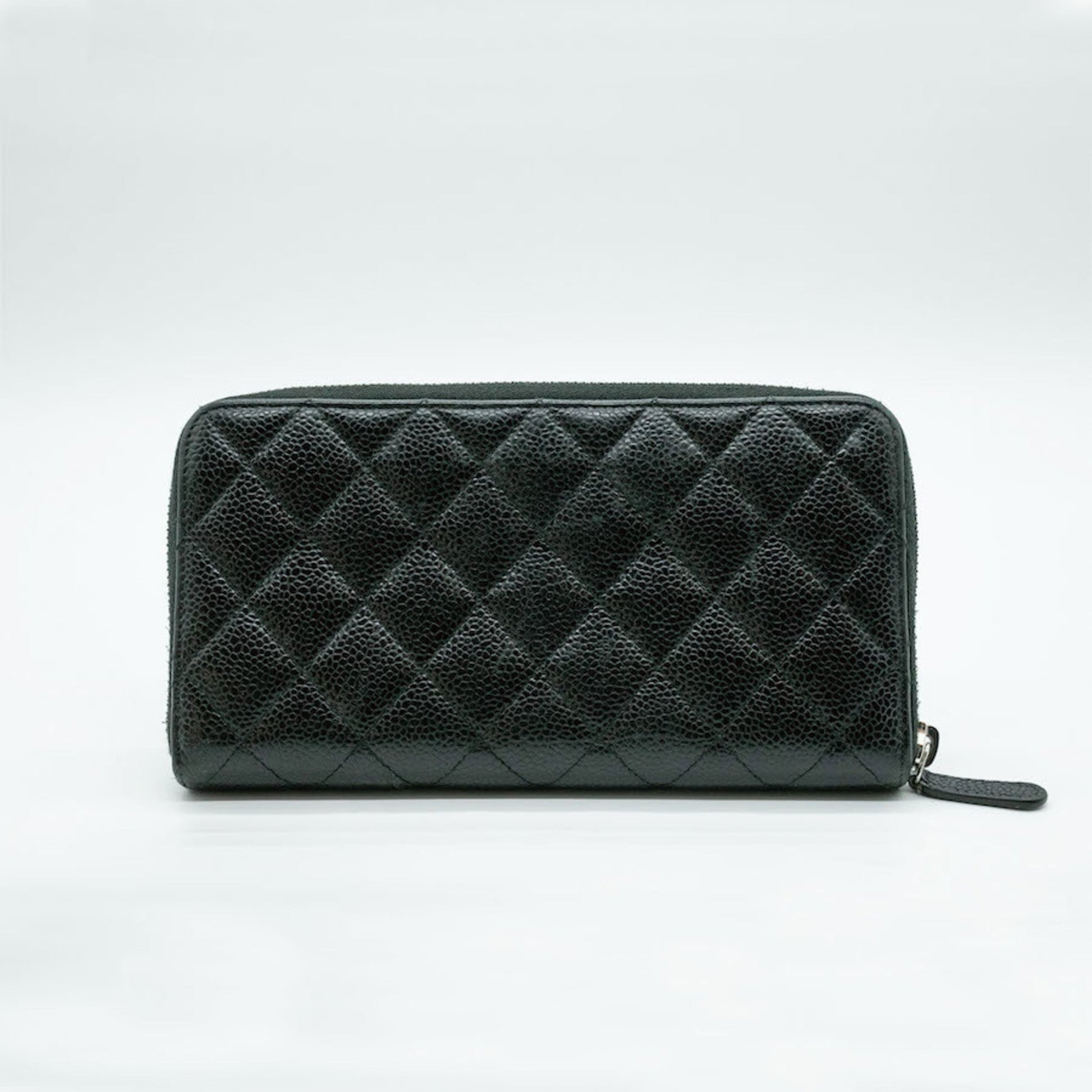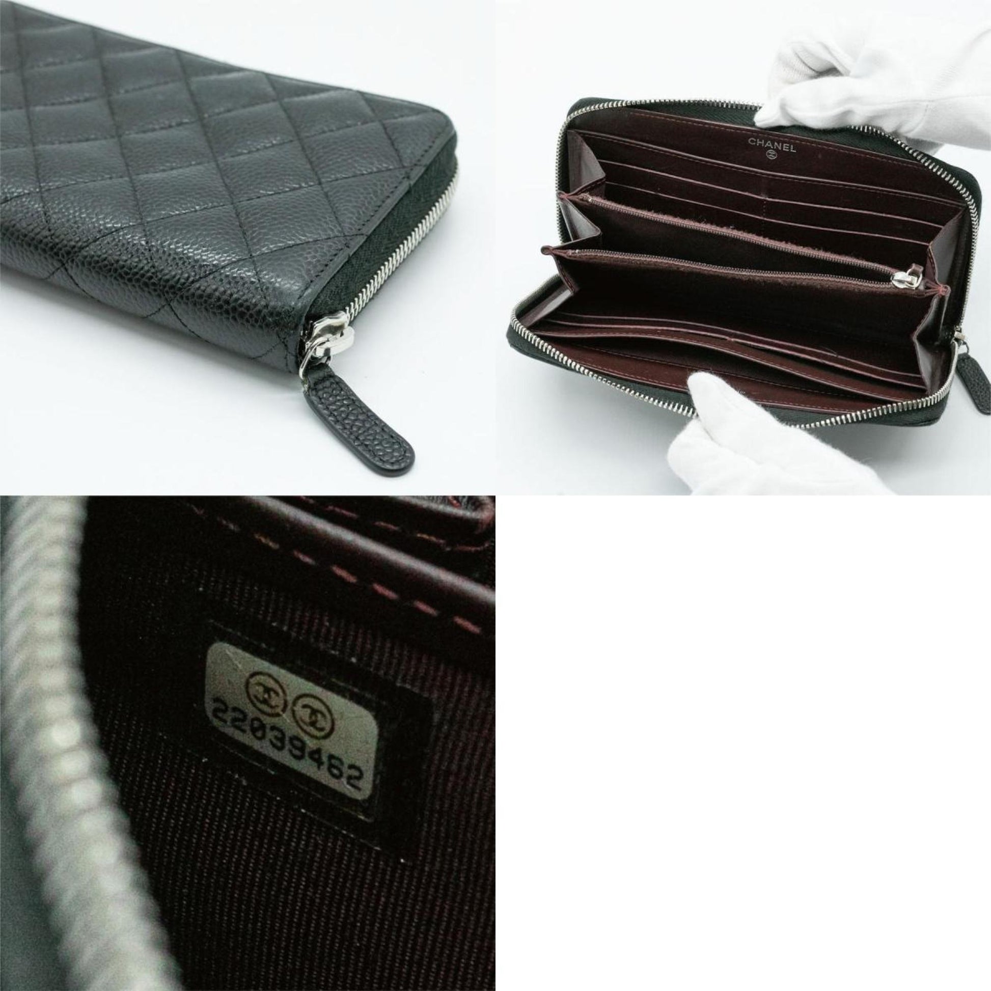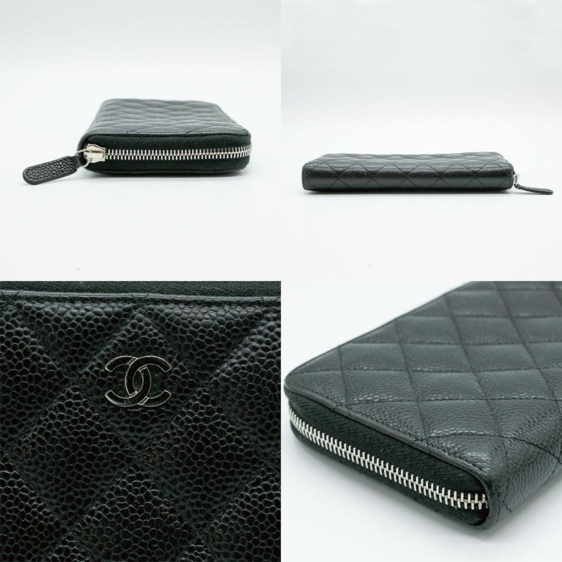 CHANEL Round Long Wallet Matelasse Coco Mark Caviar Skin Leather Black Silver Women's AP1411 PD64
