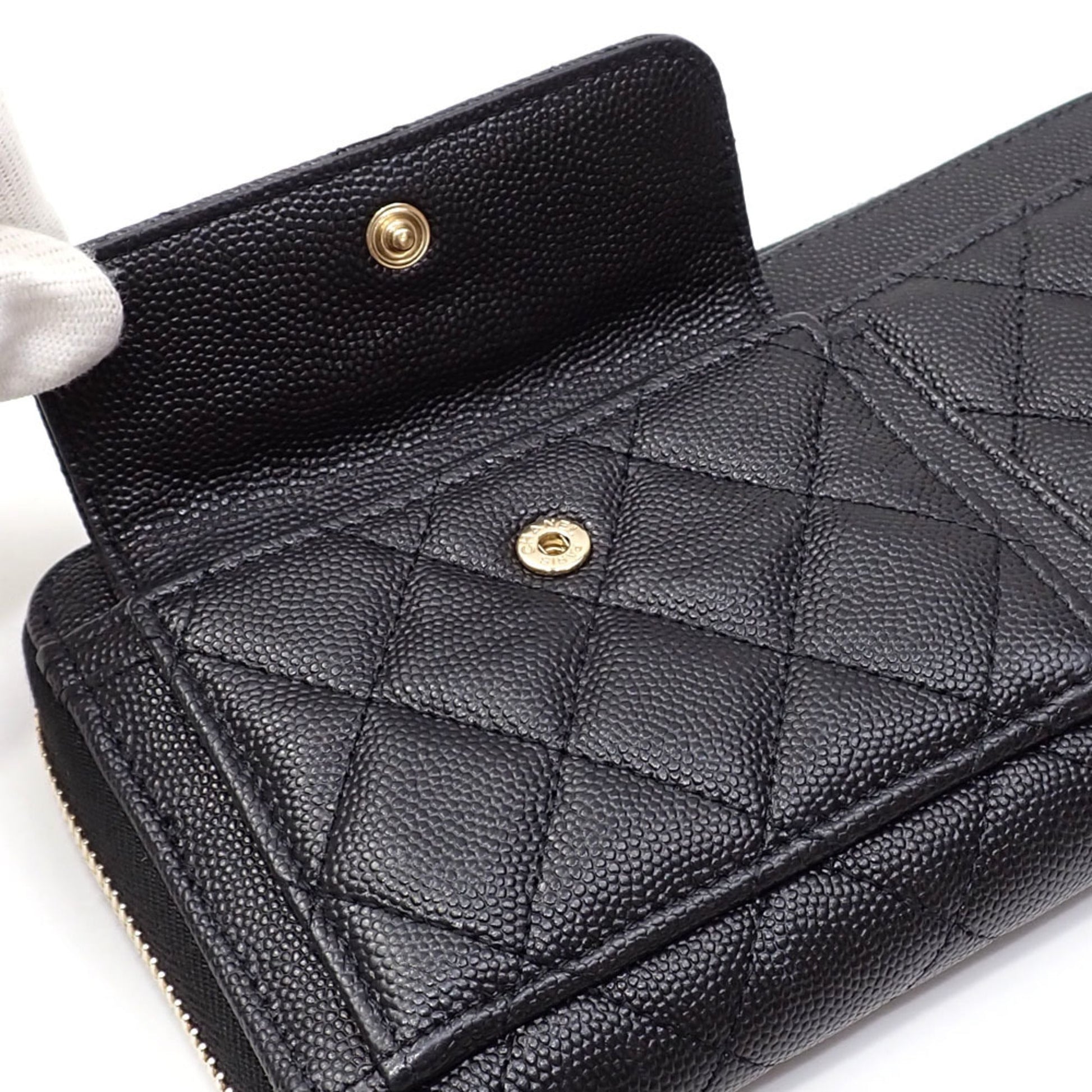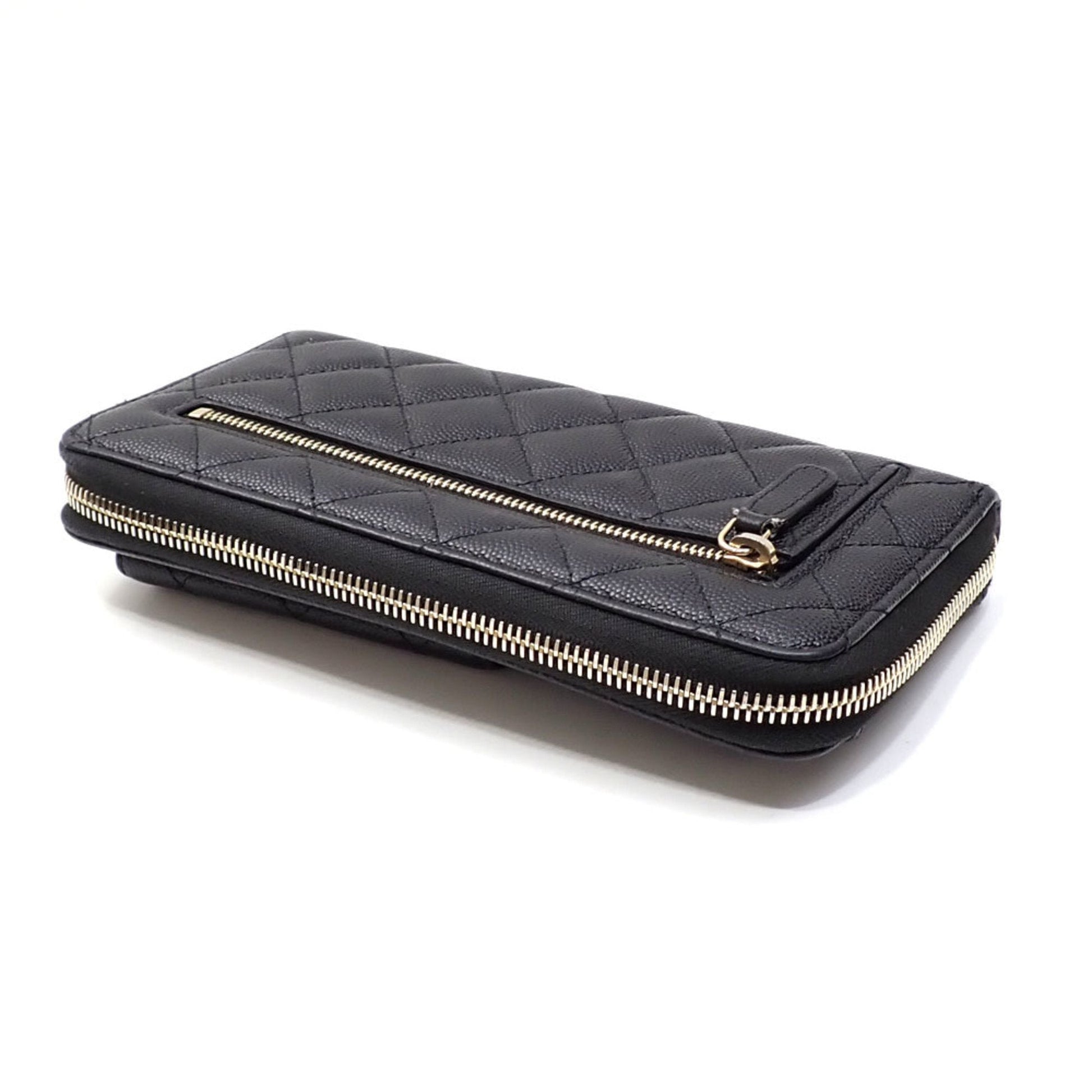 Chanel Round Long Wallet Matelasse Women's Black Caviar Skin AP1139 Coco Mark 2020 Cruise Collection