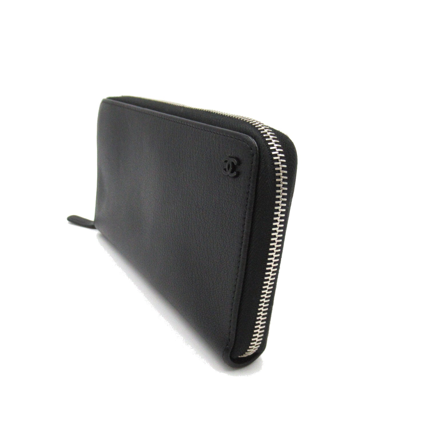 Chanel Round Long Wallet Round Long Wallet Leather Women's Black Round Long Wallet