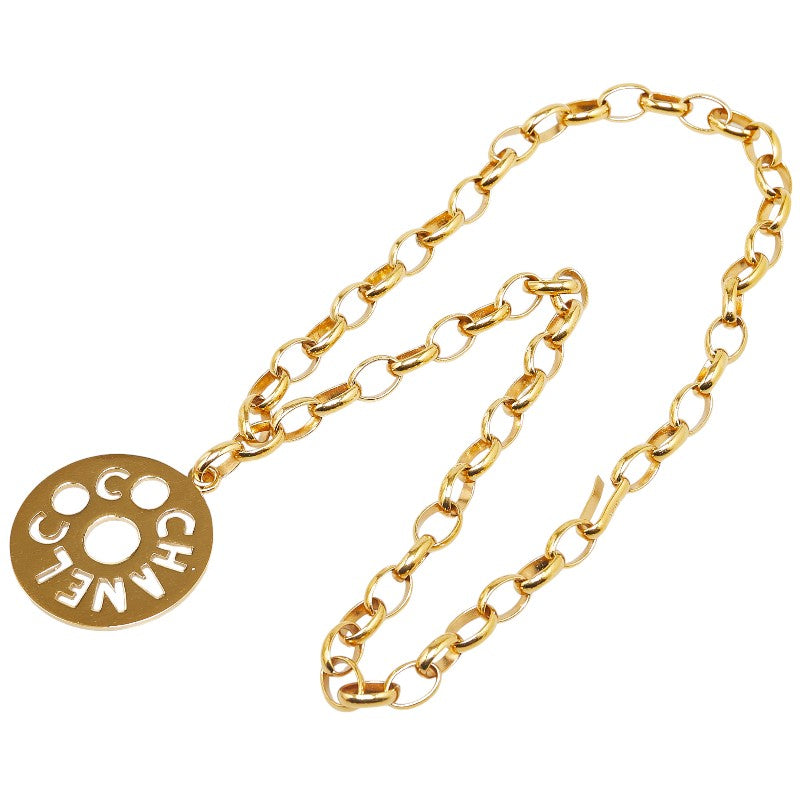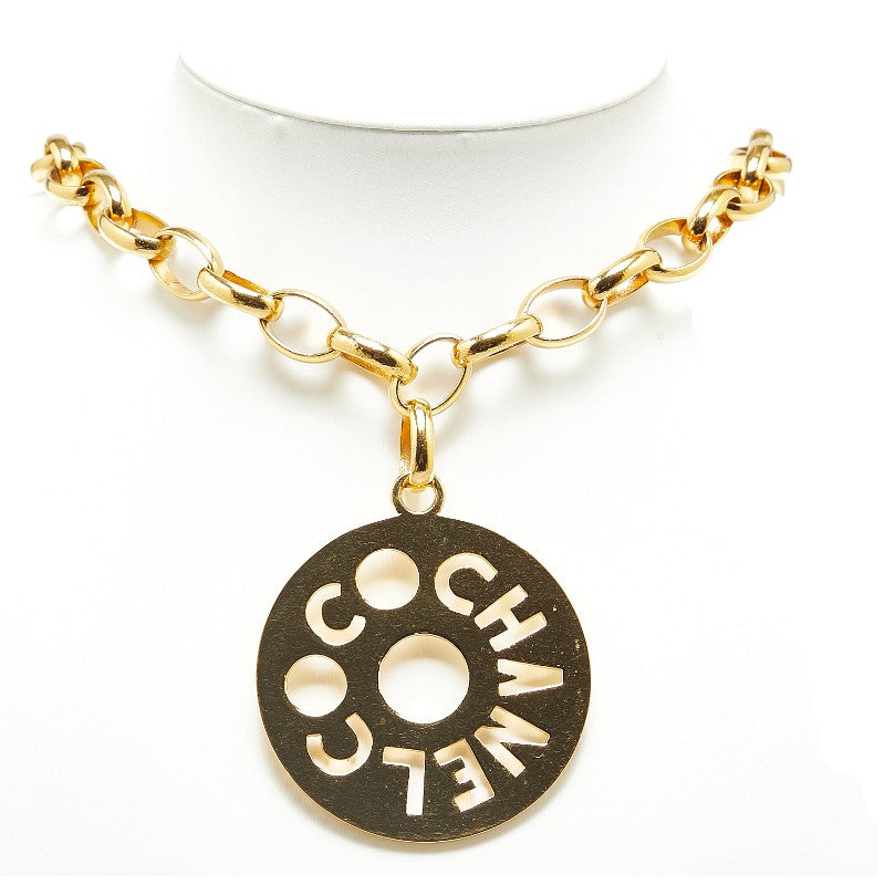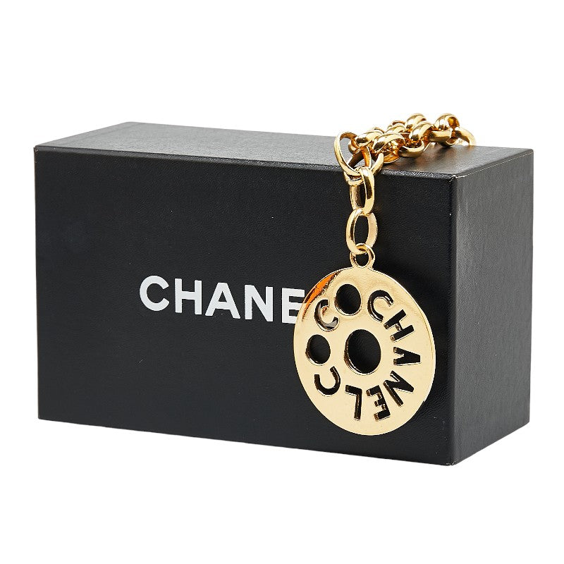Chanel Round Plate Logo Chain Necklace Metal Necklace in Excellent condition
