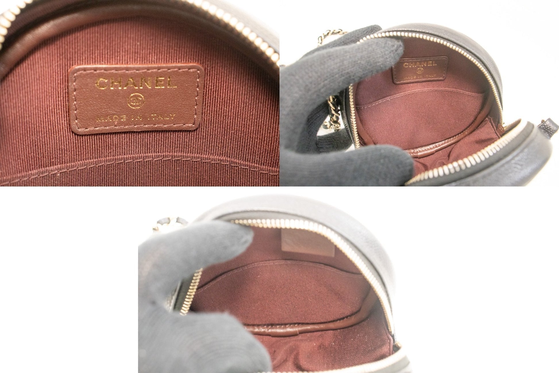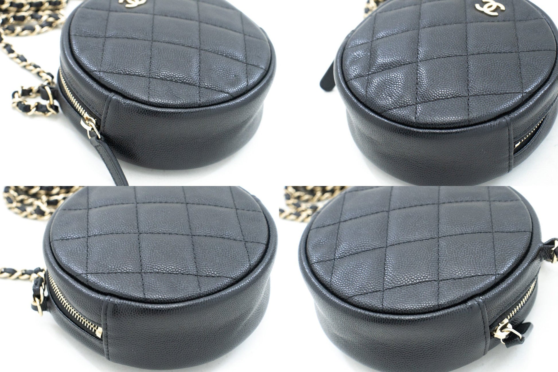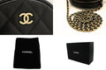 CHANEL Round Zip Caviar Small Chain Shoulder Bag Black Quilted