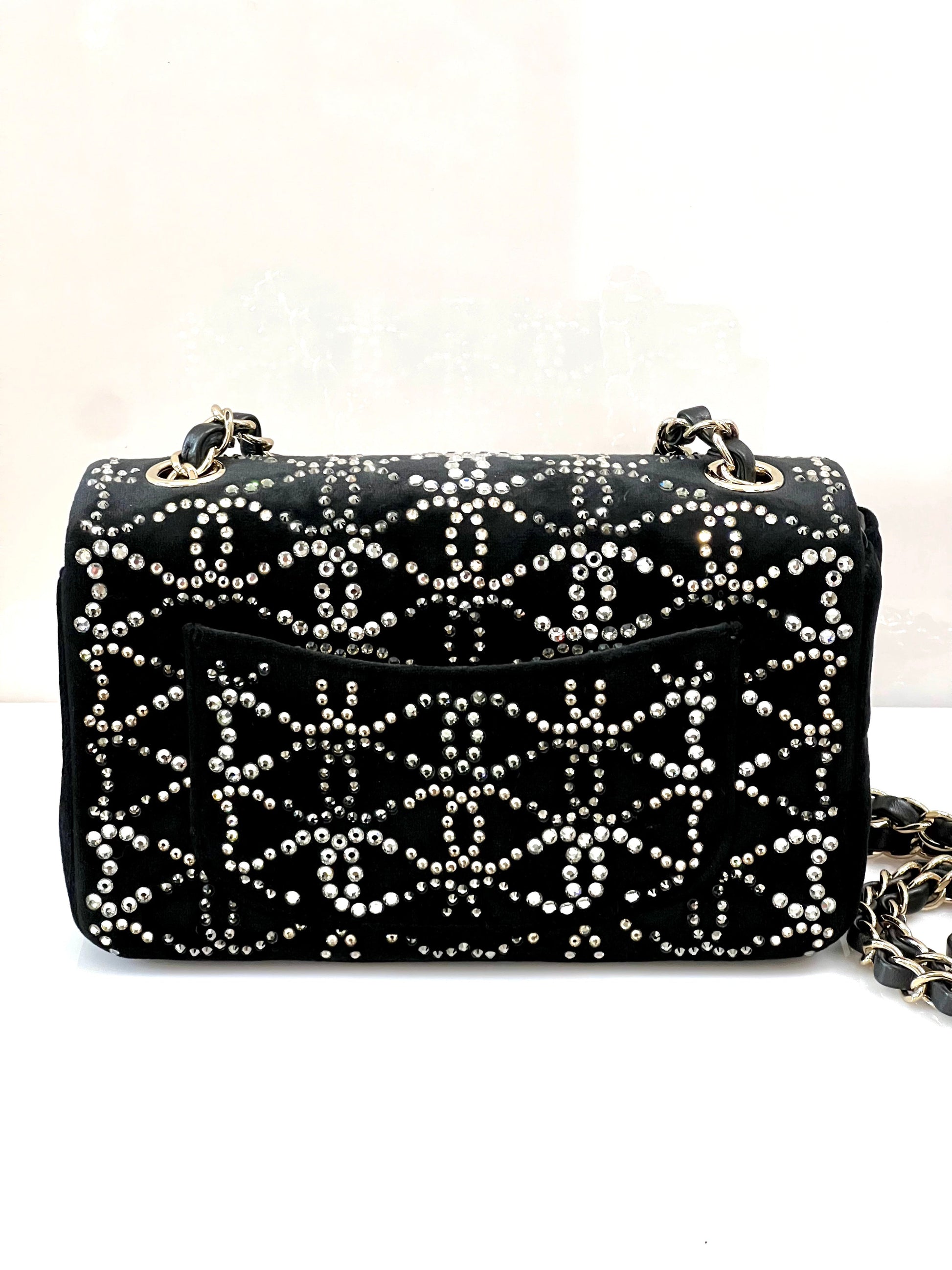 CHANEL RUTHENIUM STRASS CRYSTAL EMBELLISHED MINI CLASSIC FLAP BAG