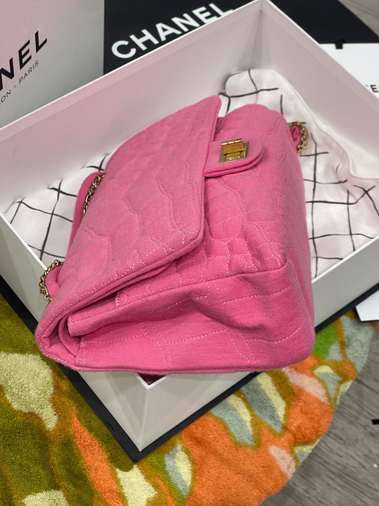 Rajoutez du peps dans votre dressing avec cette iconique 2.55 en jersey façon croco rose fuchsia.