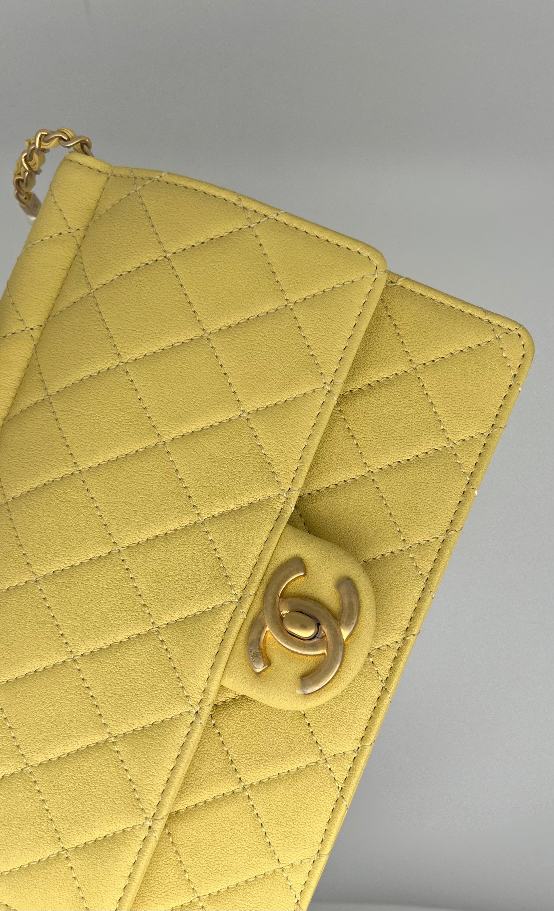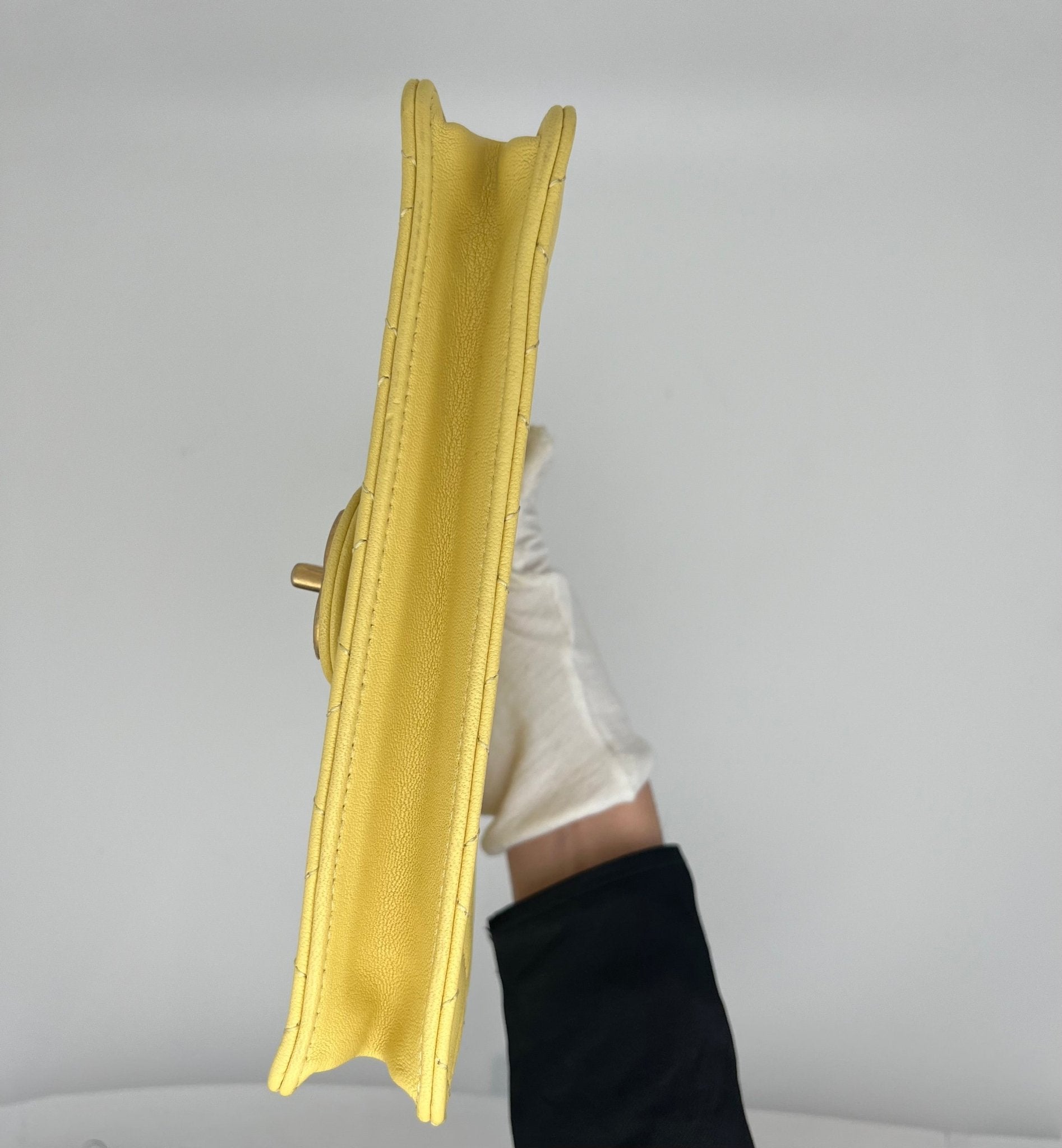 - Couleur : Jaune citron, perles blanches, finition dorée