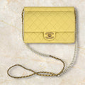 - Bandoulière : Chaîne enlacée de cuir jaune / détails de perles