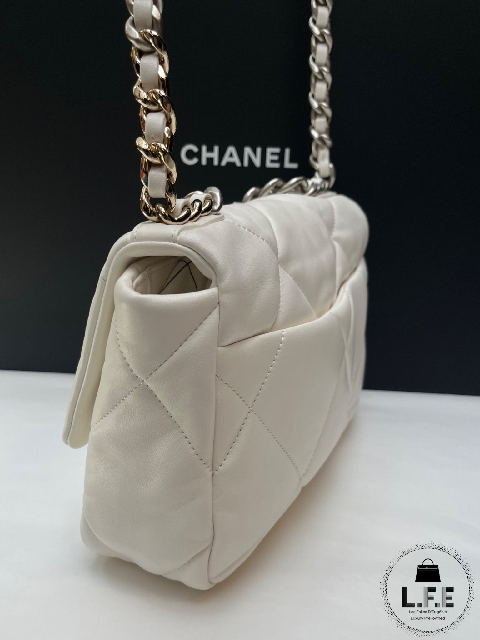 Le sac Chanel 19 en cuir d’agneau brillant, un sac moderne et classique à la fois.