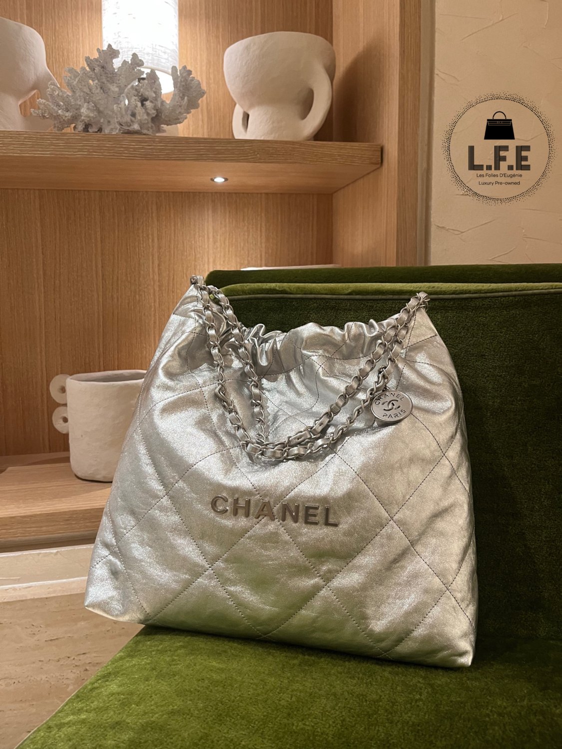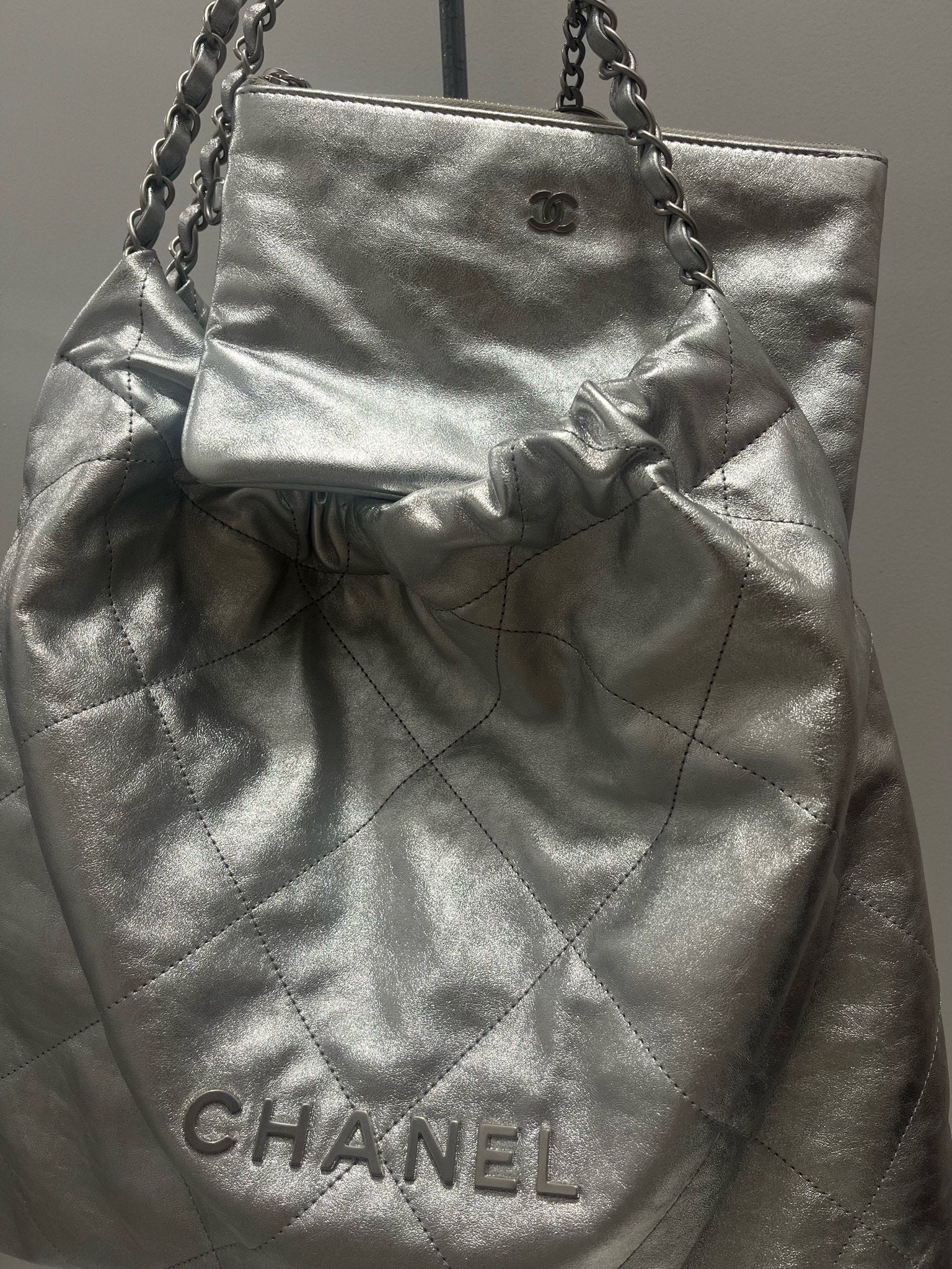 Le it-bag Chanel 22 petit modèle et sa pochette intérieur.