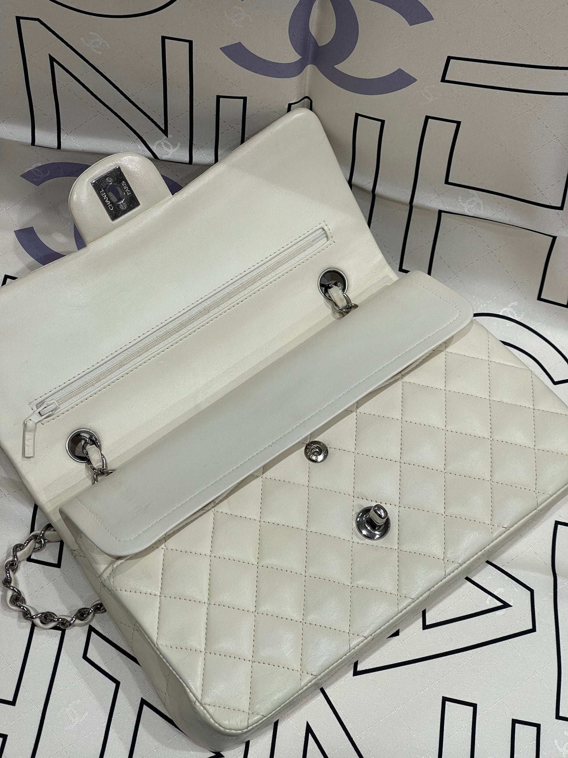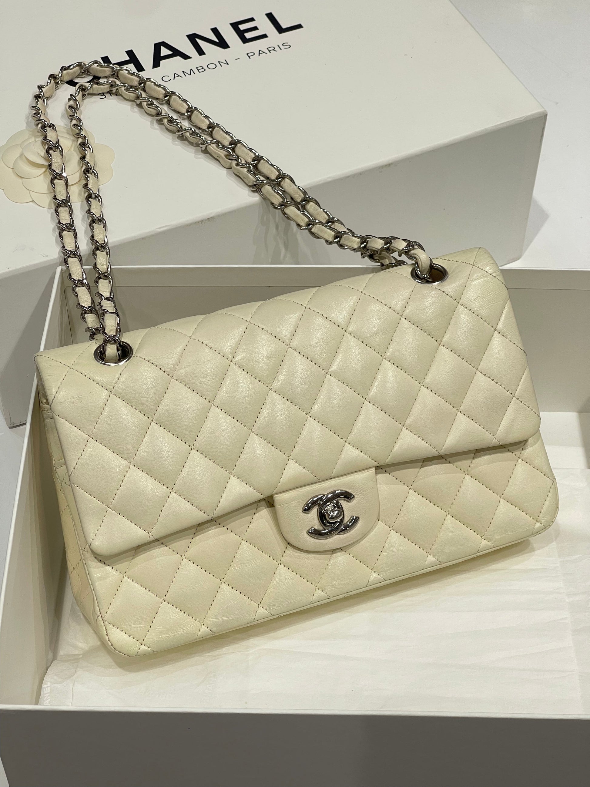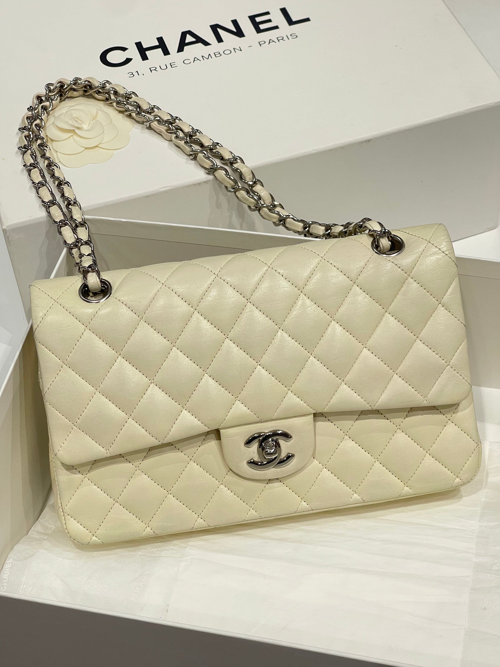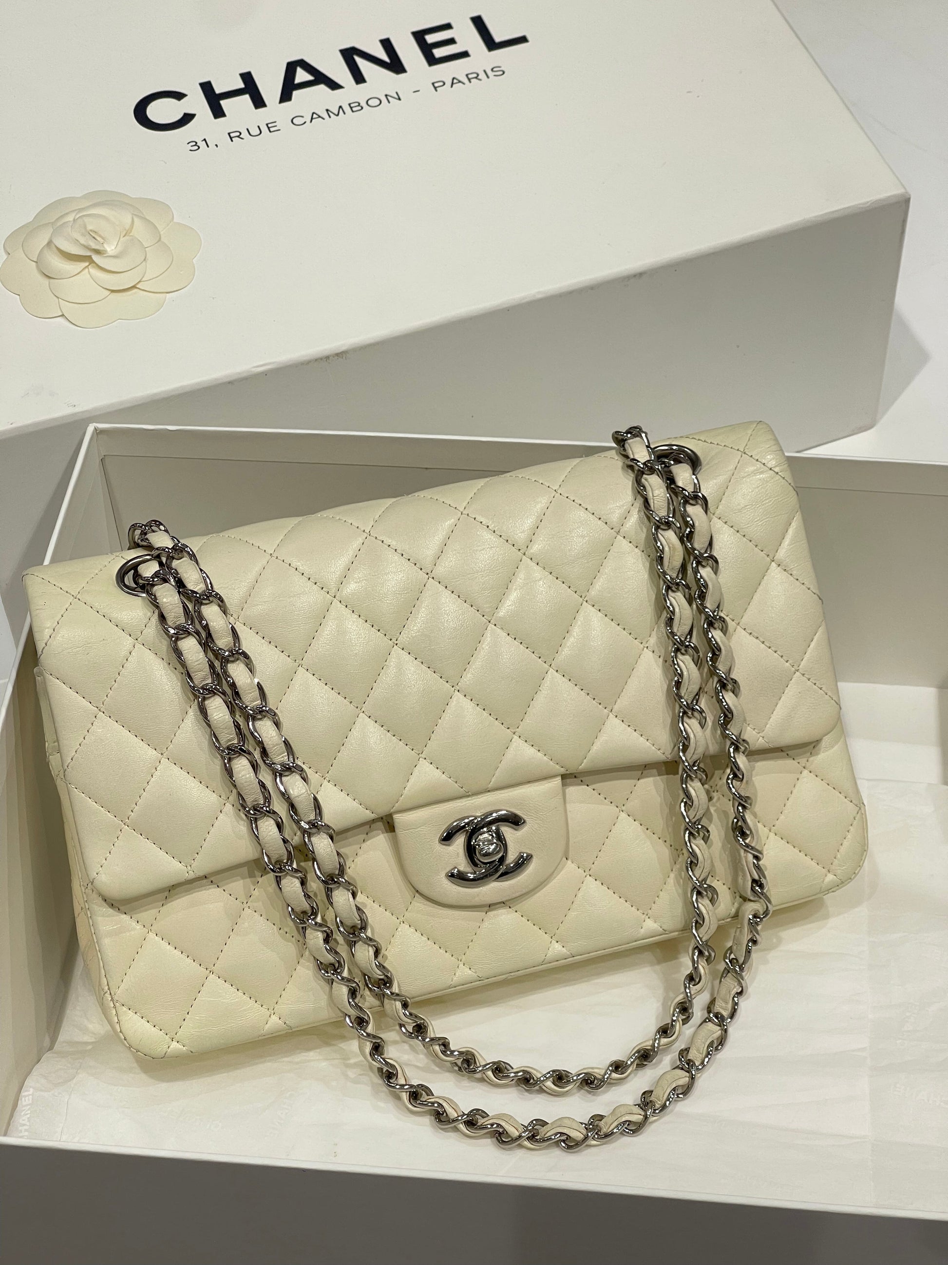 Découvrez notre nouvelle pépite ! Il fait l’objet de tous les désirs, Le sac classique double rabat est devenu l’incontournable de la maison aux doubles C. Ici présenté en cuir d’agneau lisse avec sa couleur Ivoire très rare, se mariera à la perfection tant avec vos tenues d’été comme au blanc d’hiver. Ce dernier est un objet de mode mais également un investissement certain.