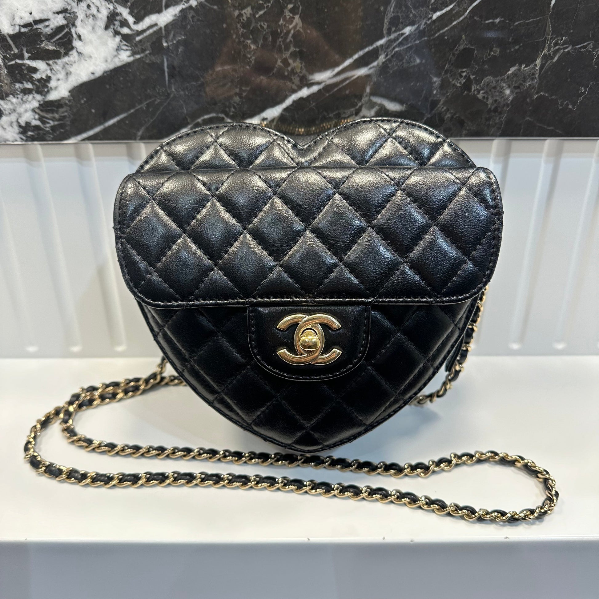 Magnifique sac en forme de cœur de la Maison Chanel, une pièce iconique et rare.