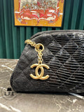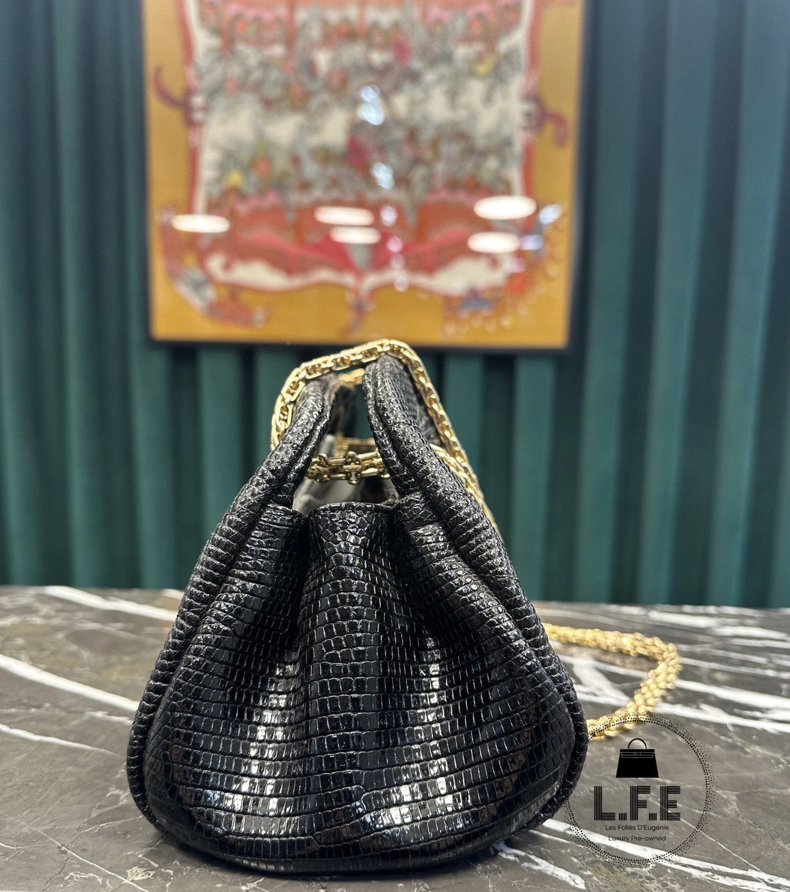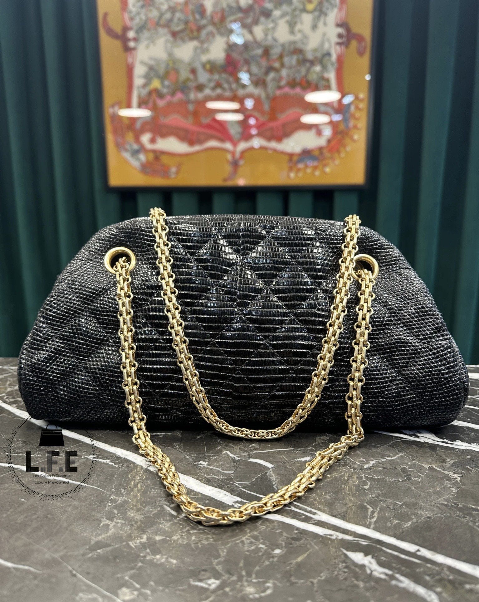 Magnifique sac Chanel Mademoiselle en lézard noir avec des finitions dorées, une touche d’élégance pour vos tenues !