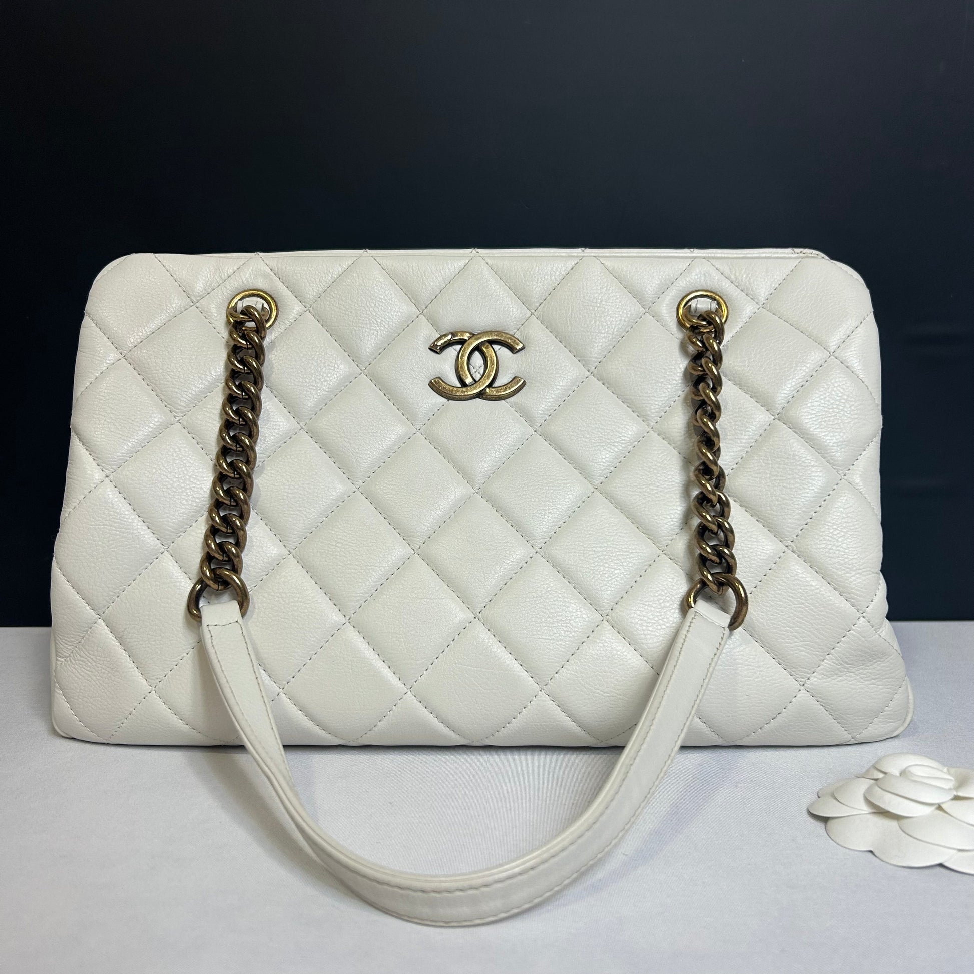L’intérieur est spacieux, permettant de ranger facilement les essentiels tout en restant organisé. Ce sac incarne l’élégance classique et le raffinement caractéristiques de la maison Chanel.