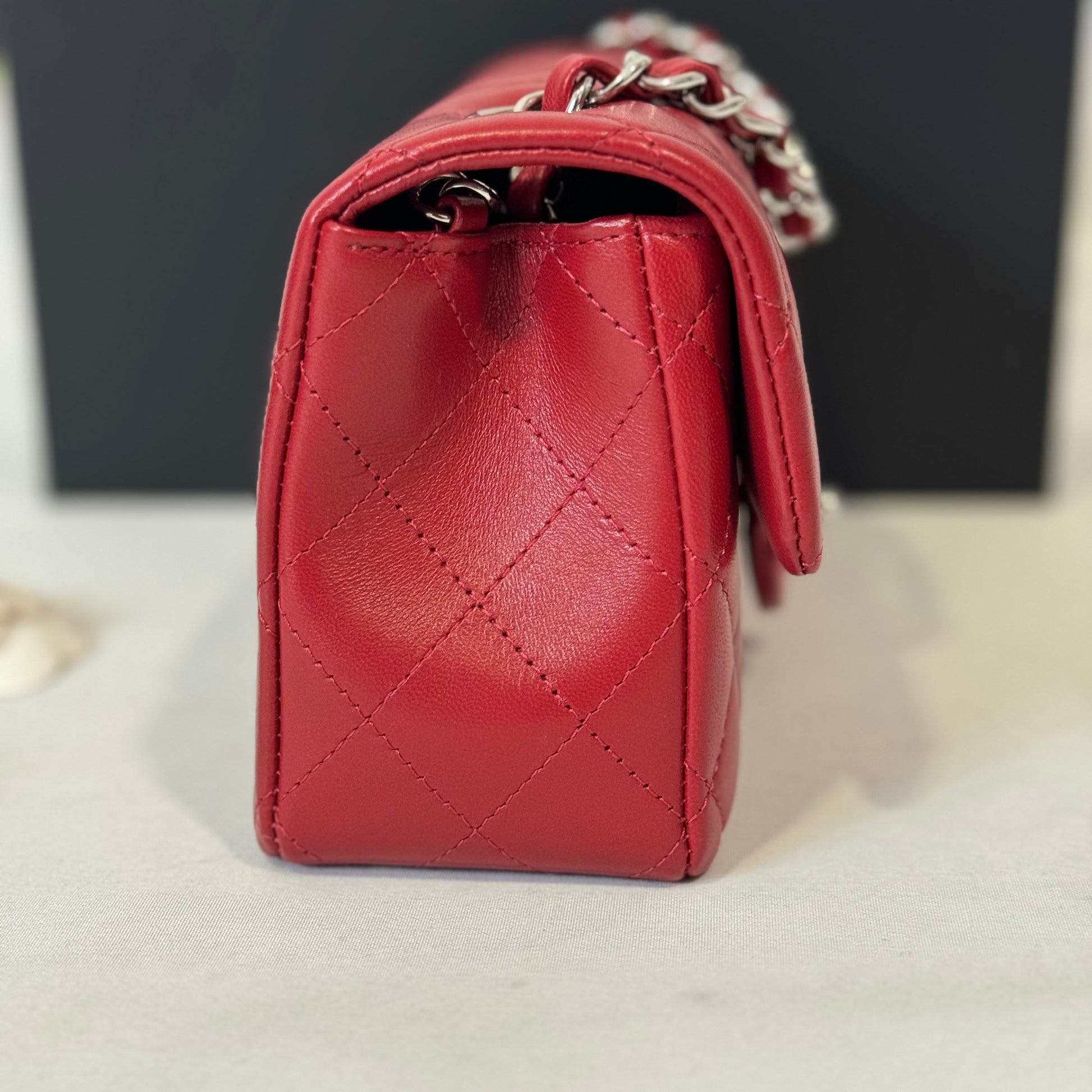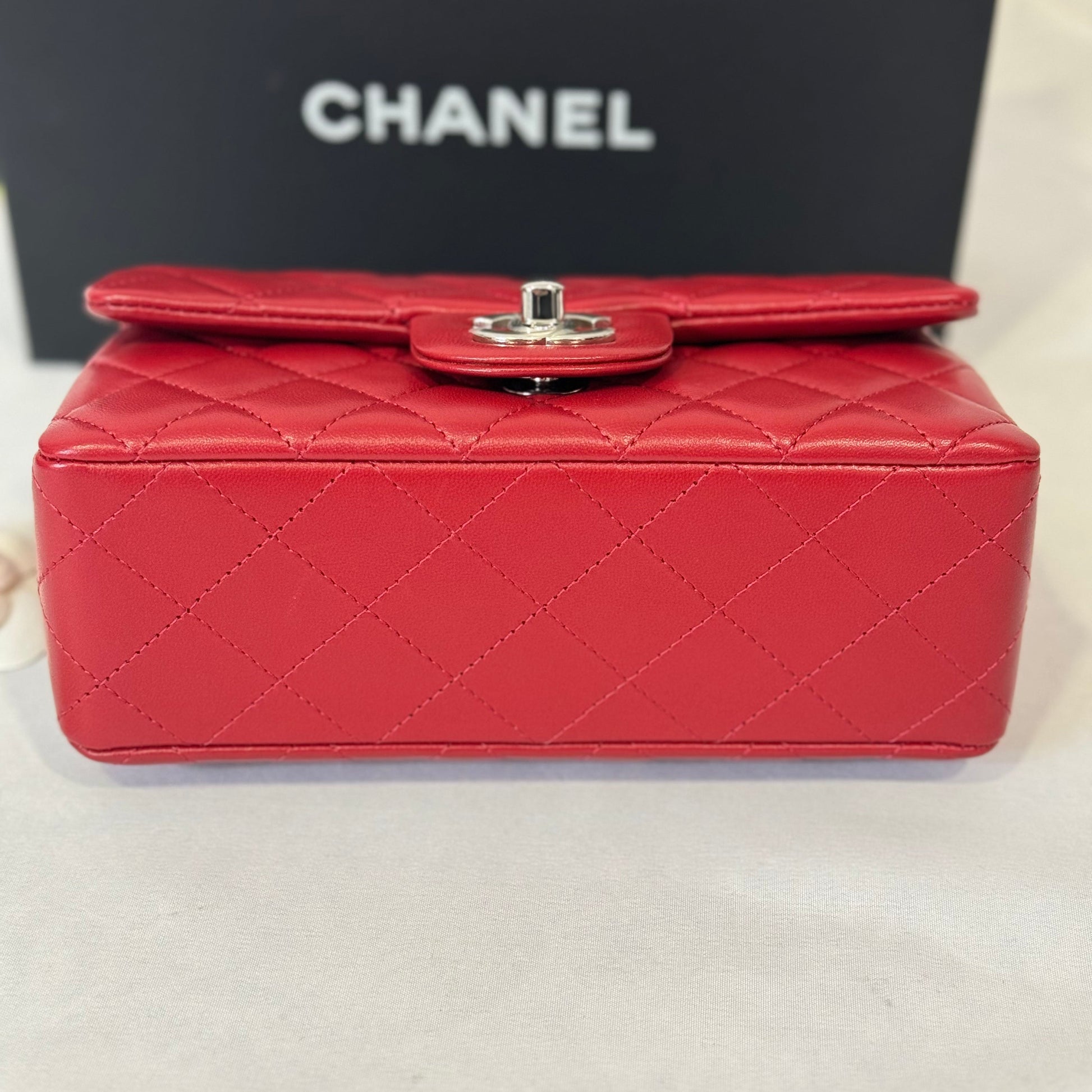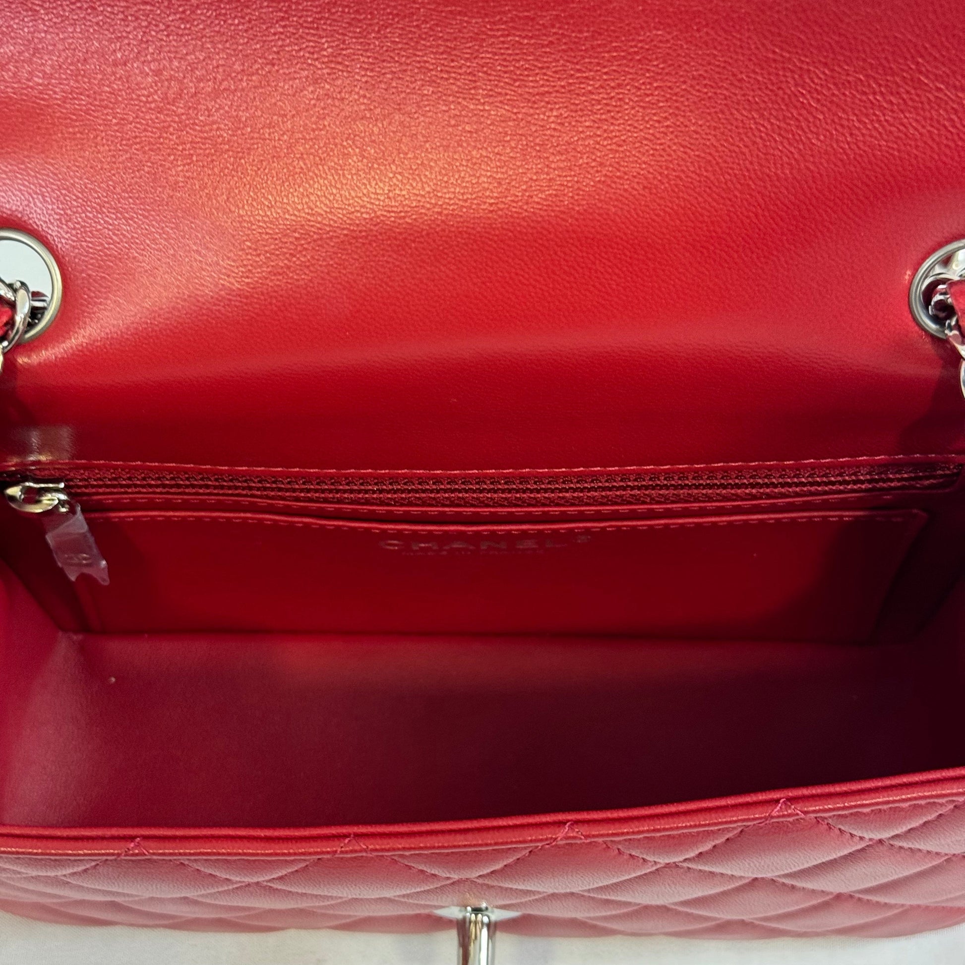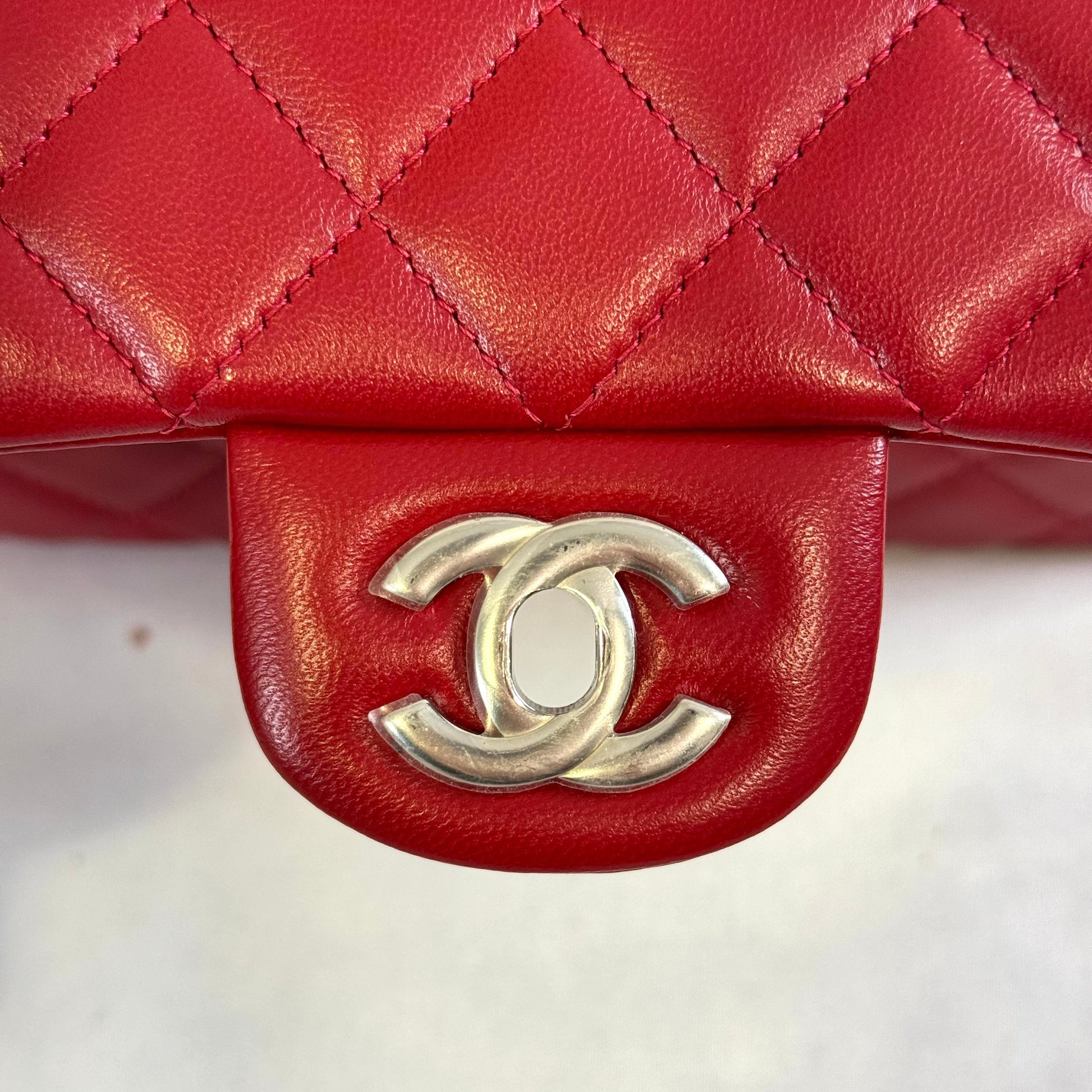 L’intemporel de la maison Chanel, le Timeless dans sa teinte rouge avec accastillages argentés, l’accessoire parfait à avoir dans son dressing.