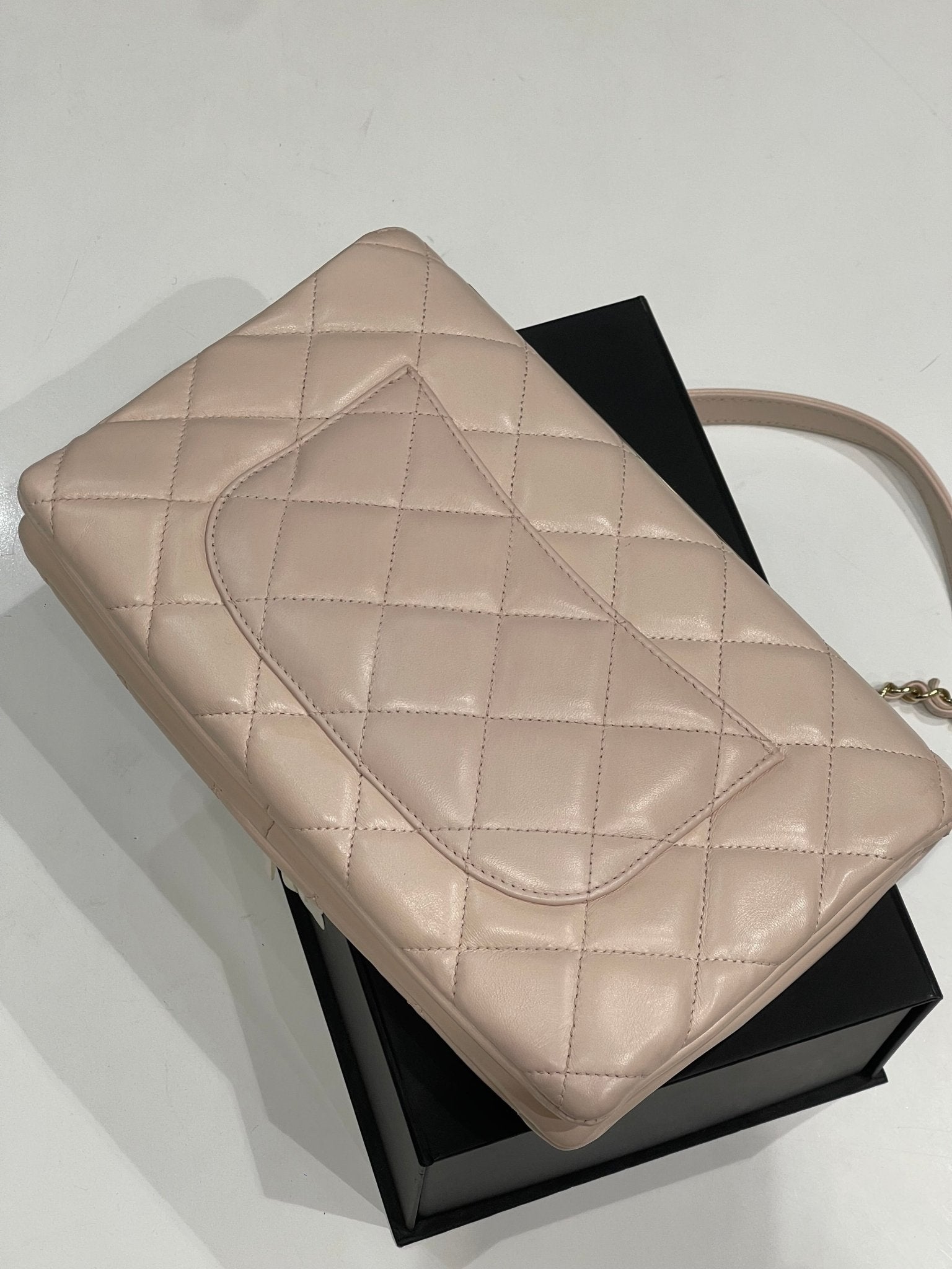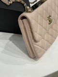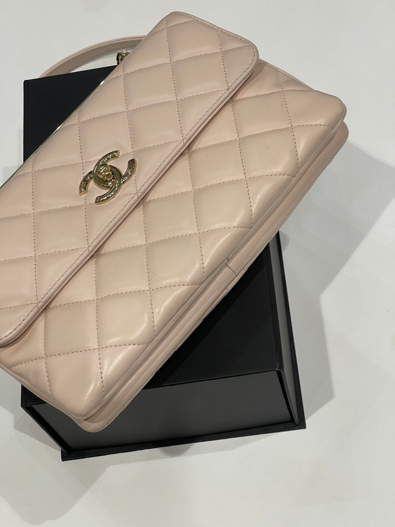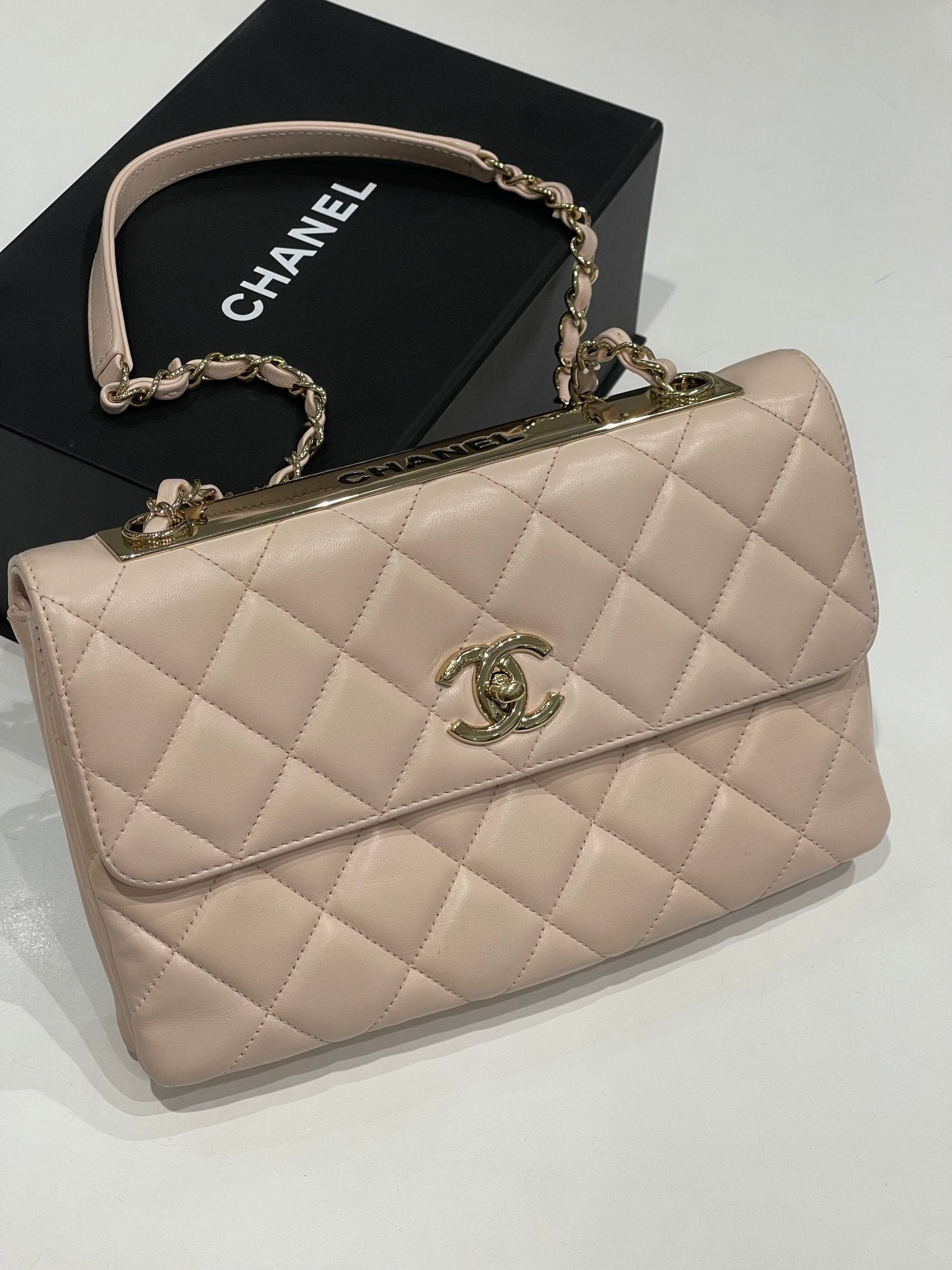 Le Trendy est un chef-d'œuvre de la mode, incarnant l'élégance intemporelle et le raffinement de la marque. Fabriqué à partir de cuir de qualité supérieure dans une teinte rose poudré délicate, ce sac est à la fois féminin et sophistiqué. Son design épuré est rehaussé par des détails emblématiques de Chanel, tels que le logo CC métallique champagne et la chaîne entrelacée en cuir.