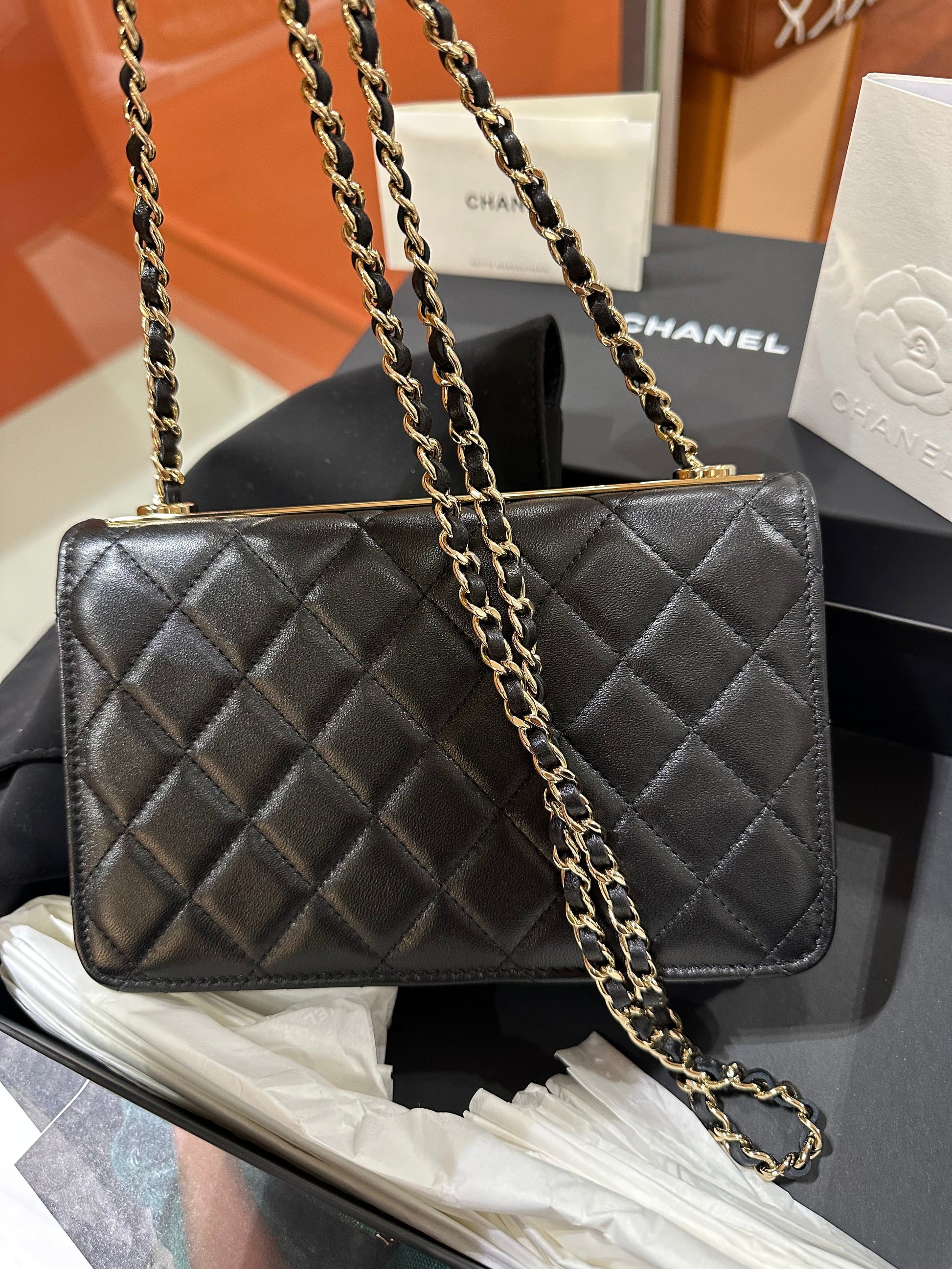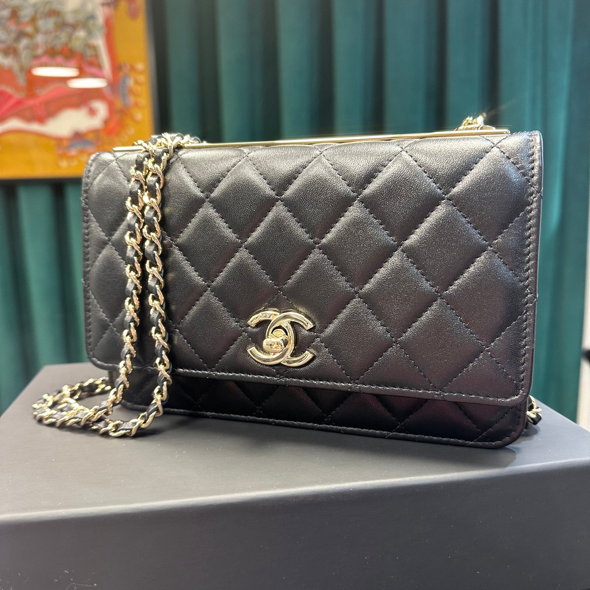 Découvrez l’iconique wallet on chain de la maison Chanel dans sa version très rare du trendy CC. Le sac est neuf et dispose de tous ses accessoires.
