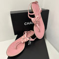 Sandales plates rose bonbon avec petit noeud et logo CC en strass. Brides réglables.
