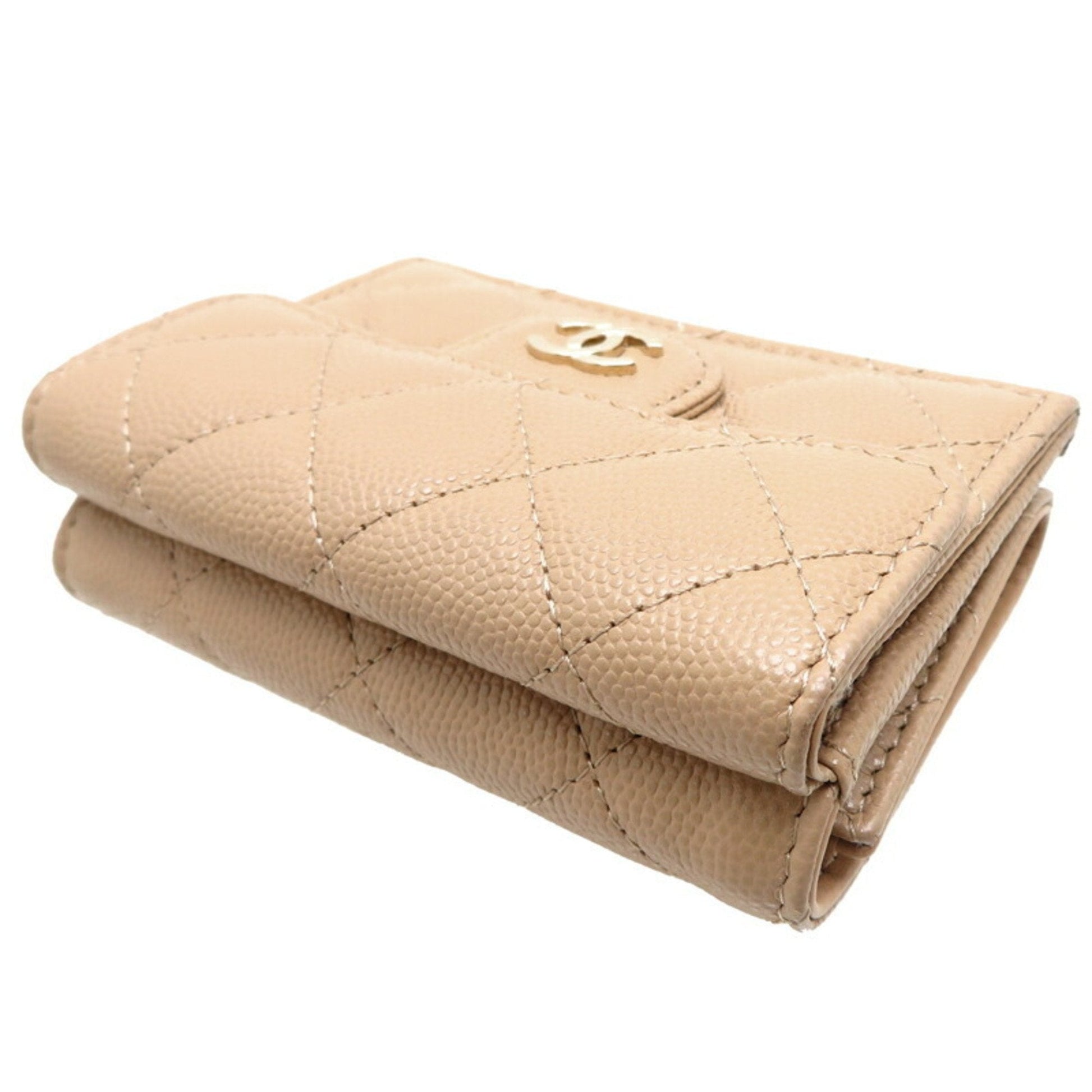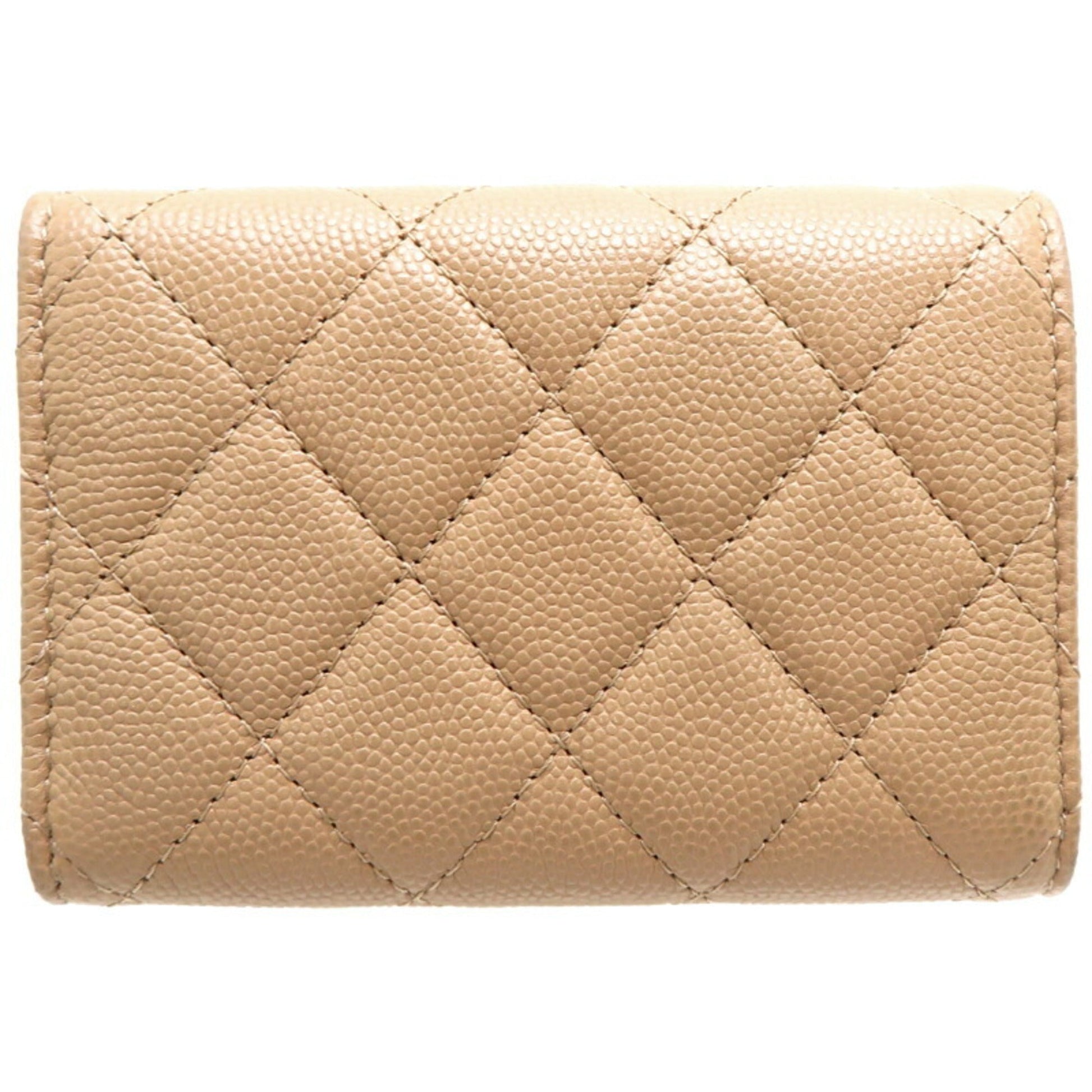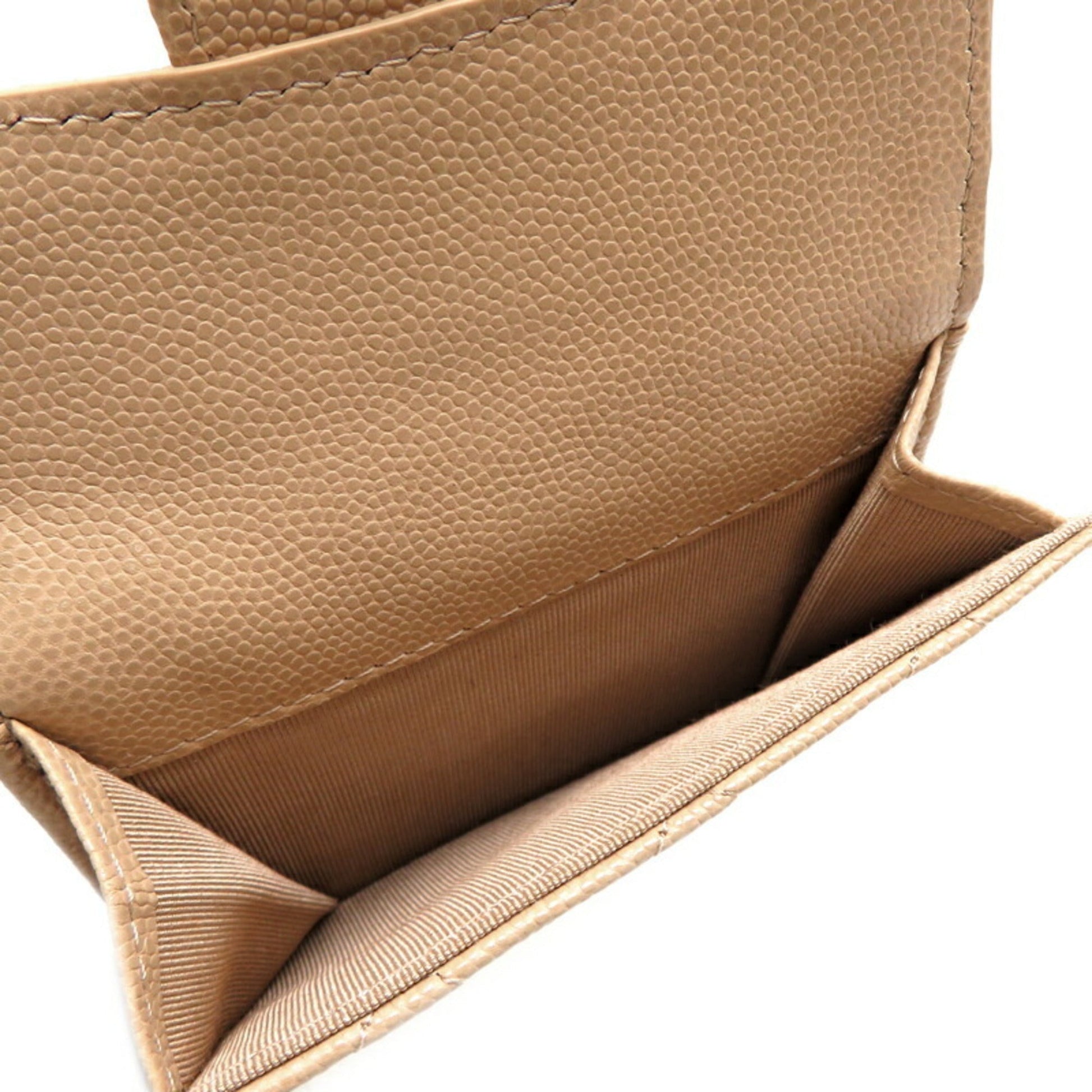 Chanel Seal Caviar W Compact Wallet Women's Tri-fold Skin Beige