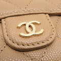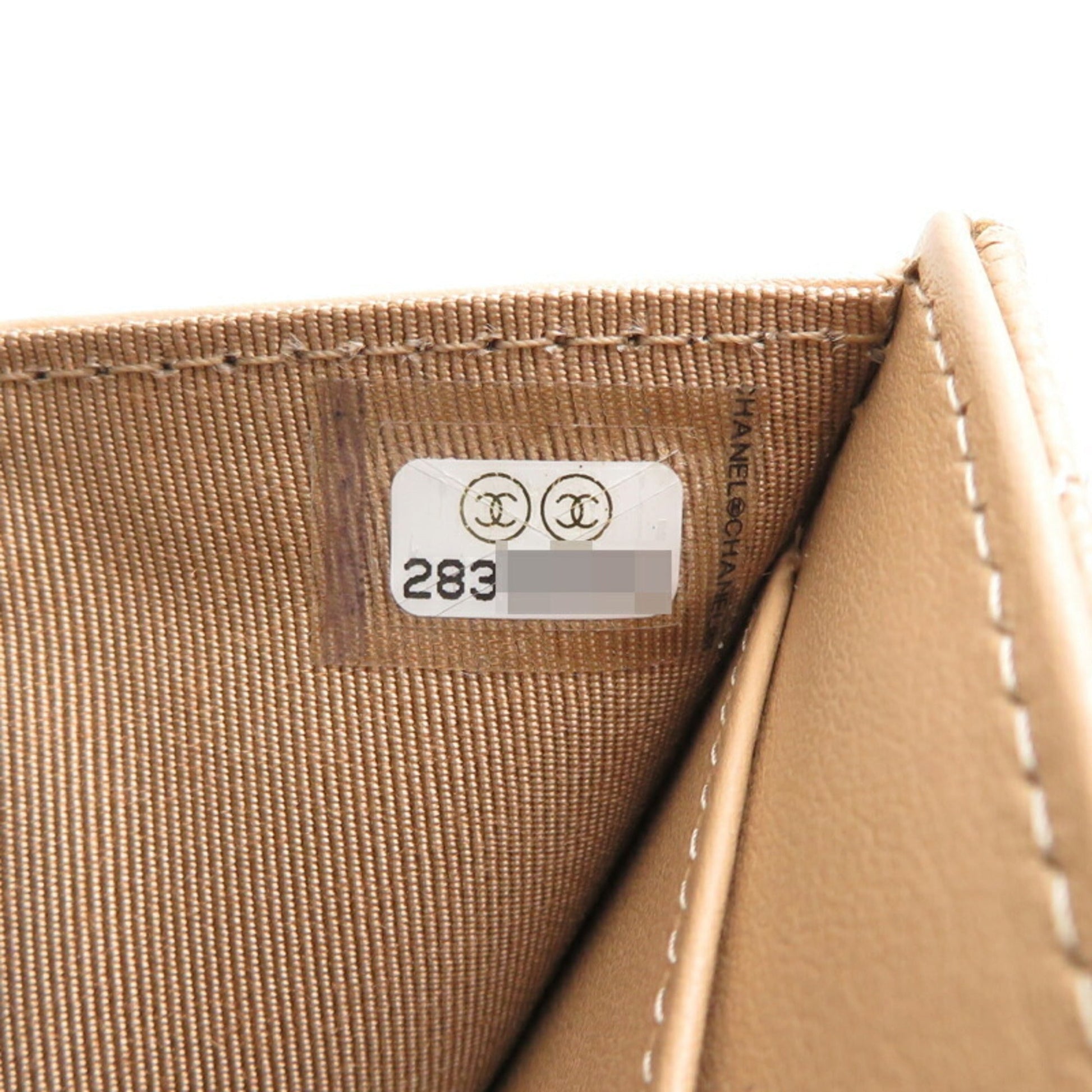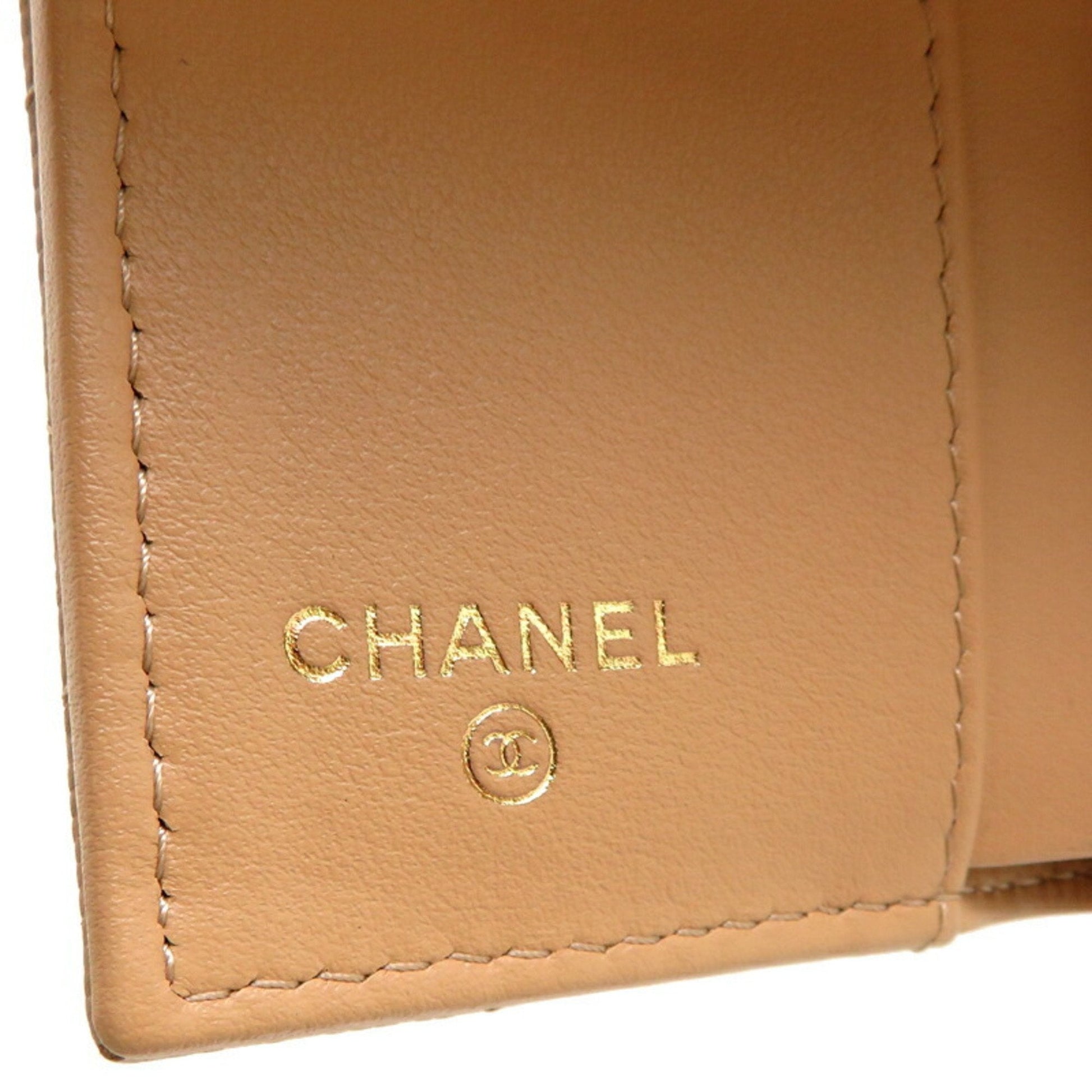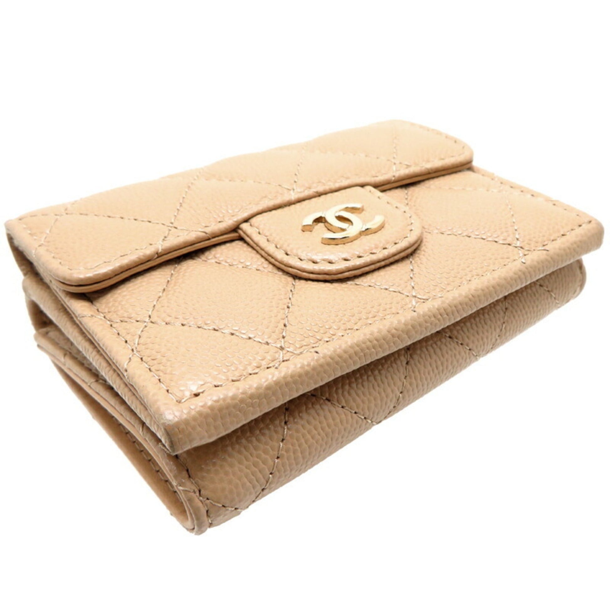 Chanel Seal Caviar W Compact Wallet Women's Tri-fold Skin Beige