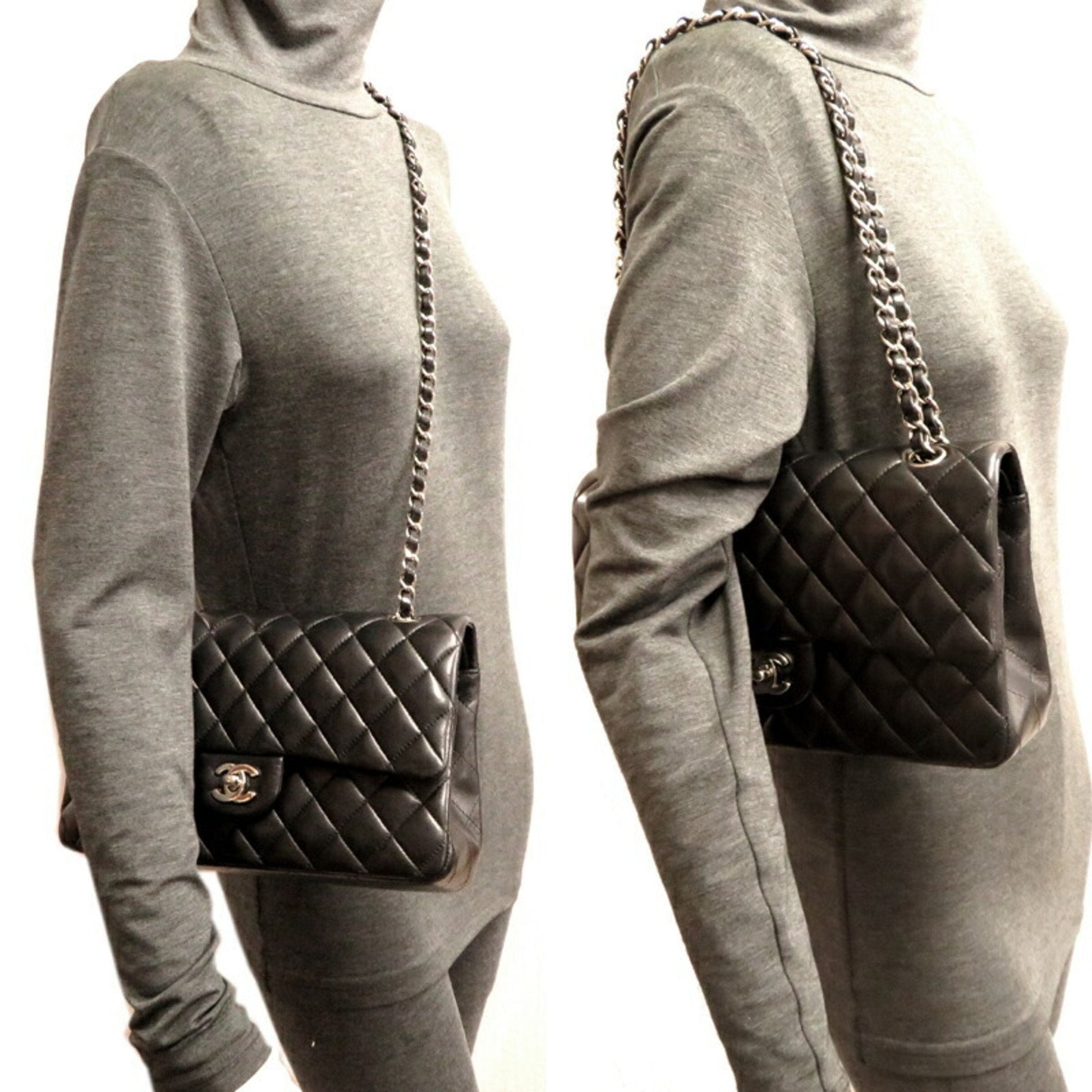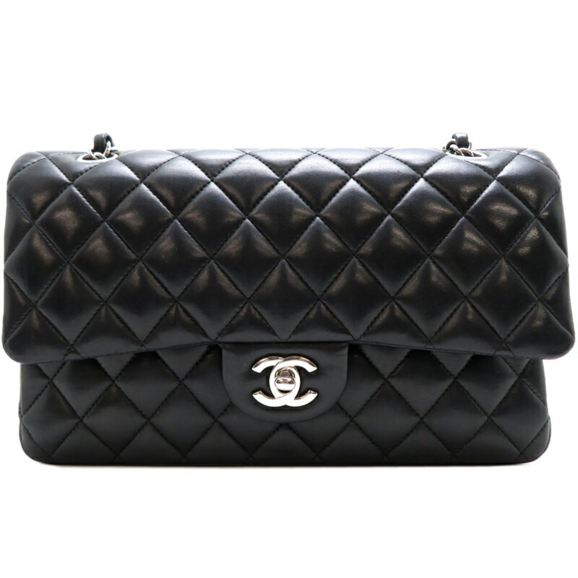 Chanel Seal Matelasse Chain Shoulder 25 Women's Bag AO1112 Lambskin Black