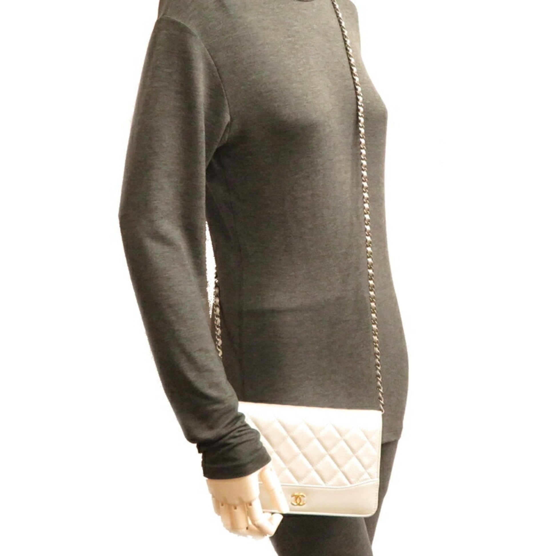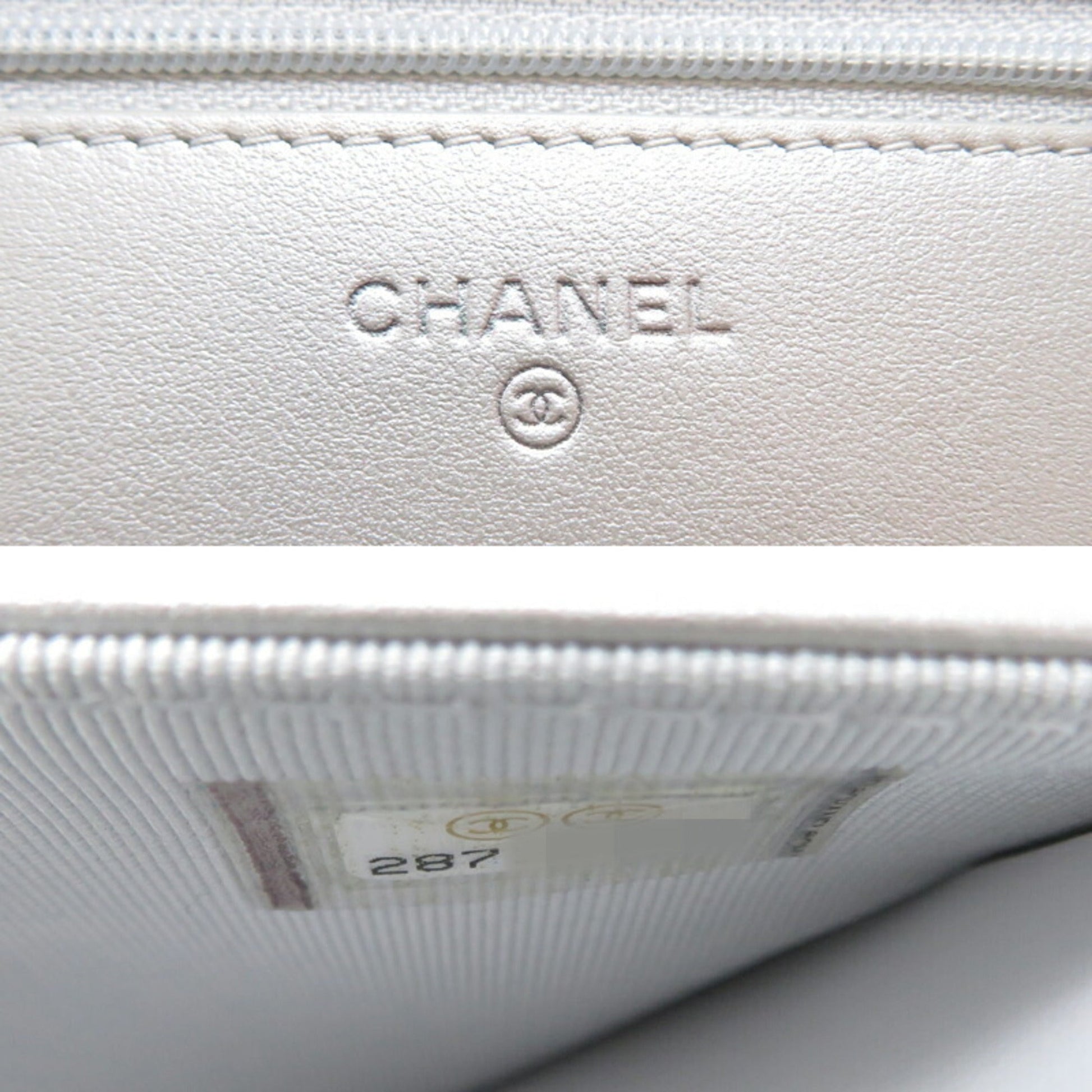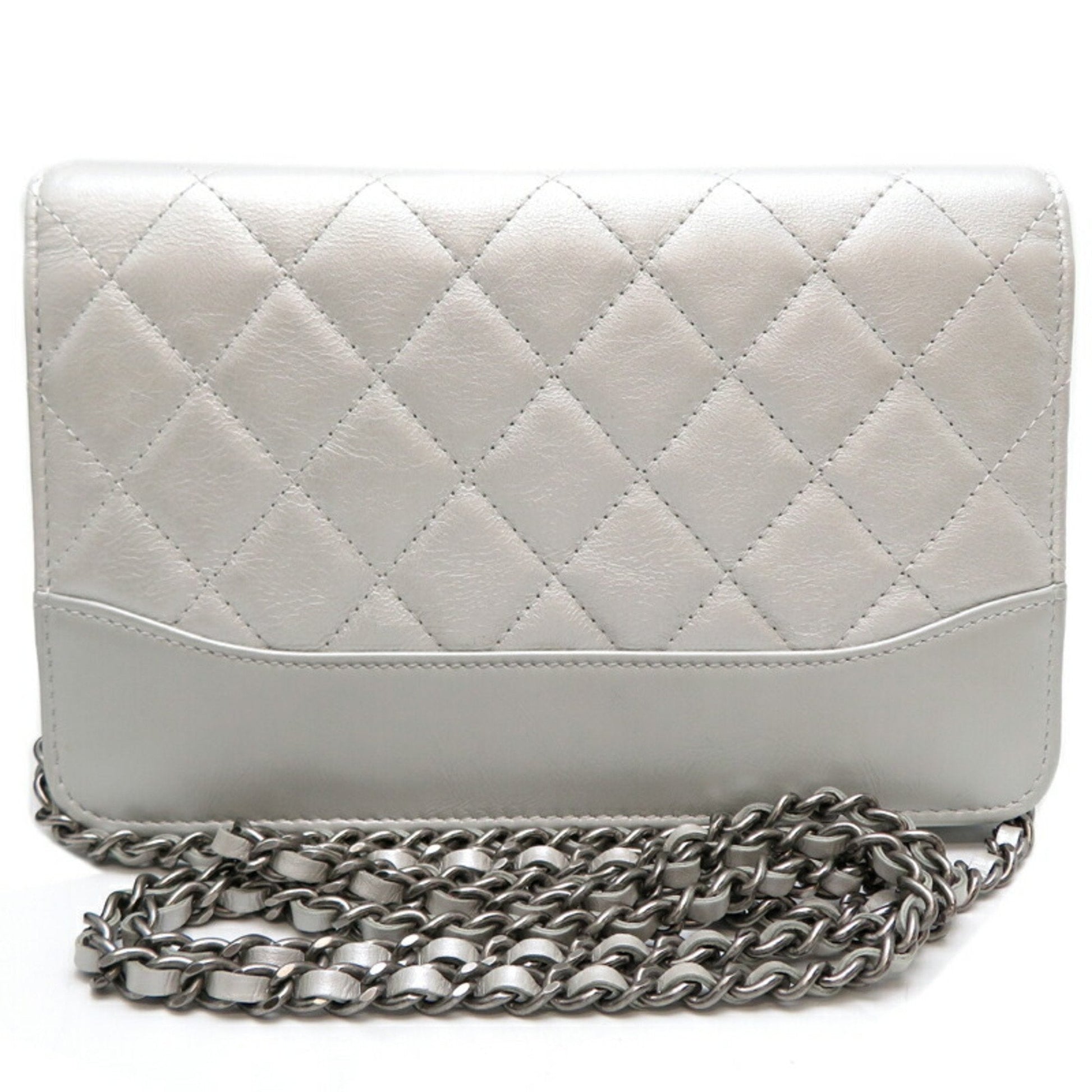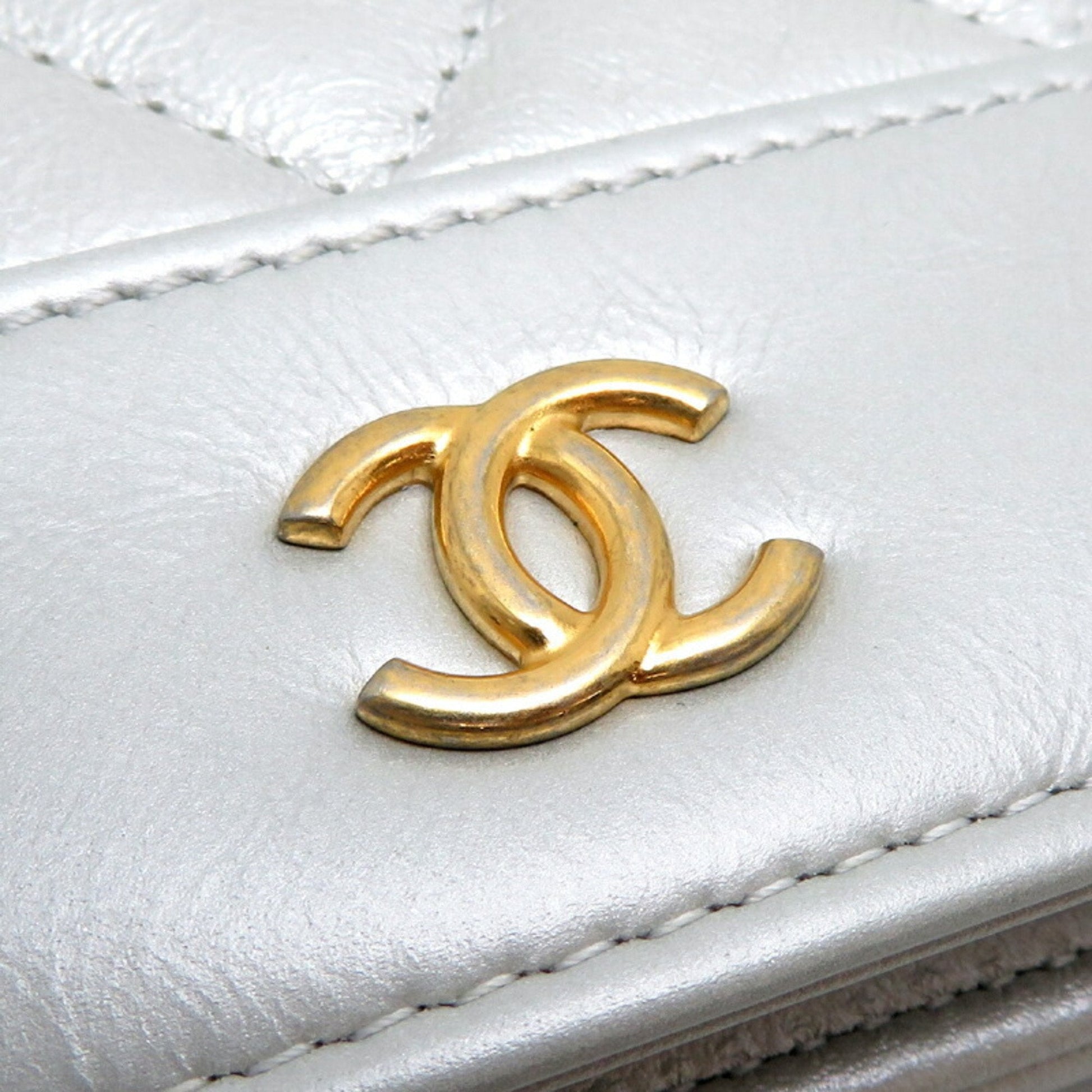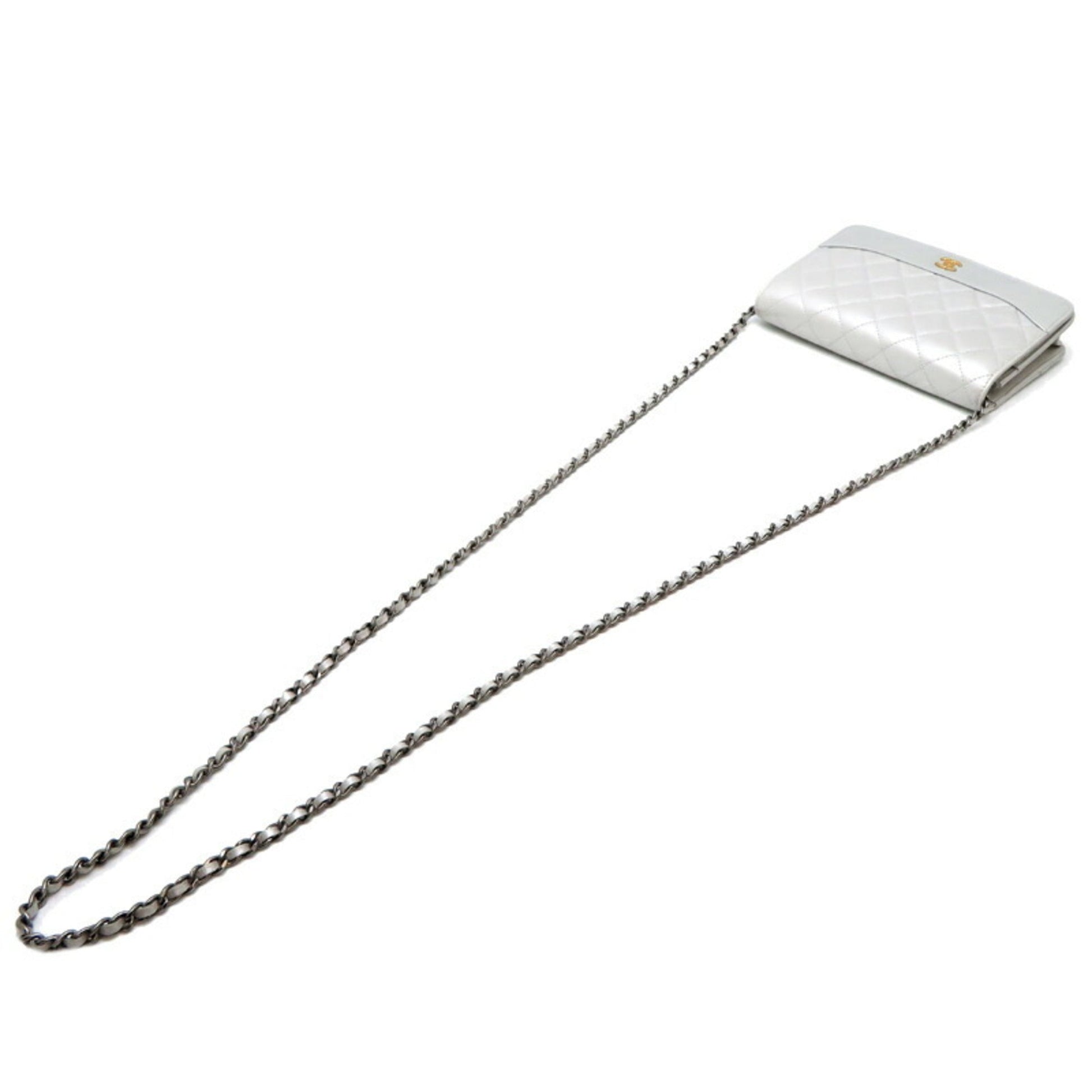 Chanel Seal Matelasse Chain Wallet Women's Shoulder Bag A84389 Lambskin Silver