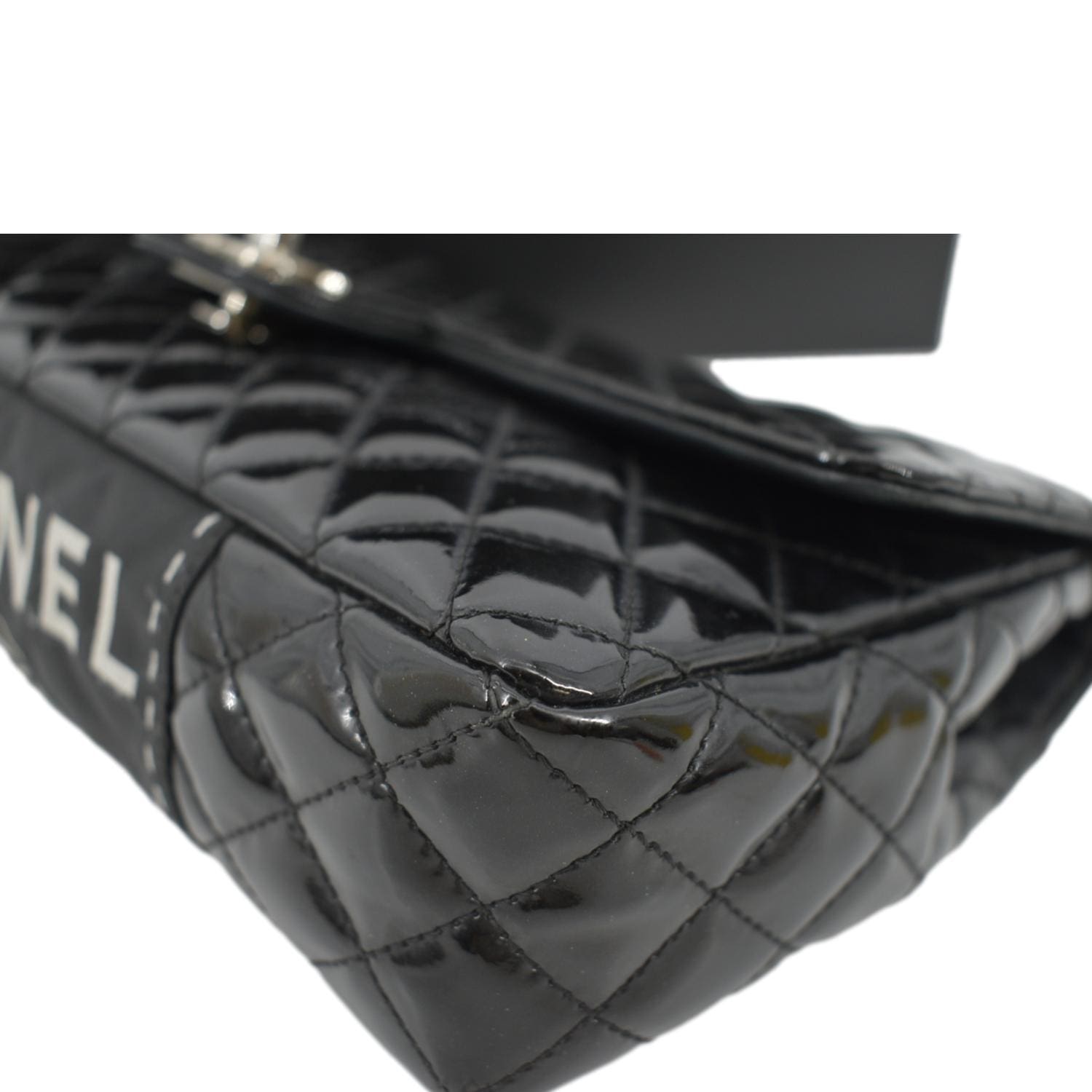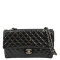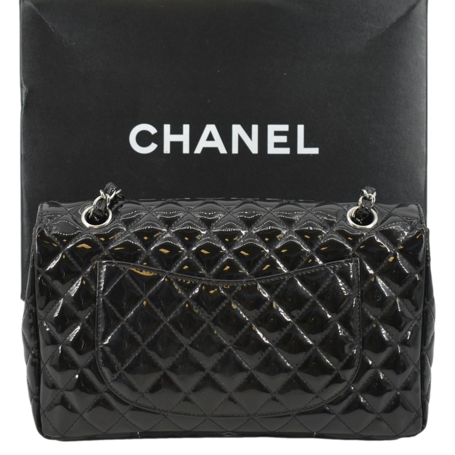 CHANEL Secret Label Flap Patent Leather Shoulder Bag Black