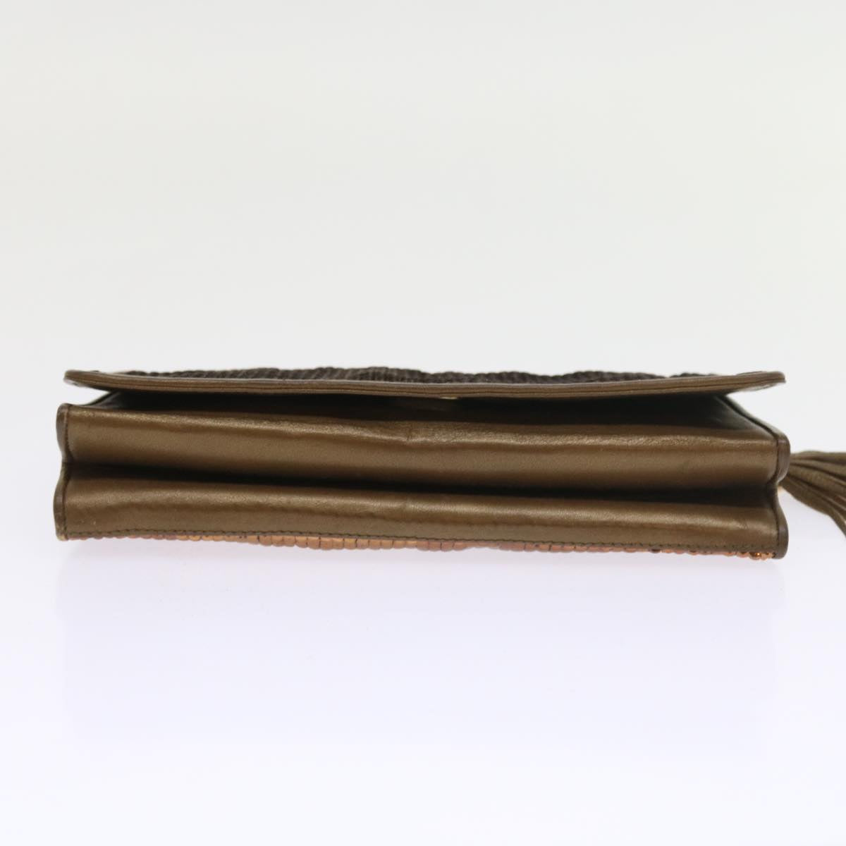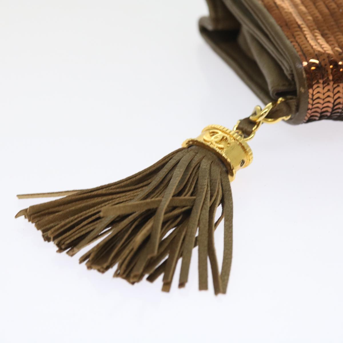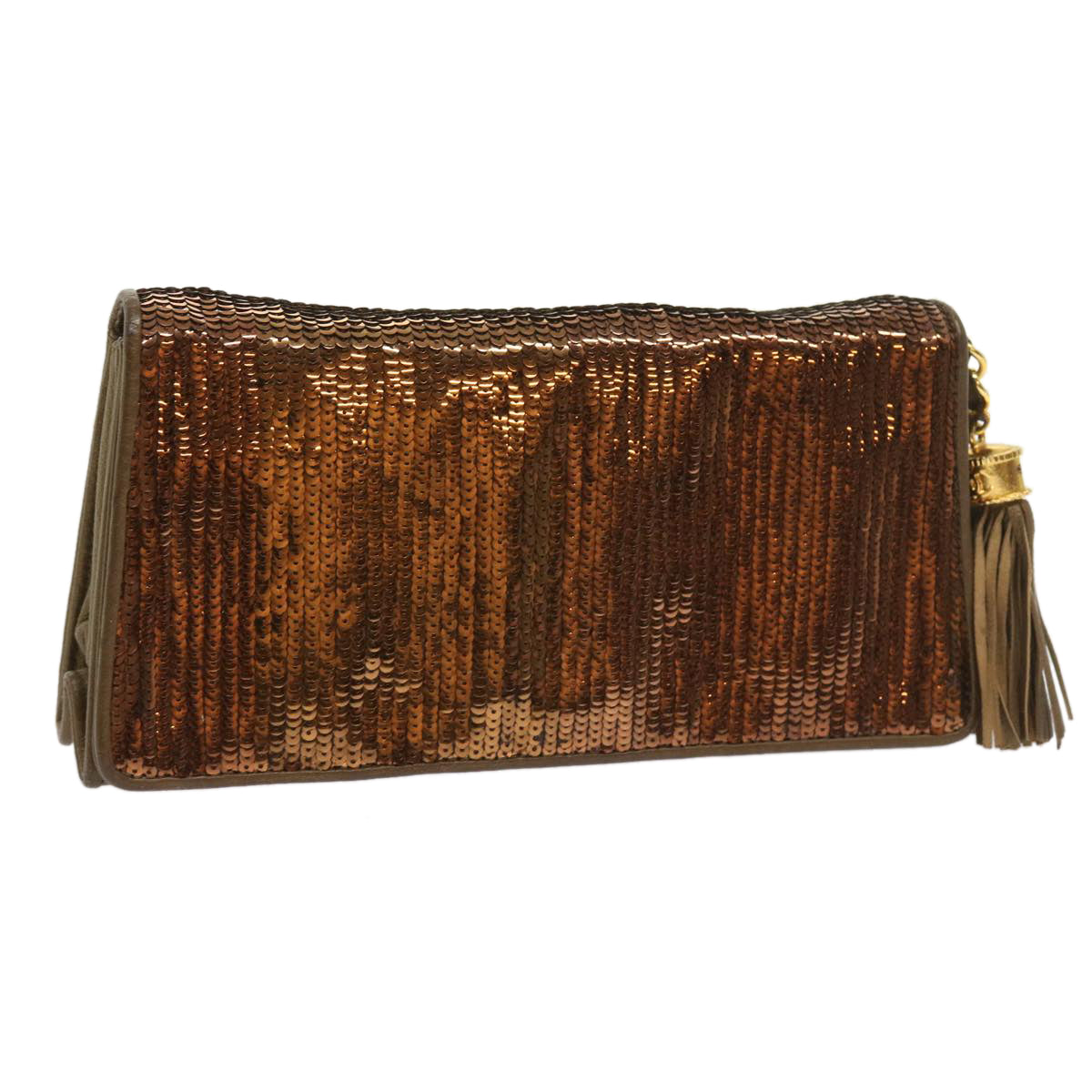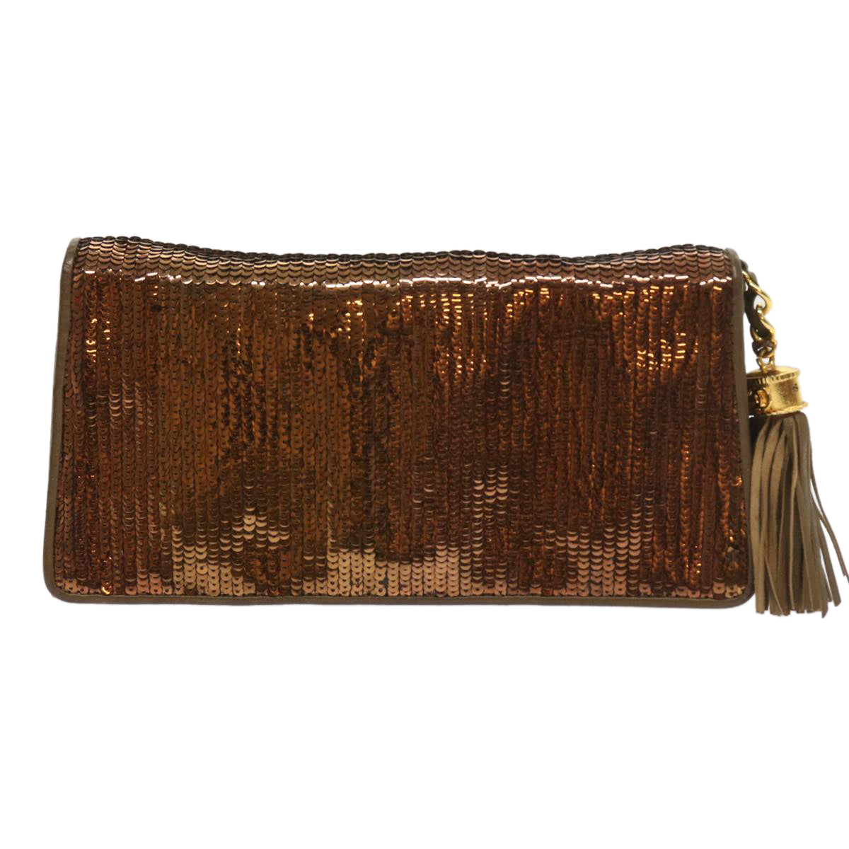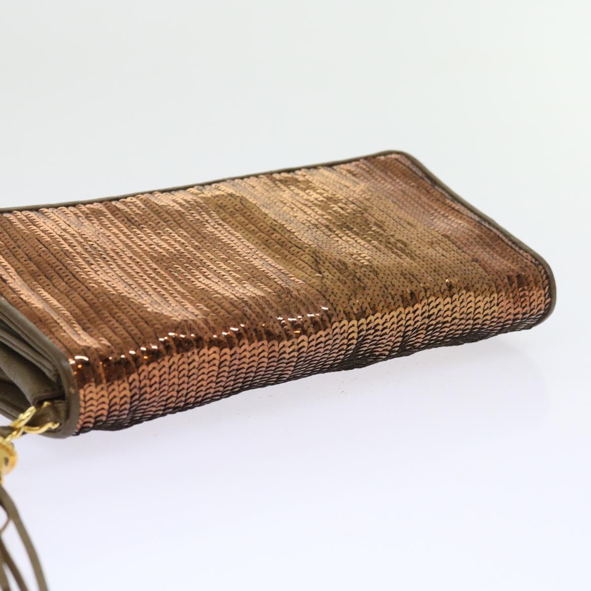 CHANEL Sequin Clutch Bag Leather Bronze CC Auth bs9383