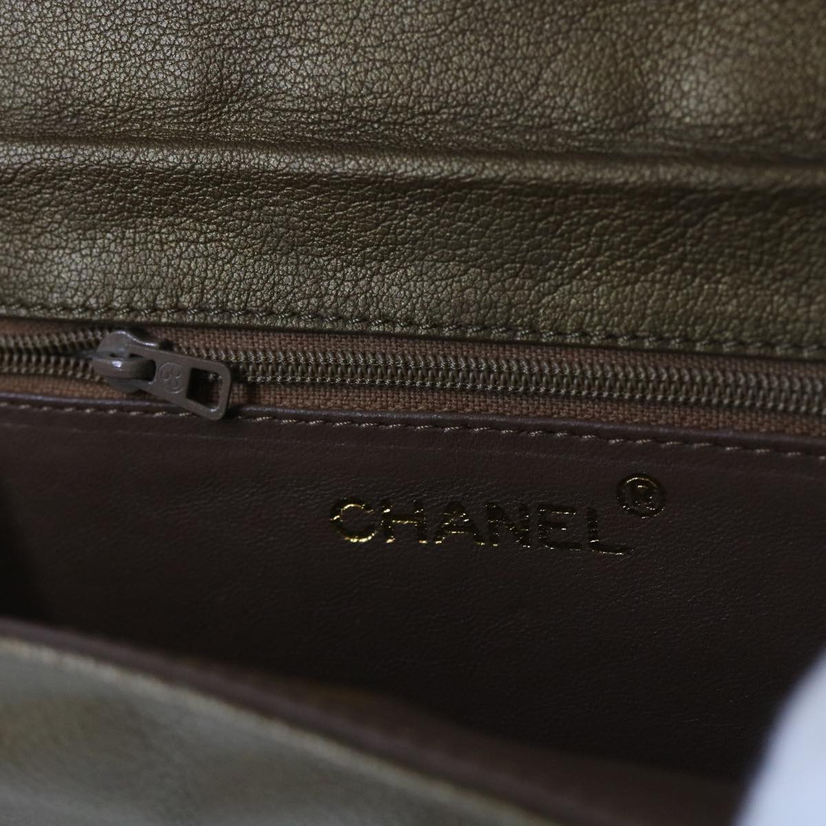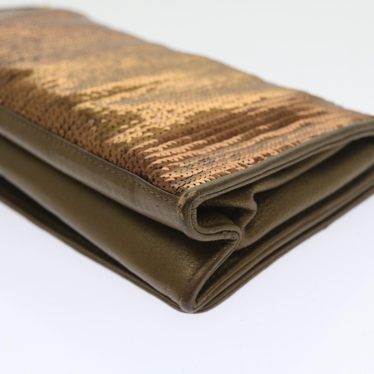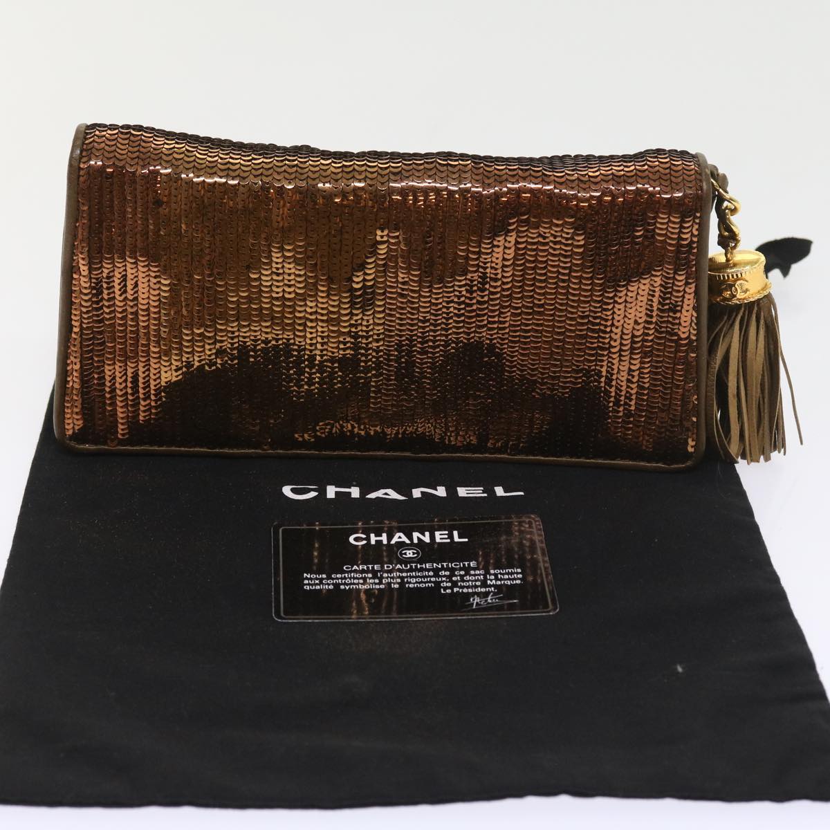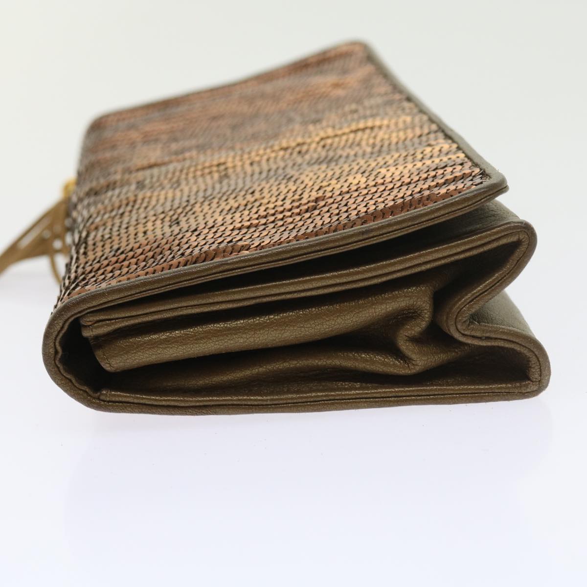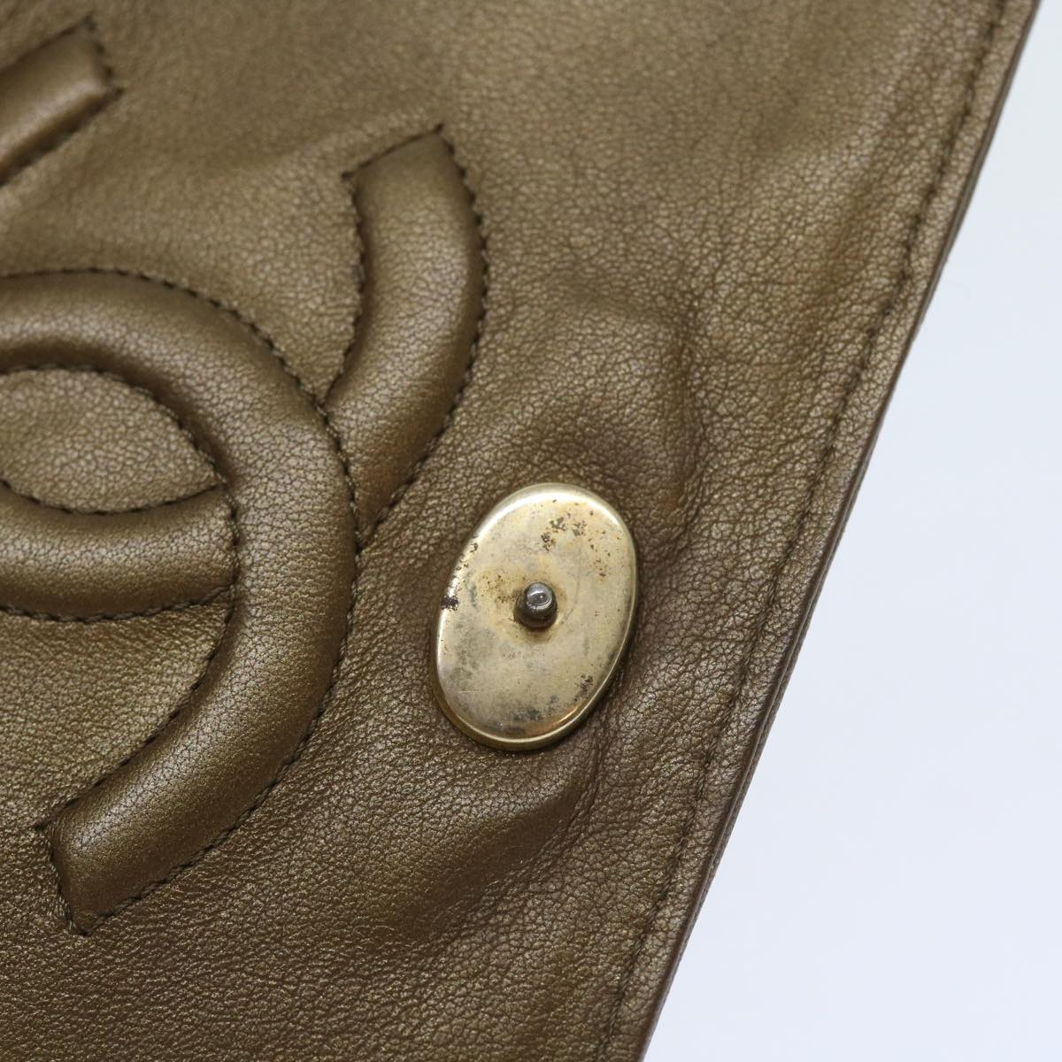 CHANEL Sequin Clutch Bag Leather Bronze CC Auth bs9383