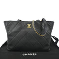 CHANEL Shopping Quilted Leather Tote Bag Black