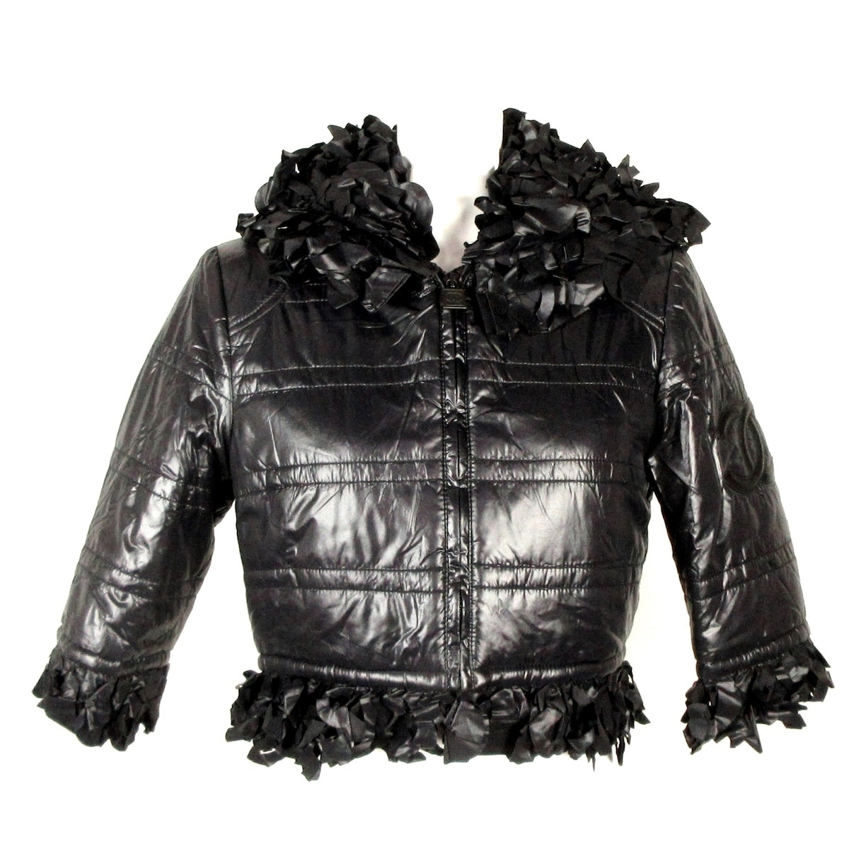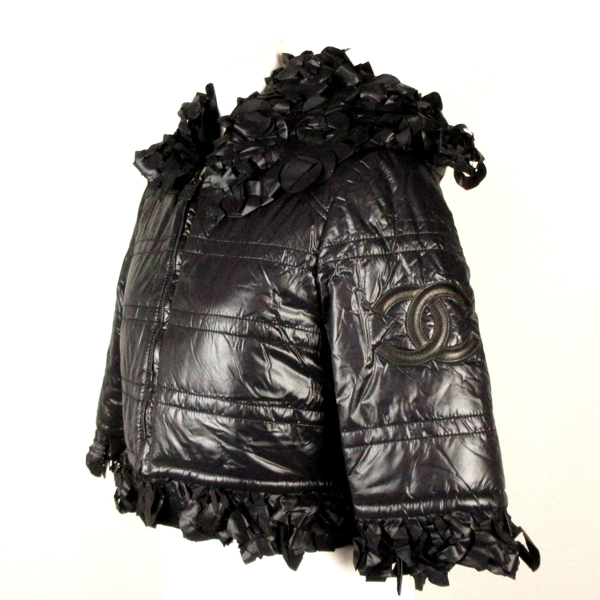 This Chanel short sleeve jacket exudes elegance and sophistication. Crafted with a luxurious black fabric, it features a tailored fit and impeccable craftsmanship. The perfect addition to any wardrobe, this size 34 piece is in excellent condition, making it a must-have for any fashion enthusiast.