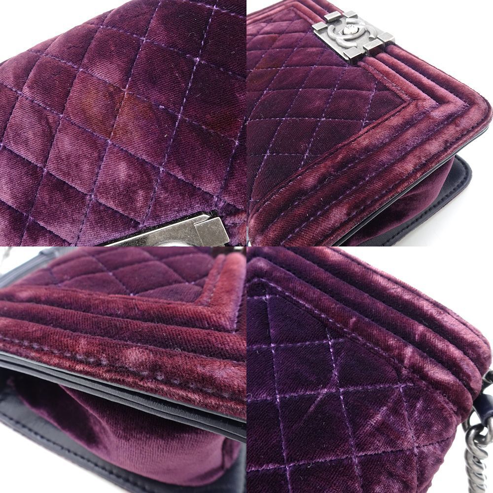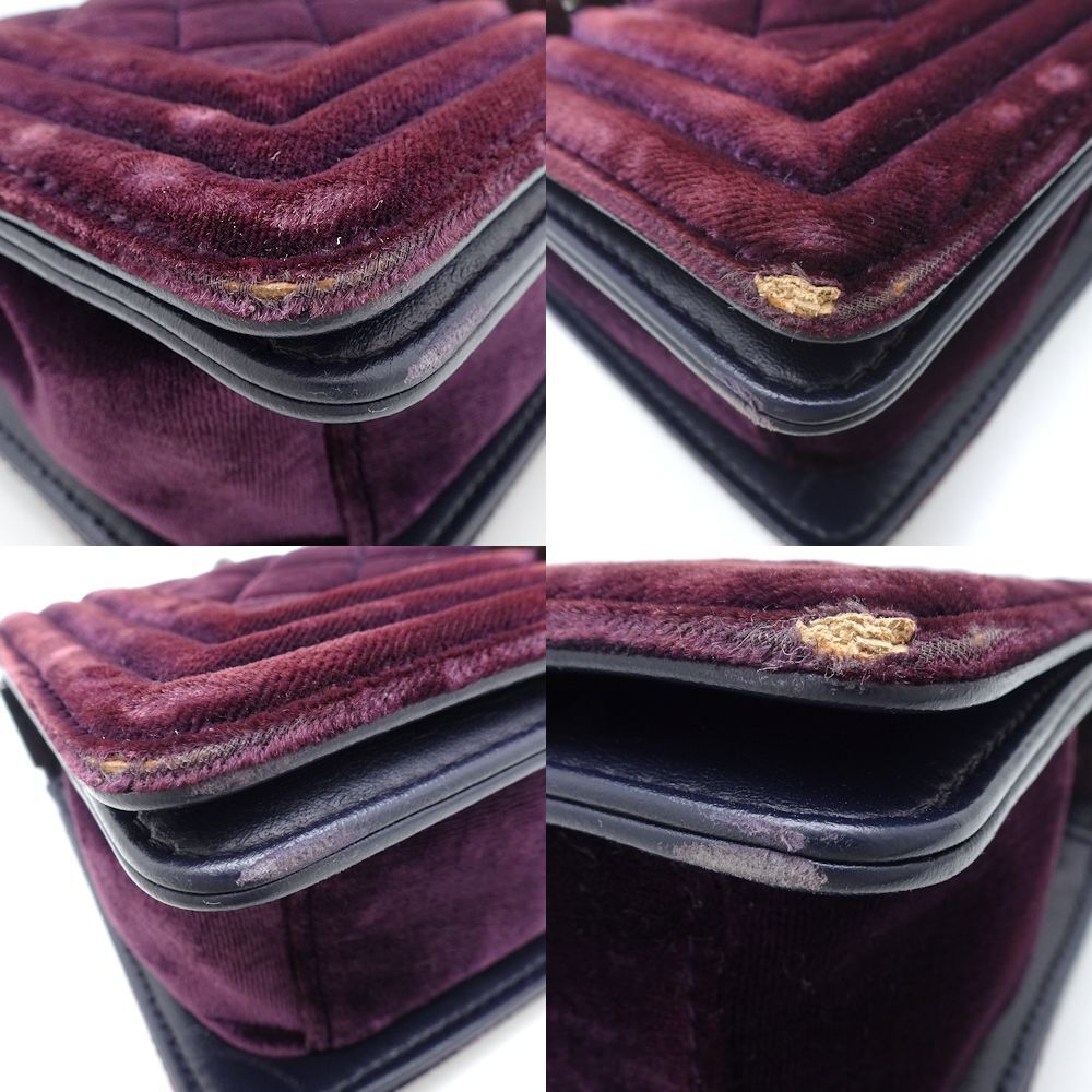 Featuring the signature Chanel Boy bag silhouette, this velour version adds a touch of opulence to any outfit. The rich texture and classic quilting detail showcase the meticulous craftsmanship synonymous with the Chanel brand. The versatile shoulder strap allows for easy wear, making it ideal for both daytime and evening occasions.