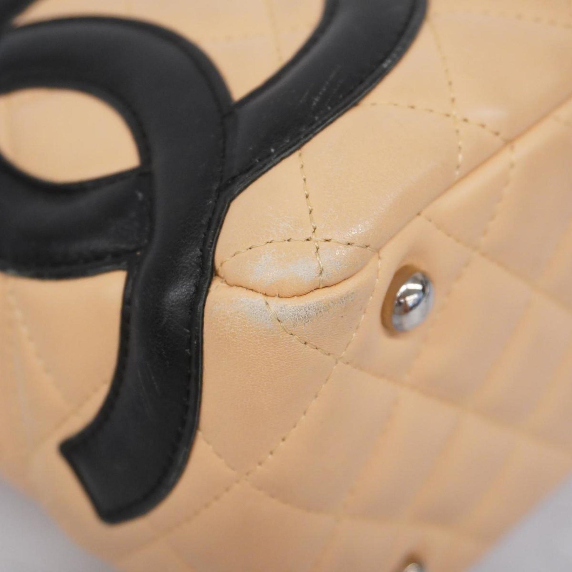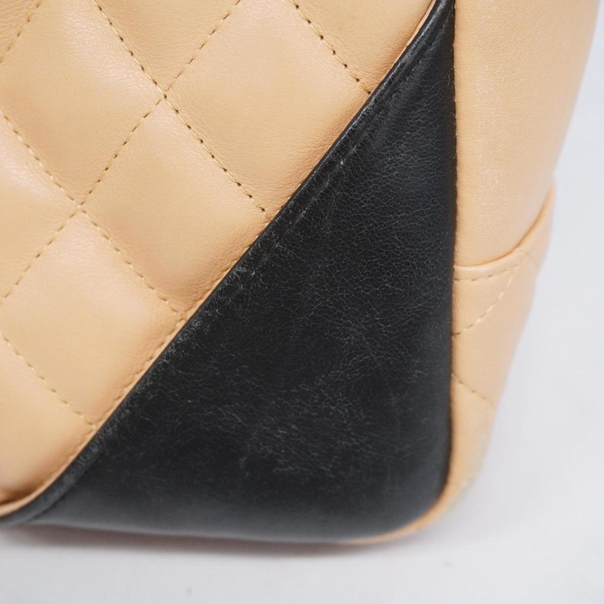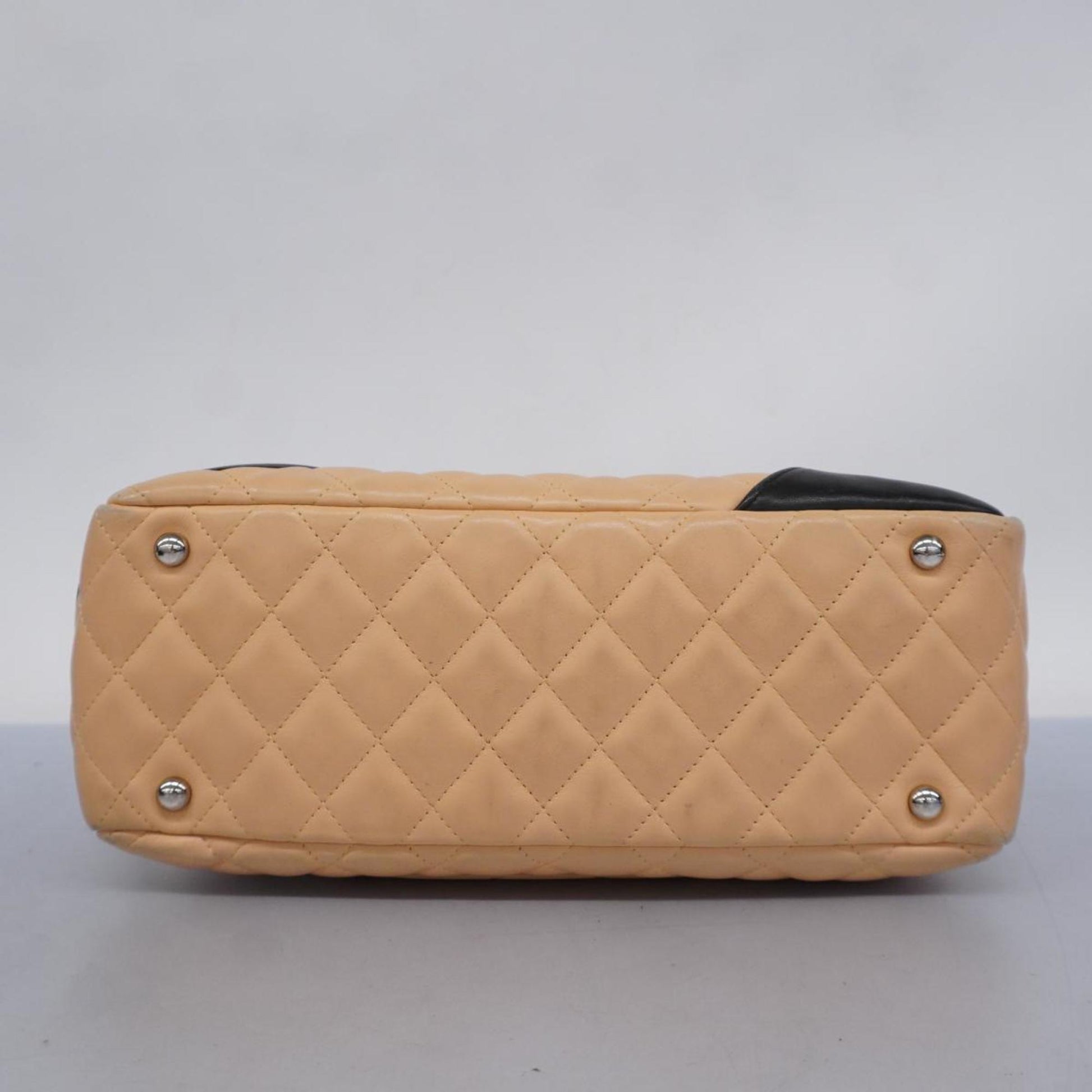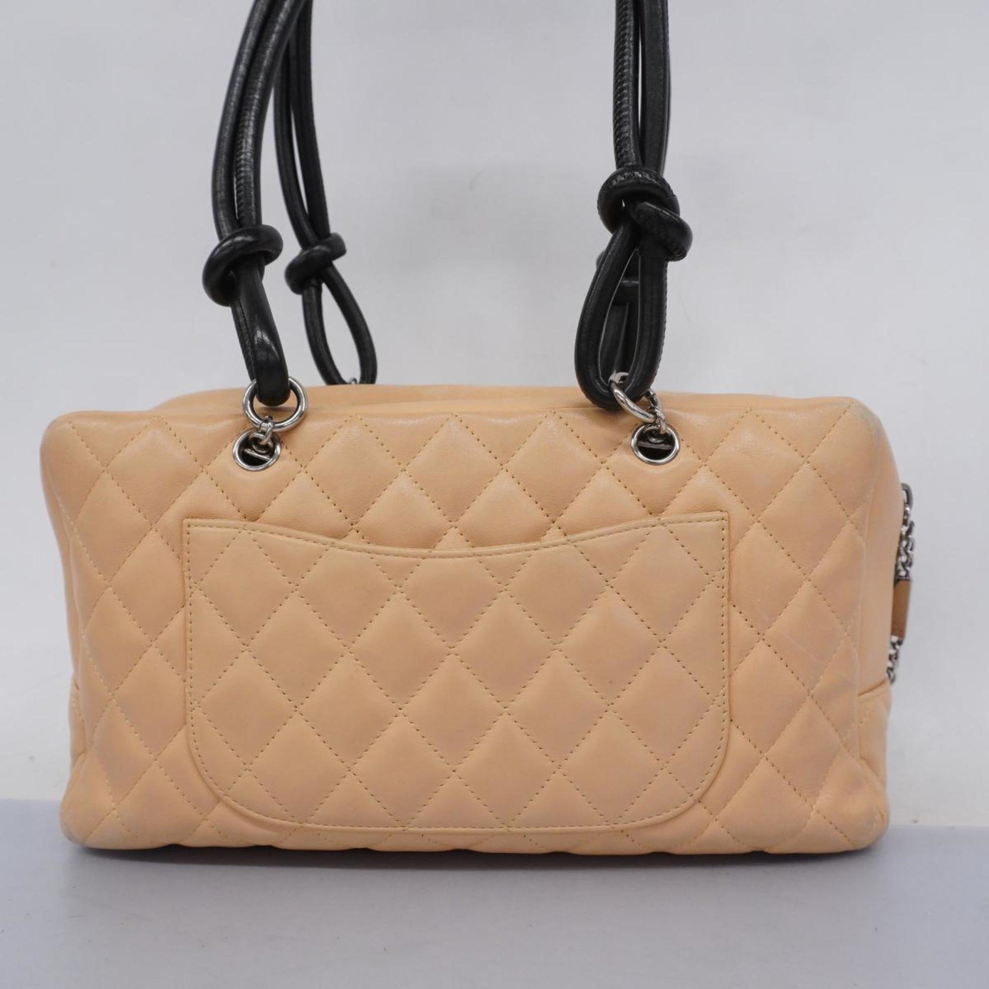 Chanel Shoulder Bag Cambon Lambskin Black Beige Women's