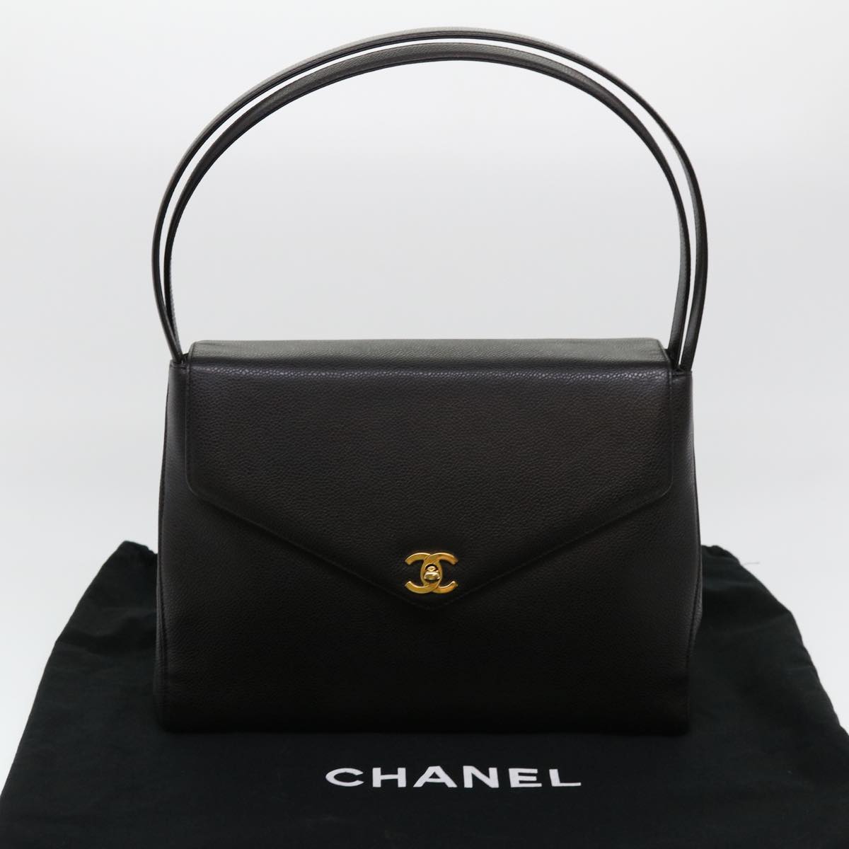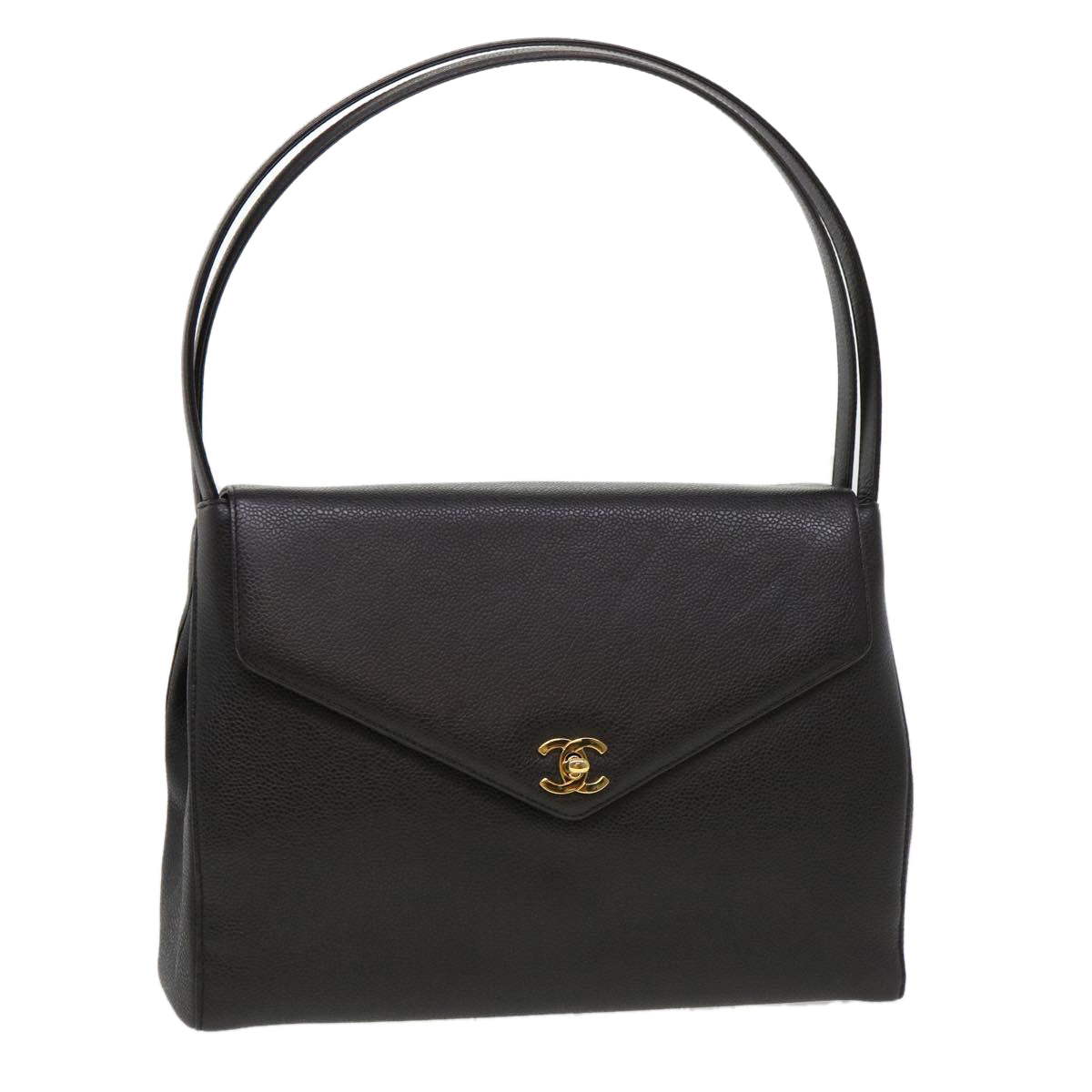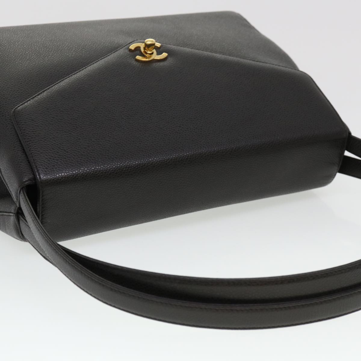 CHANEL Shoulder Bag Caviar Skin Black CC Auth am4067