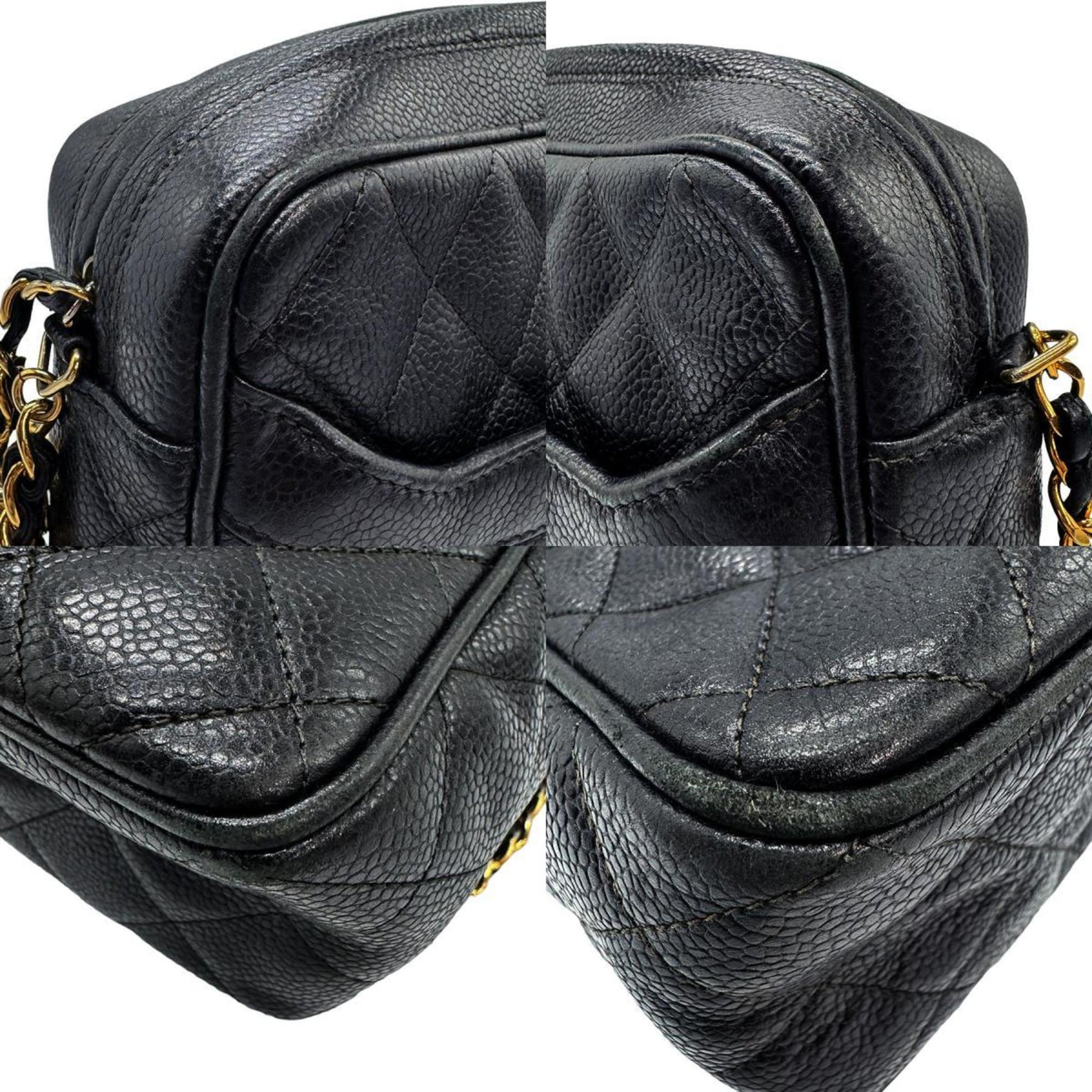 CHANEL Shoulder Bag Caviar Skin Leather Black Women's z0908
