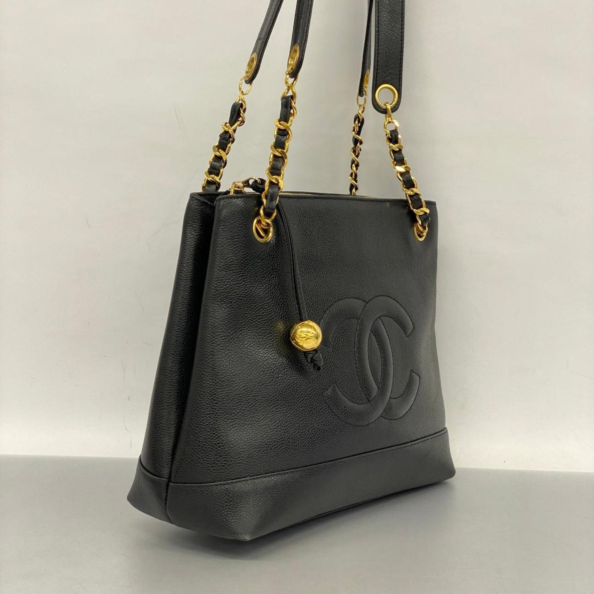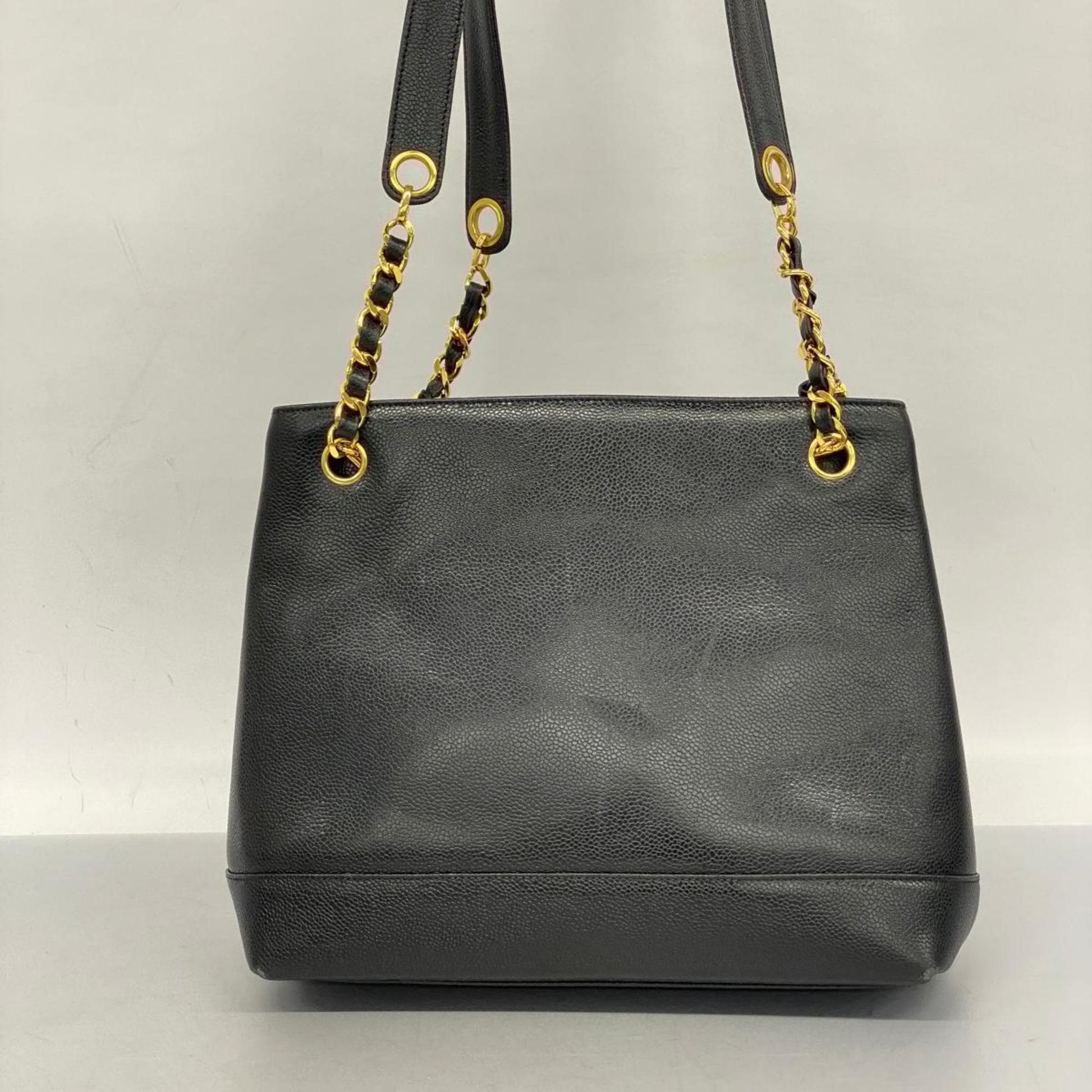 Chanel Shoulder Bag Chain Caviar Skin Black Women's