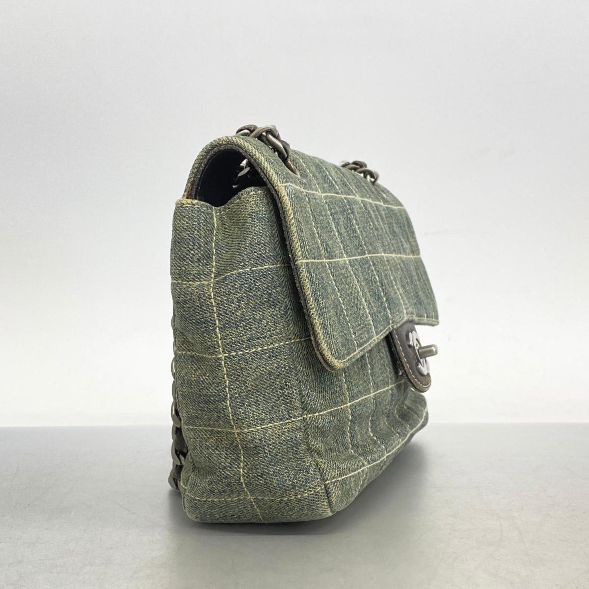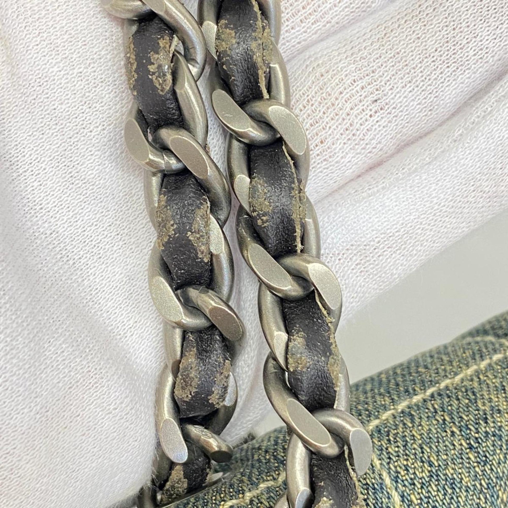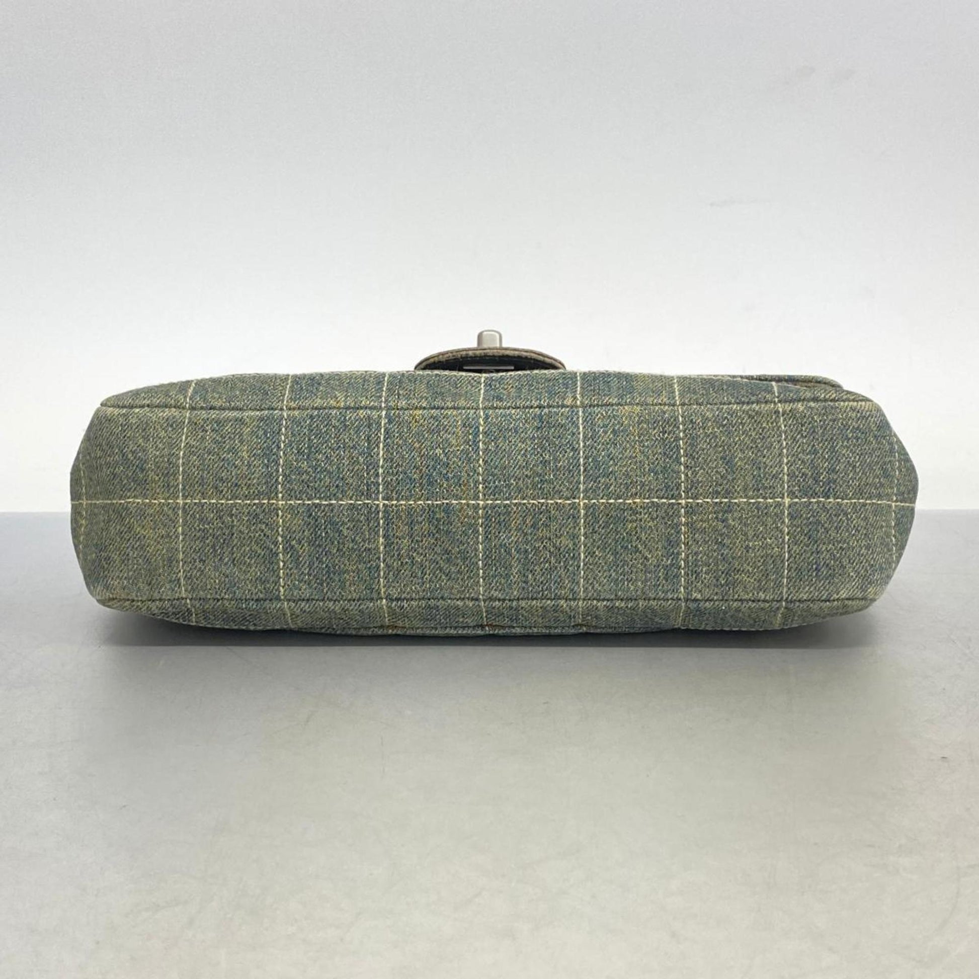 Chanel Shoulder Bag Chocolate Bar Double Chain Denim Blue Women's