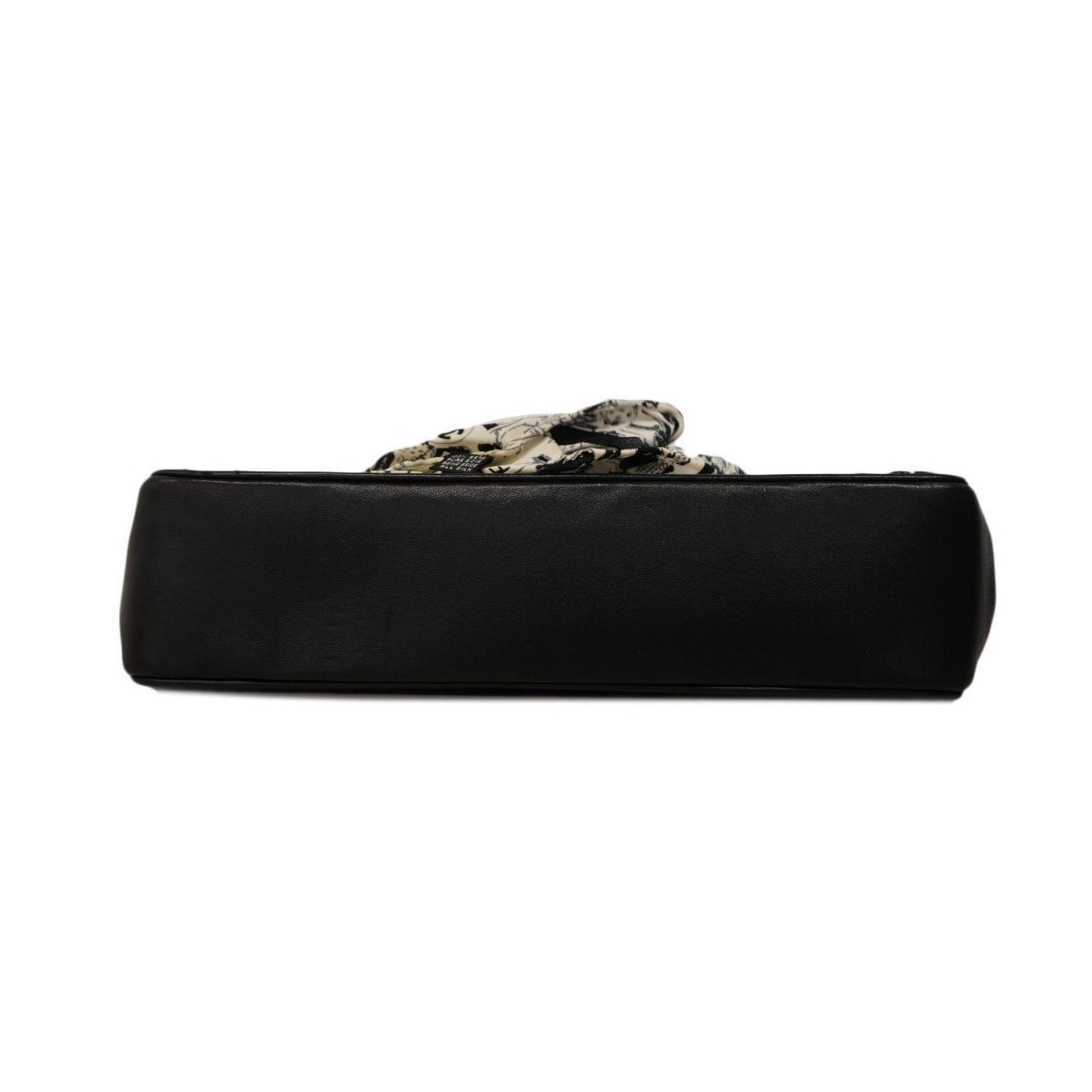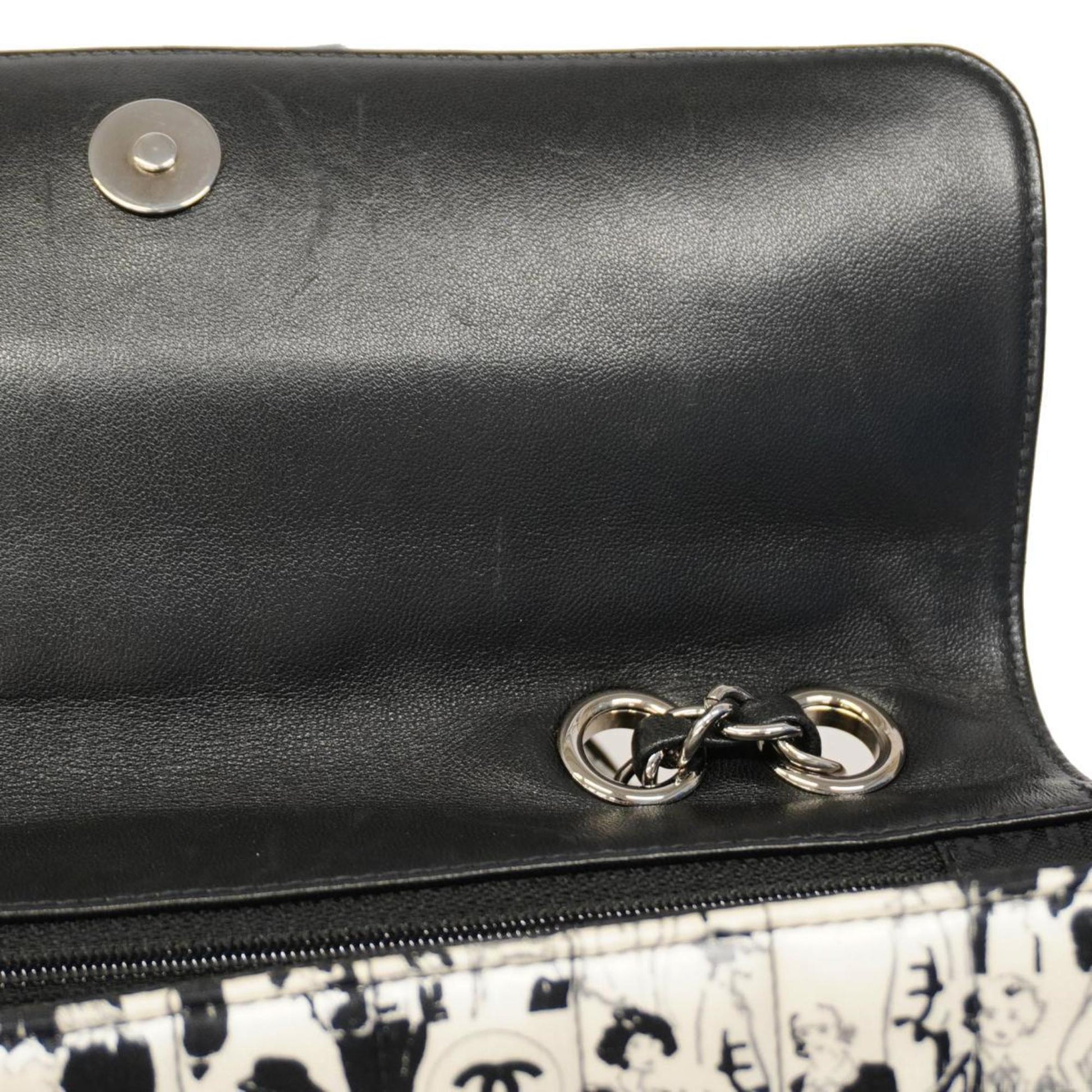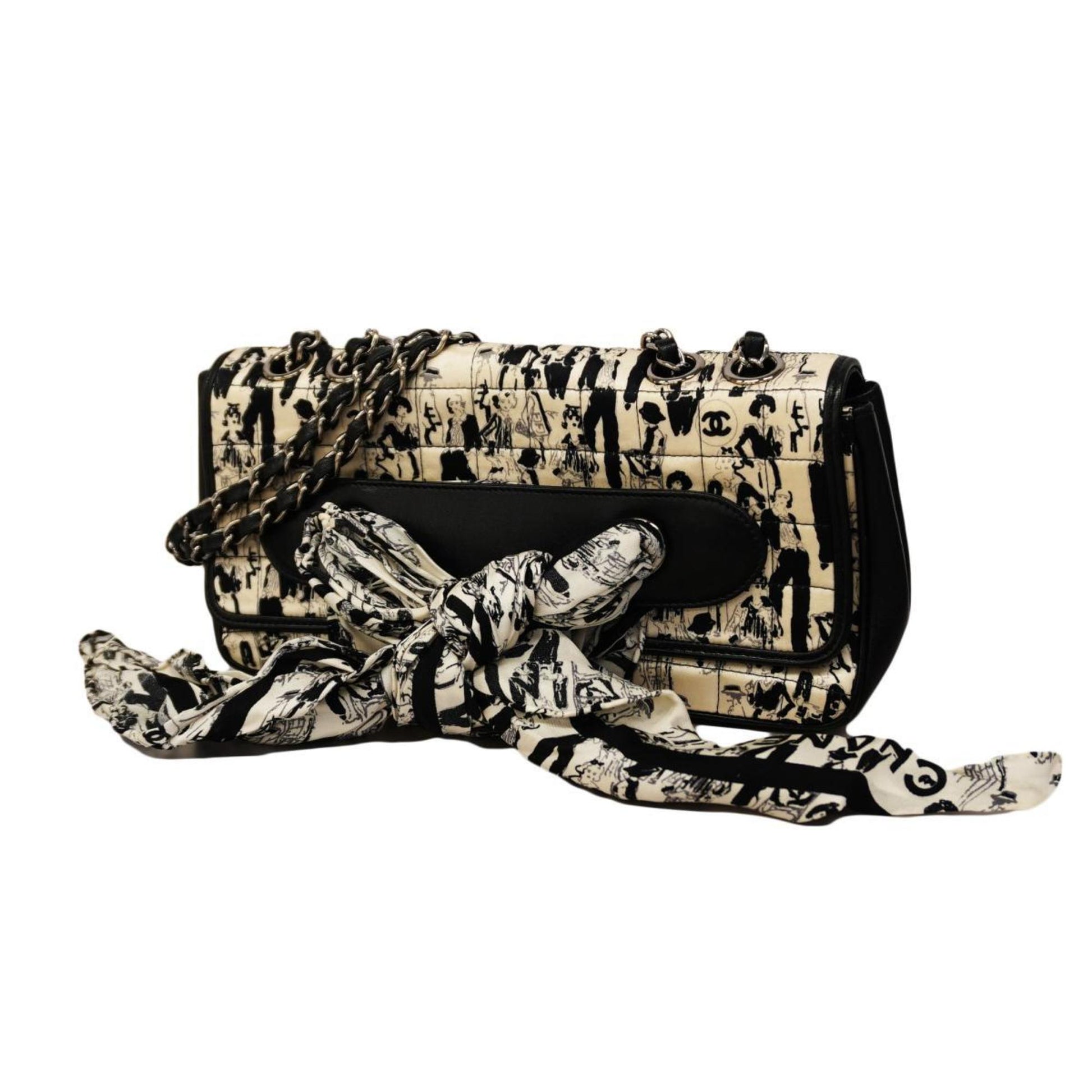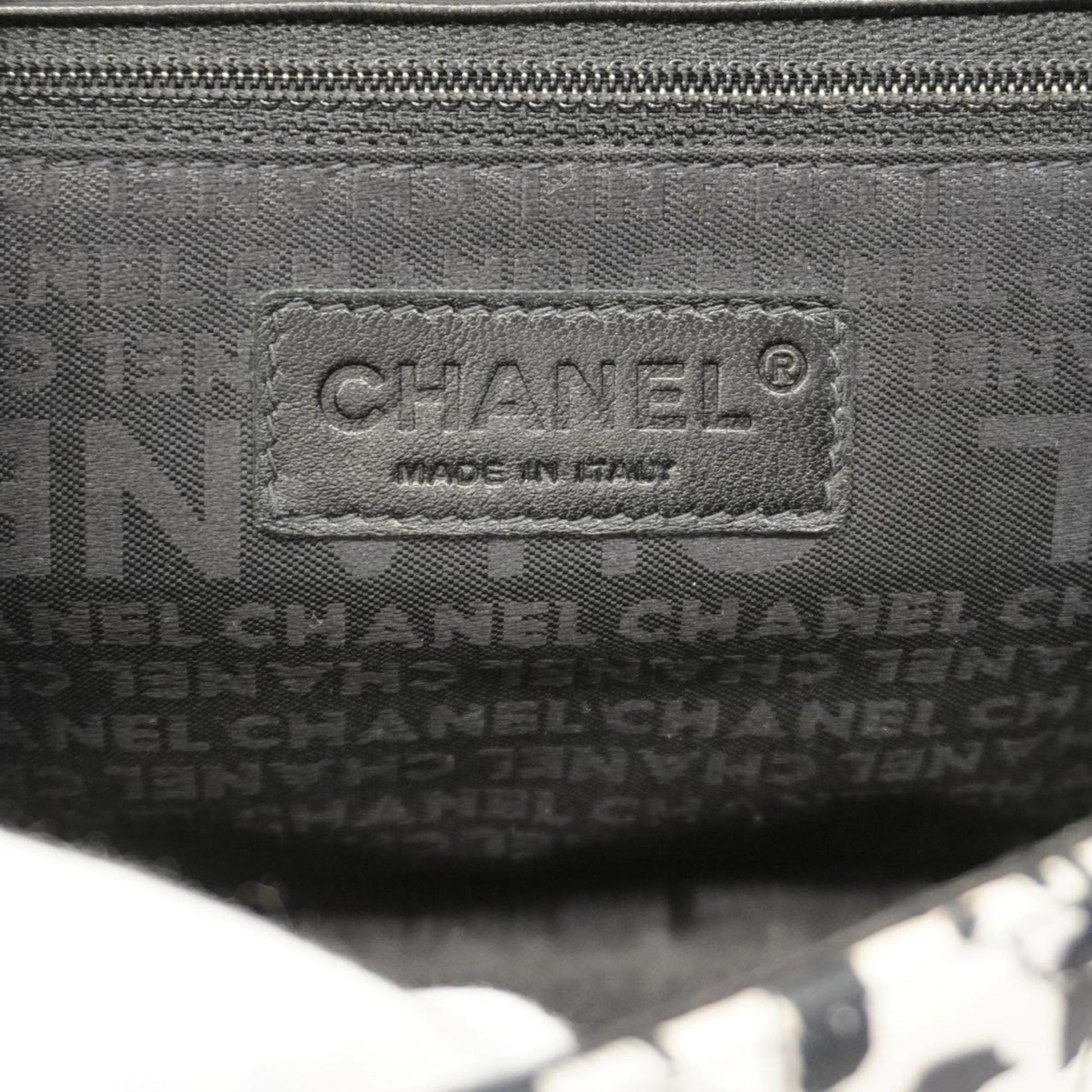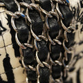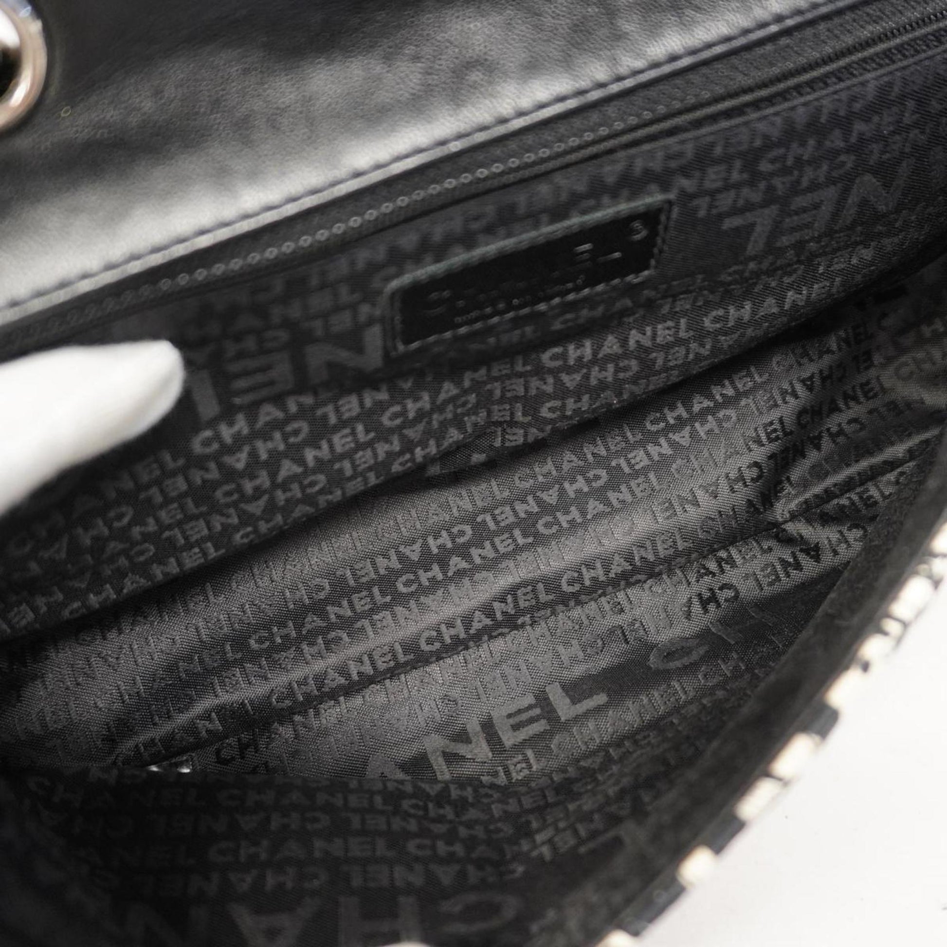 Chanel Shoulder Bag Chocolate Bar W Chain Leather Satin Black White Women's