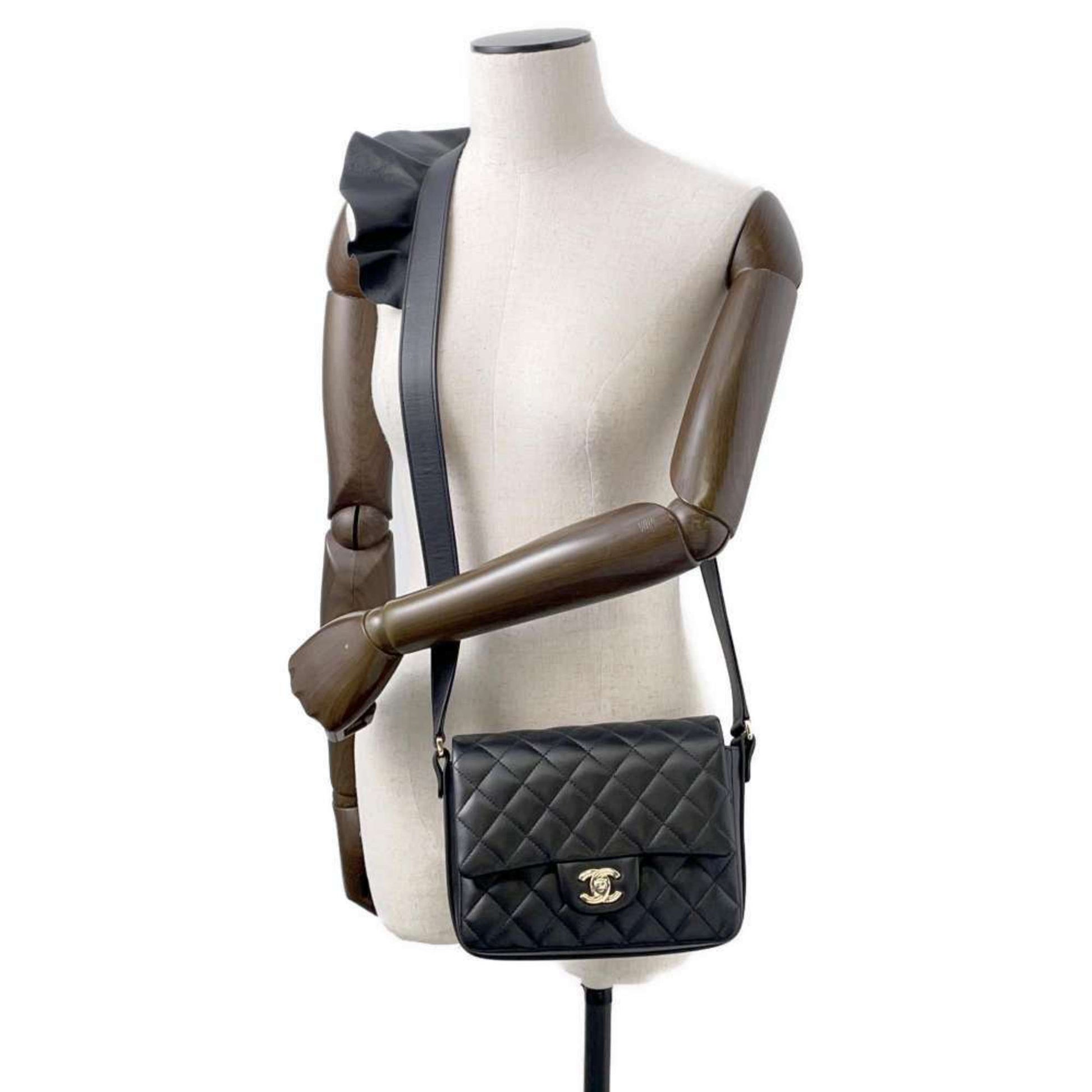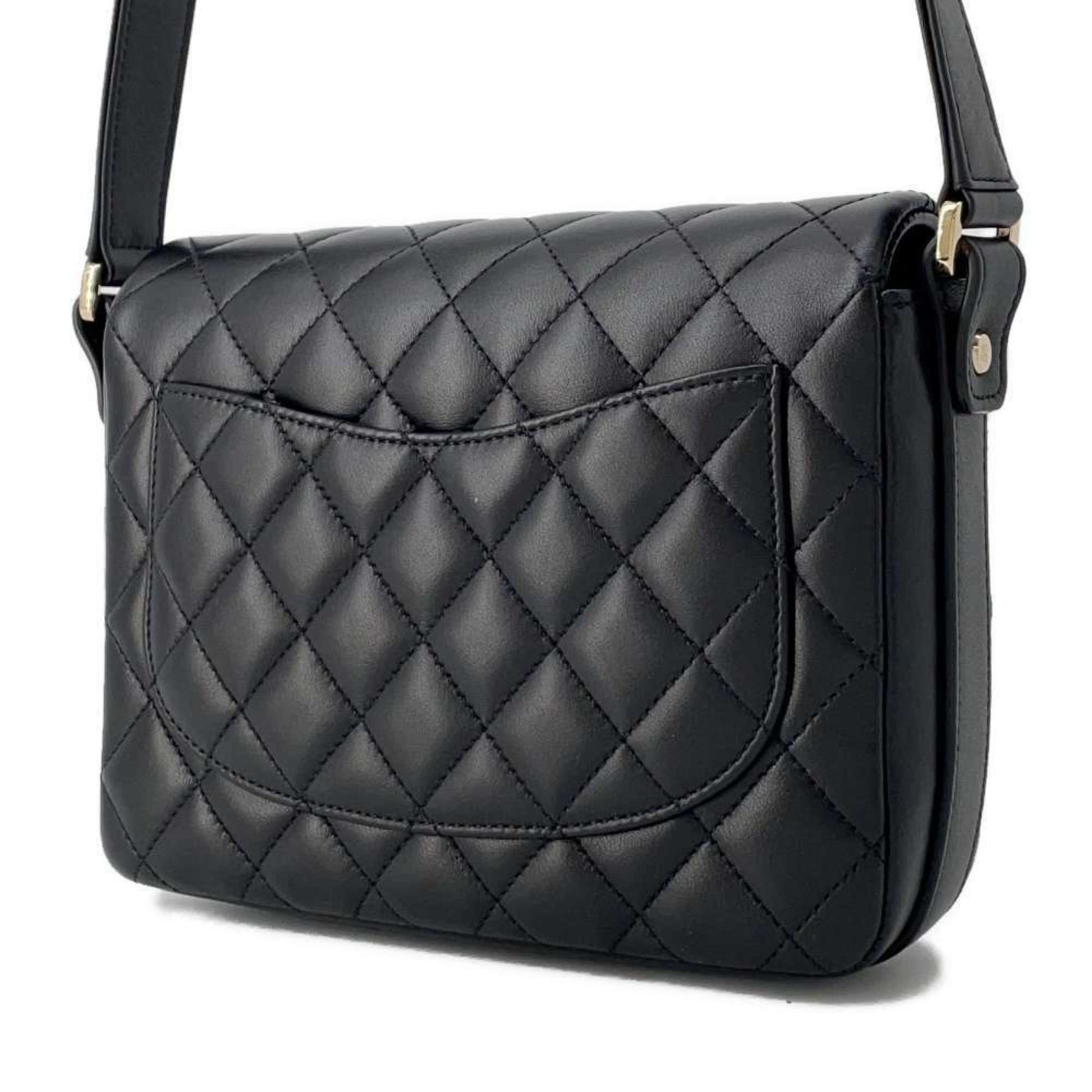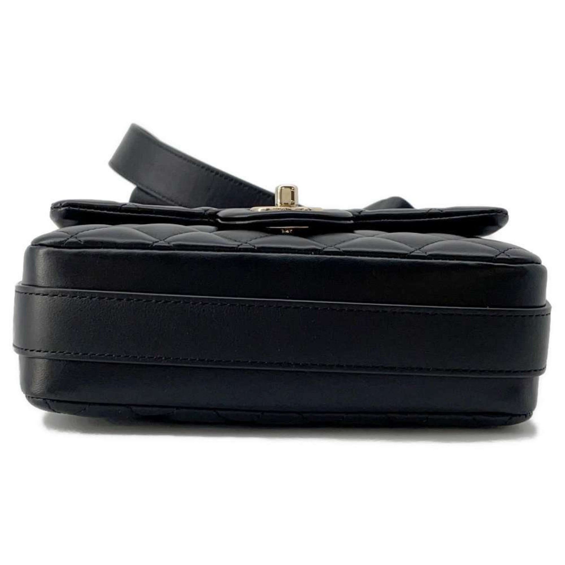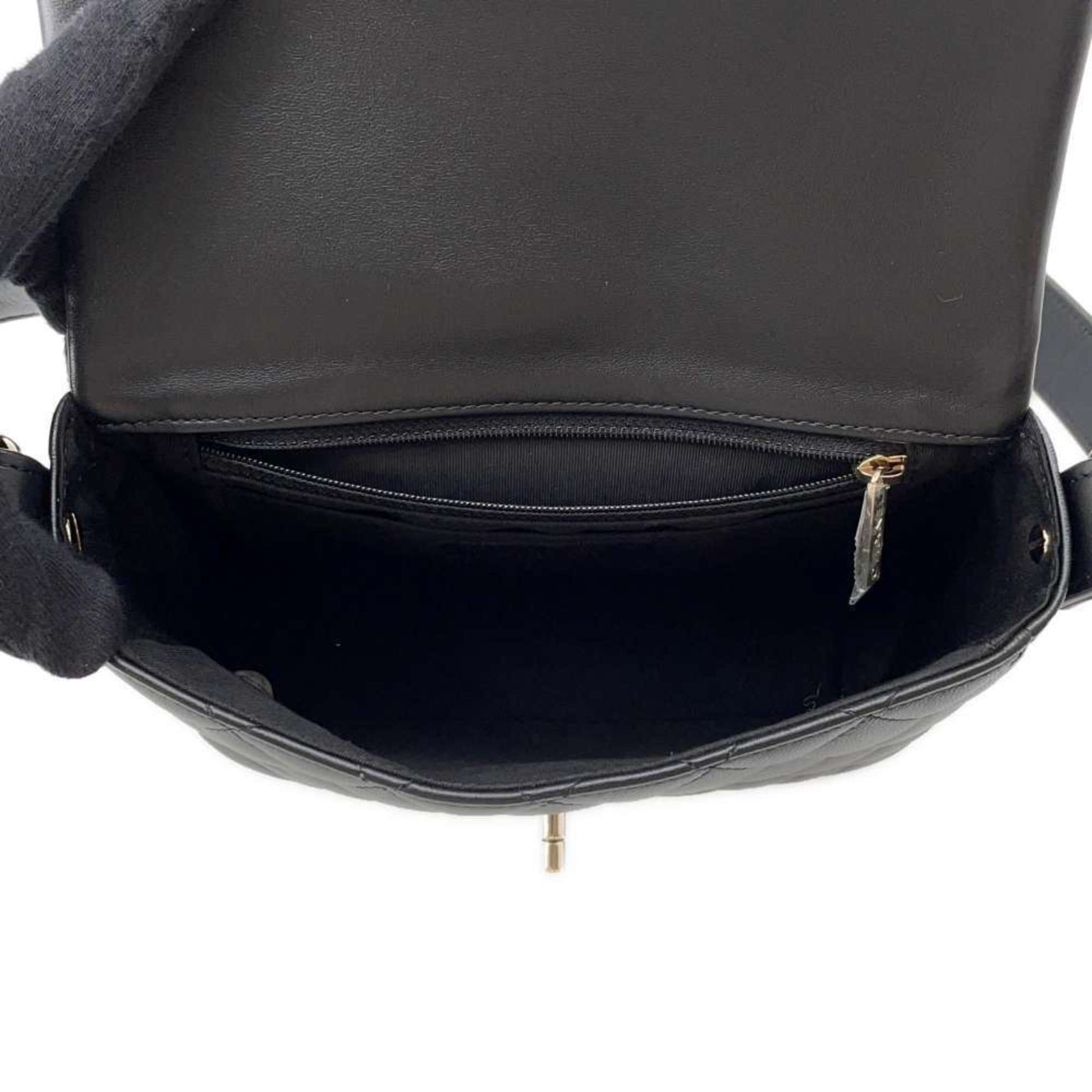 Chanel Shoulder Bag Coco Mark Matelasse Ruffle Leather AS1737 CHANEL Black