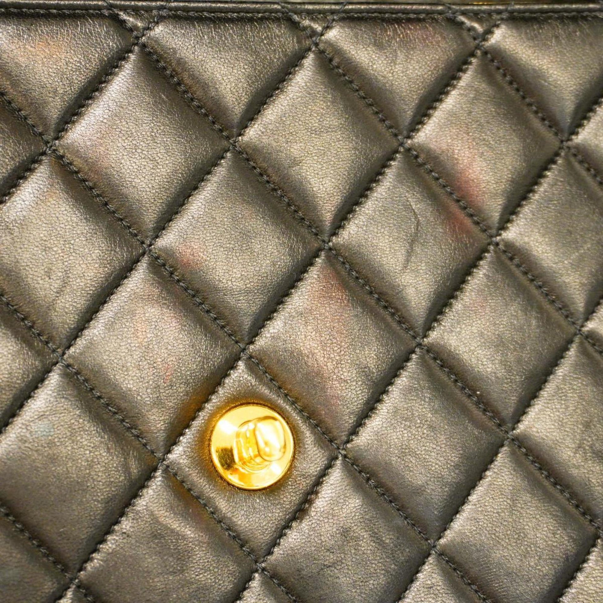 Chanel Shoulder Bag Deca Matelasse W Chain Lambskin Black Women's