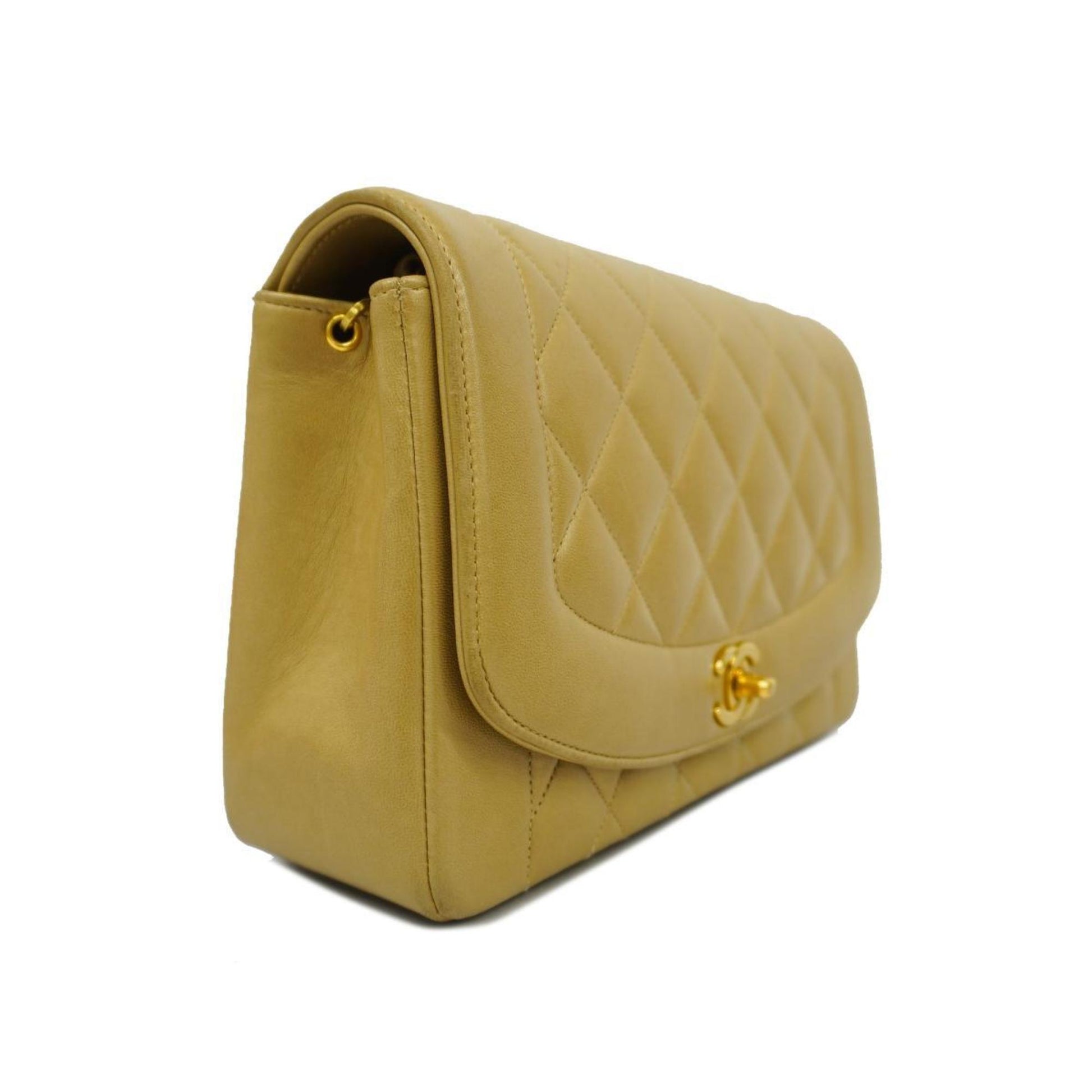 Chanel Shoulder Bag Diana Chain Lambskin Beige Women's