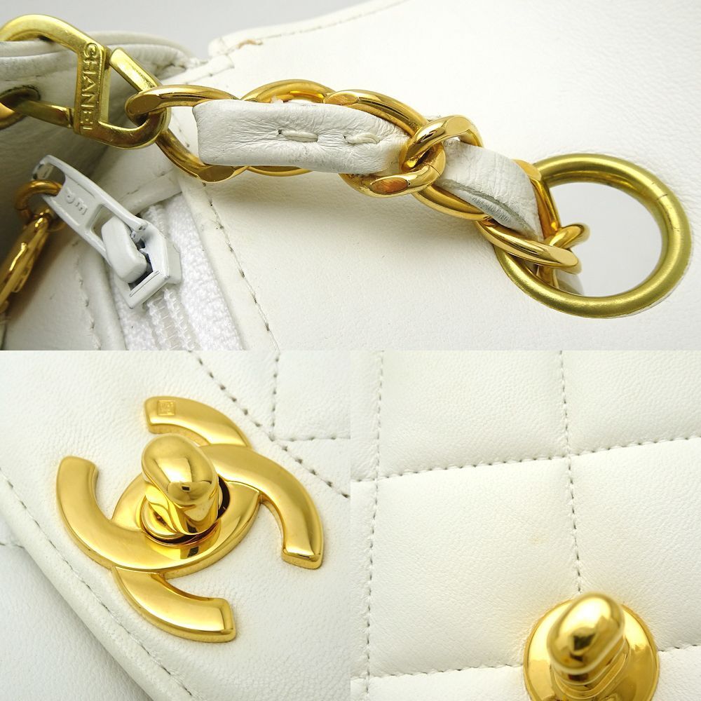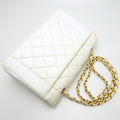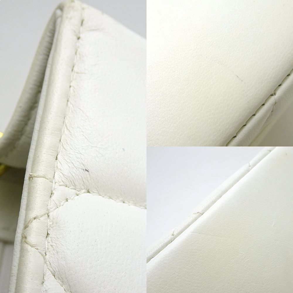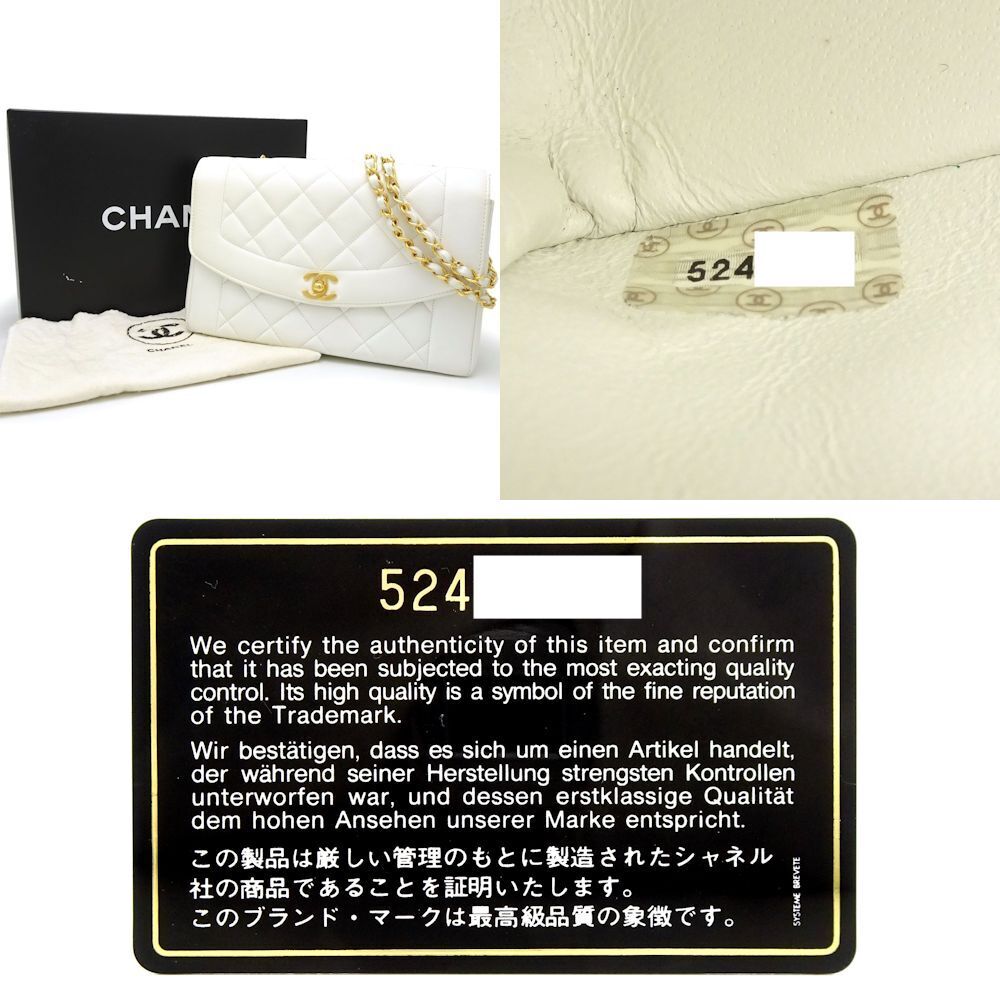 Elevate your style with the timeless elegance of the Chanel Shoulder Bag Diana. Crafted from luxurious matelasse lambskin in a crisp white hue, this iconic piece exudes sophistication and class. The quilted design adds a touch of texture and dimension, while the signature chain strap offers a chic and versatile way to carry this bag.