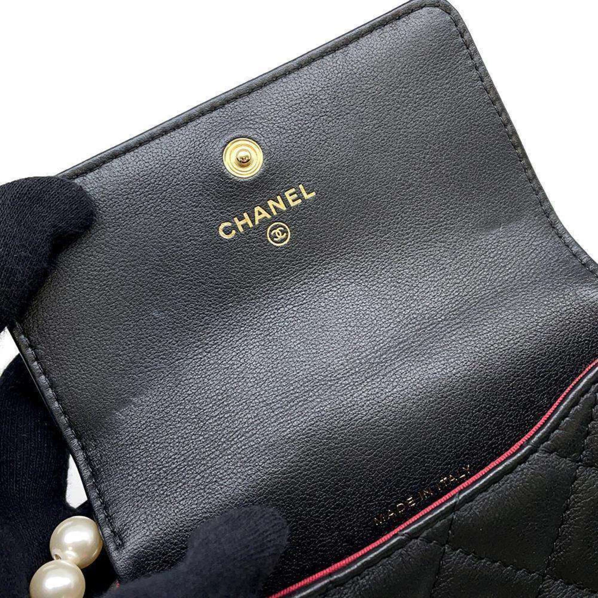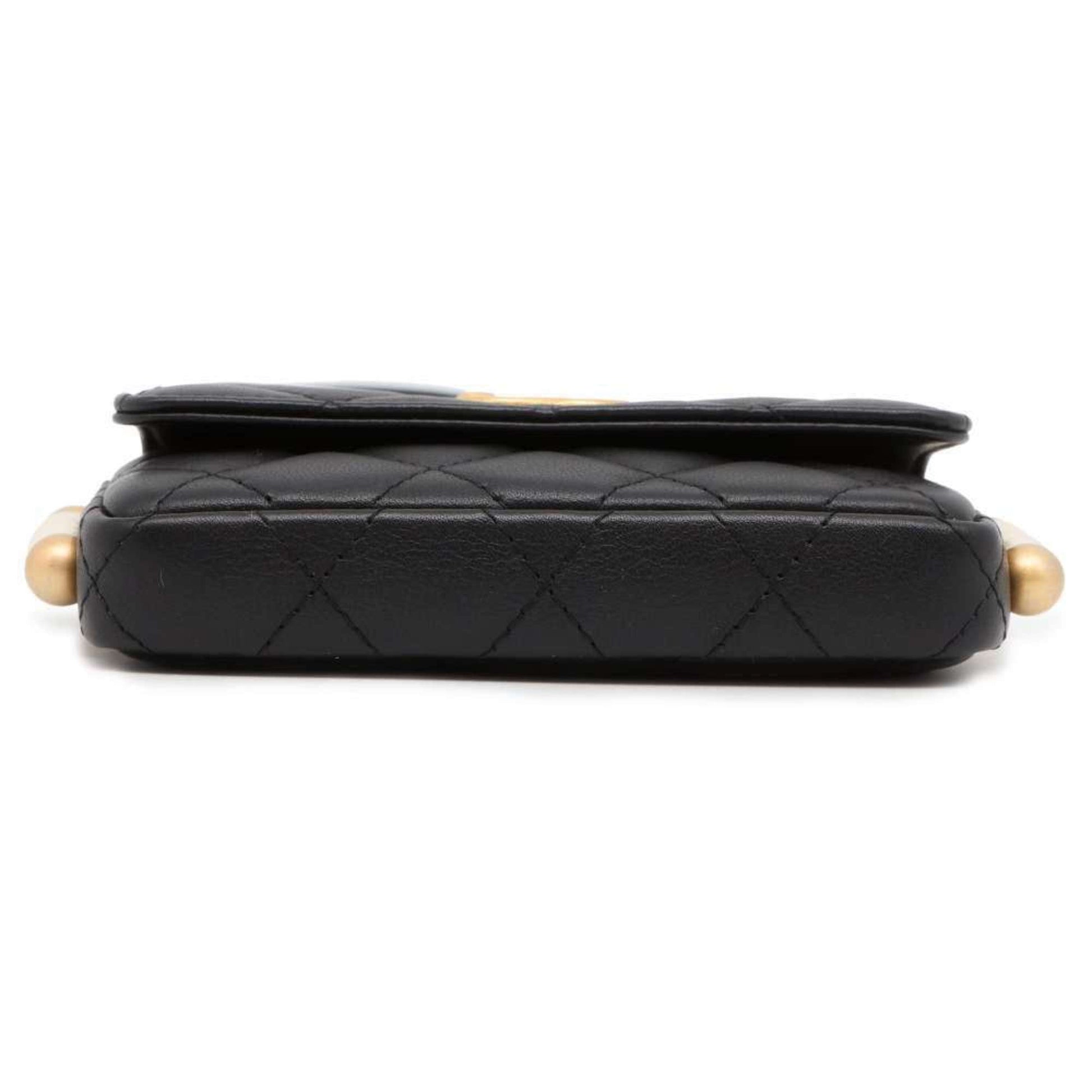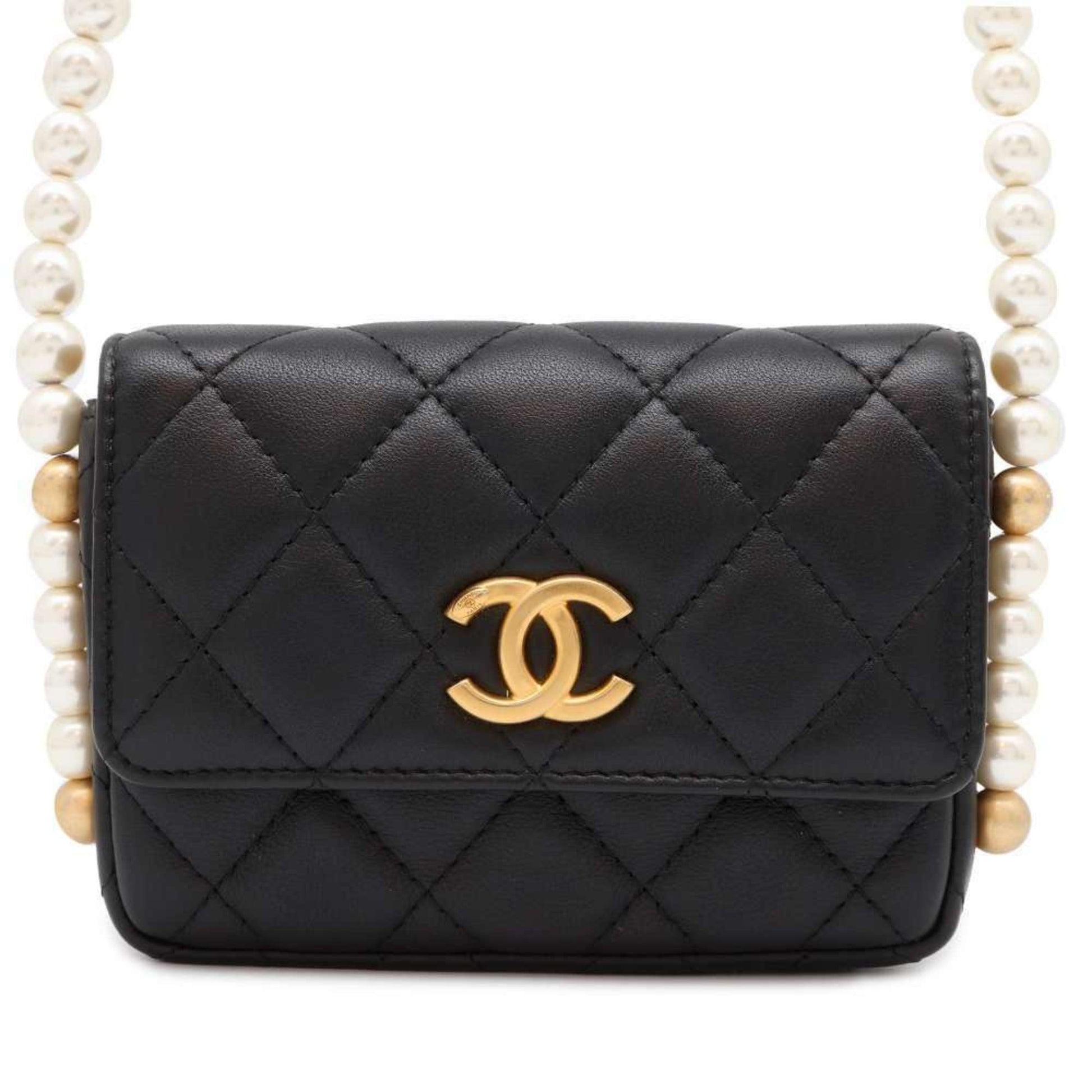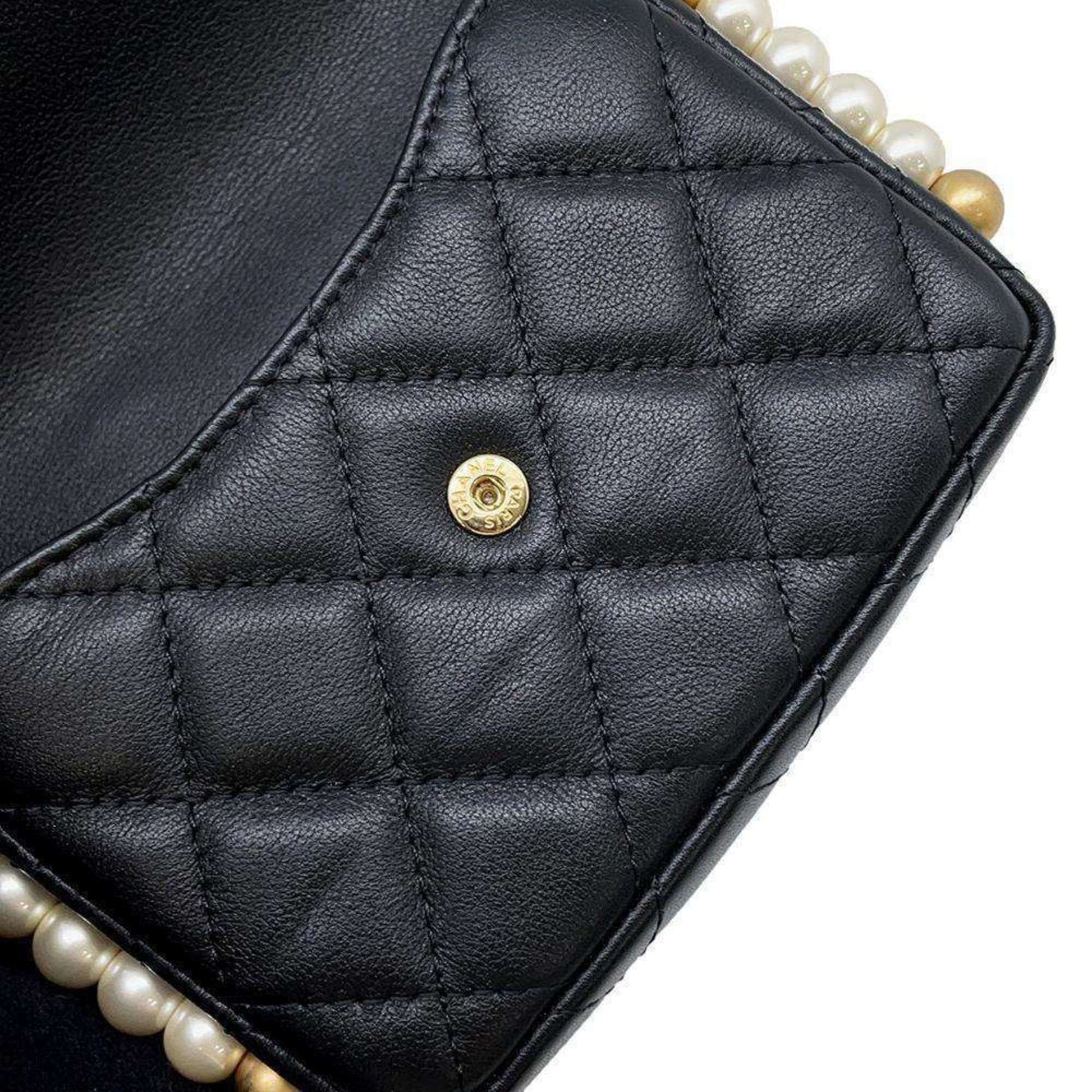 Chanel Shoulder Bag Fake Pearl Matelasse Coco Mark Lambskin CHANEL Black Women's