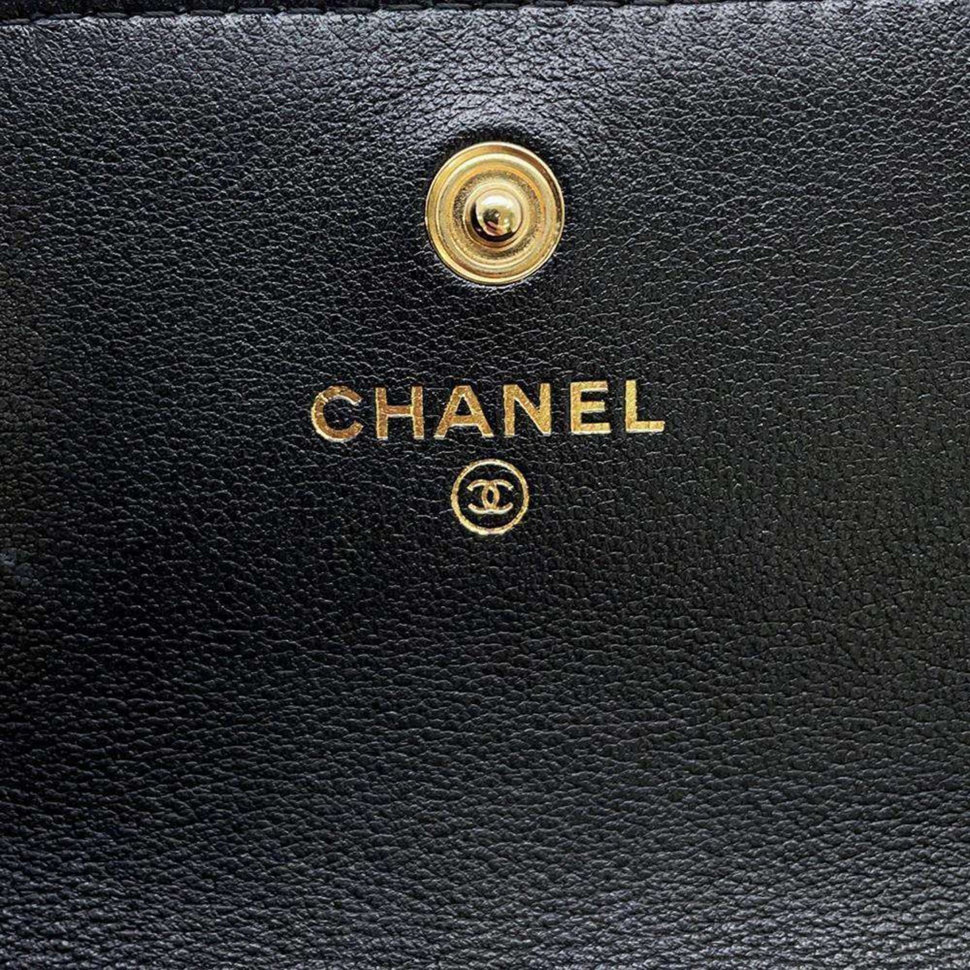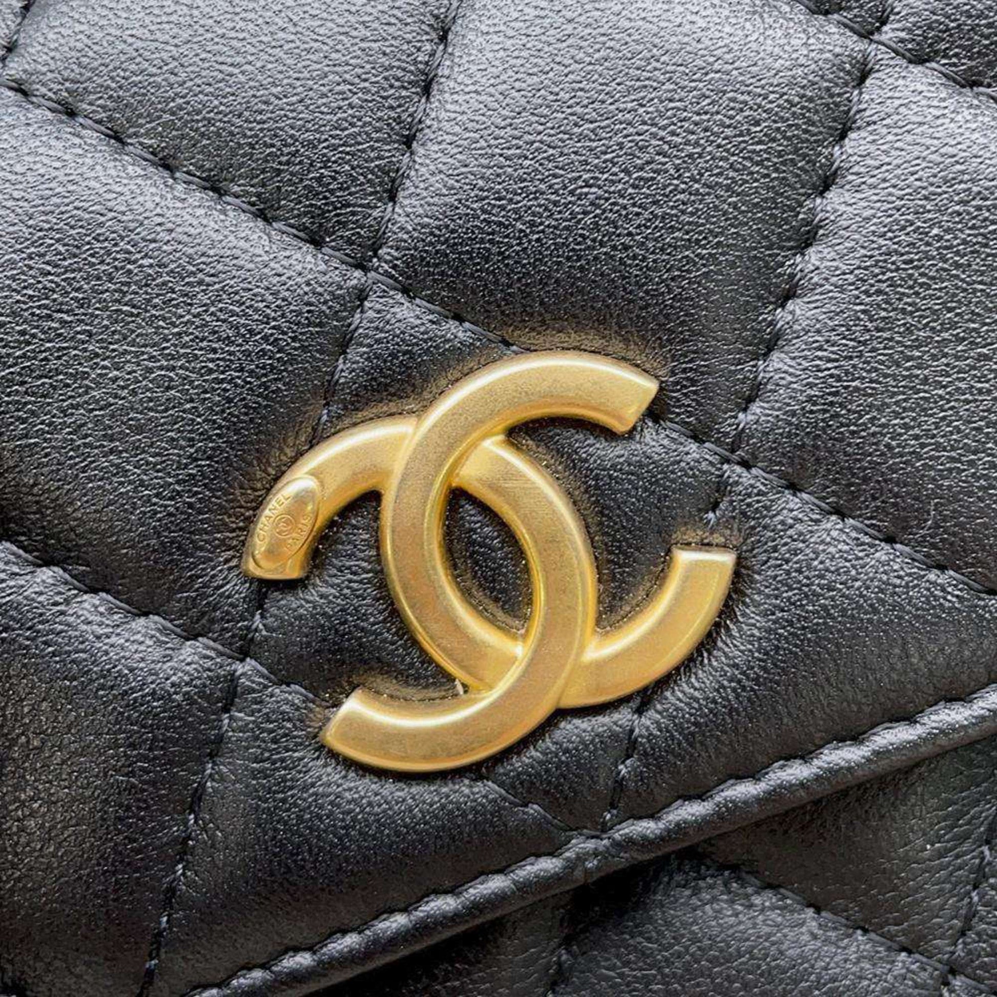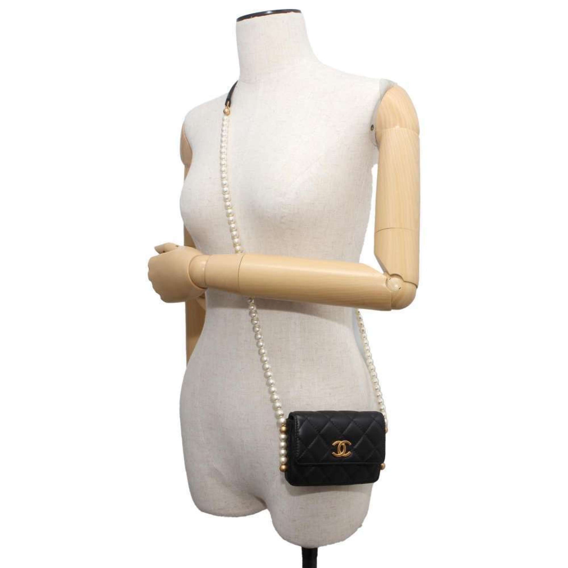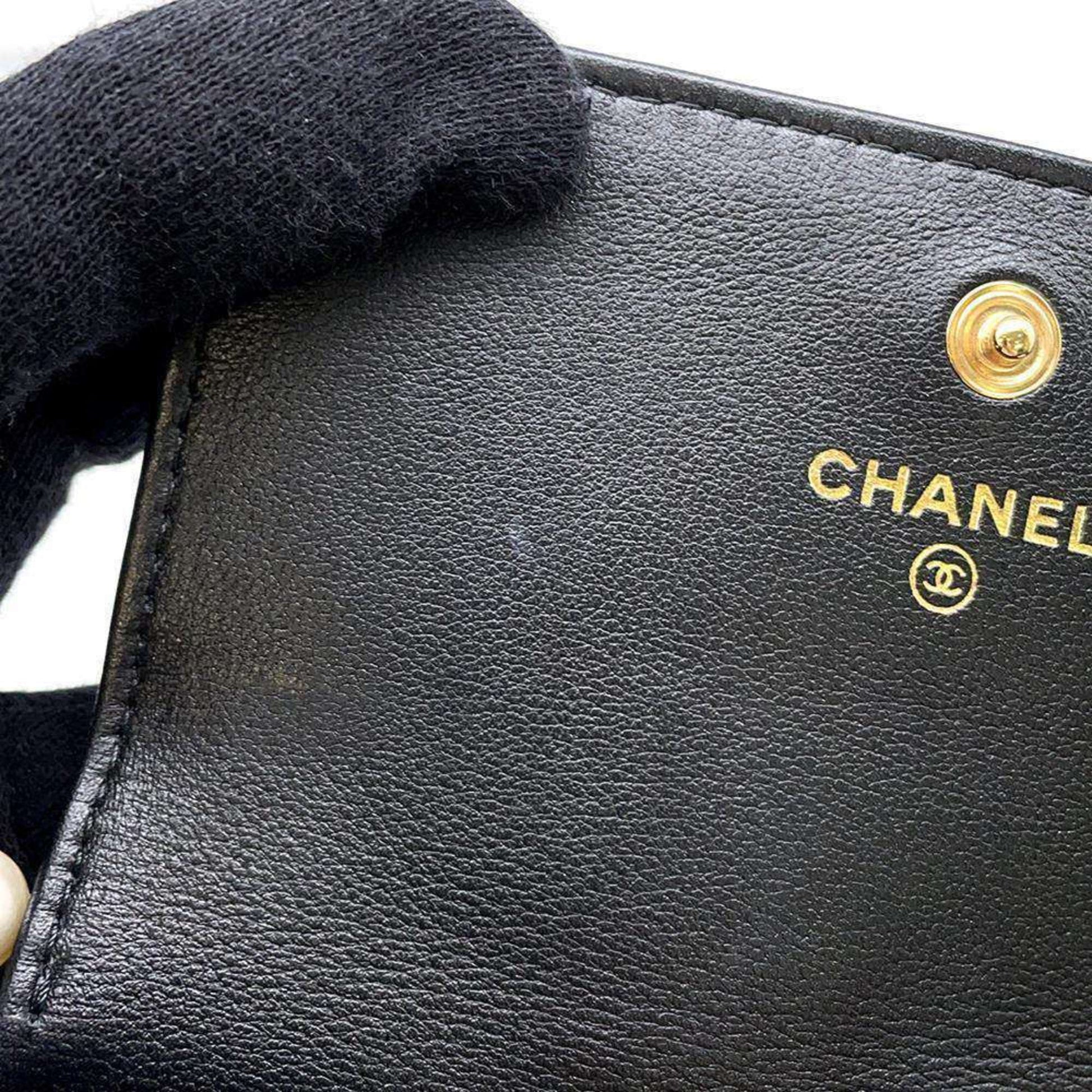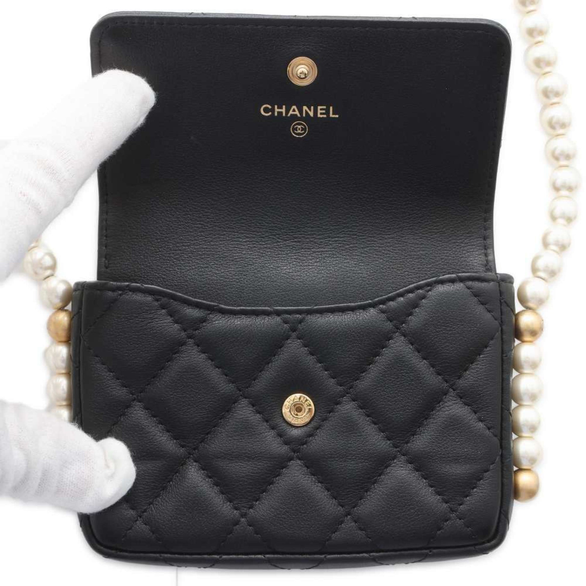 Chanel Shoulder Bag Fake Pearl Matelasse Coco Mark Lambskin CHANEL Black Women's
